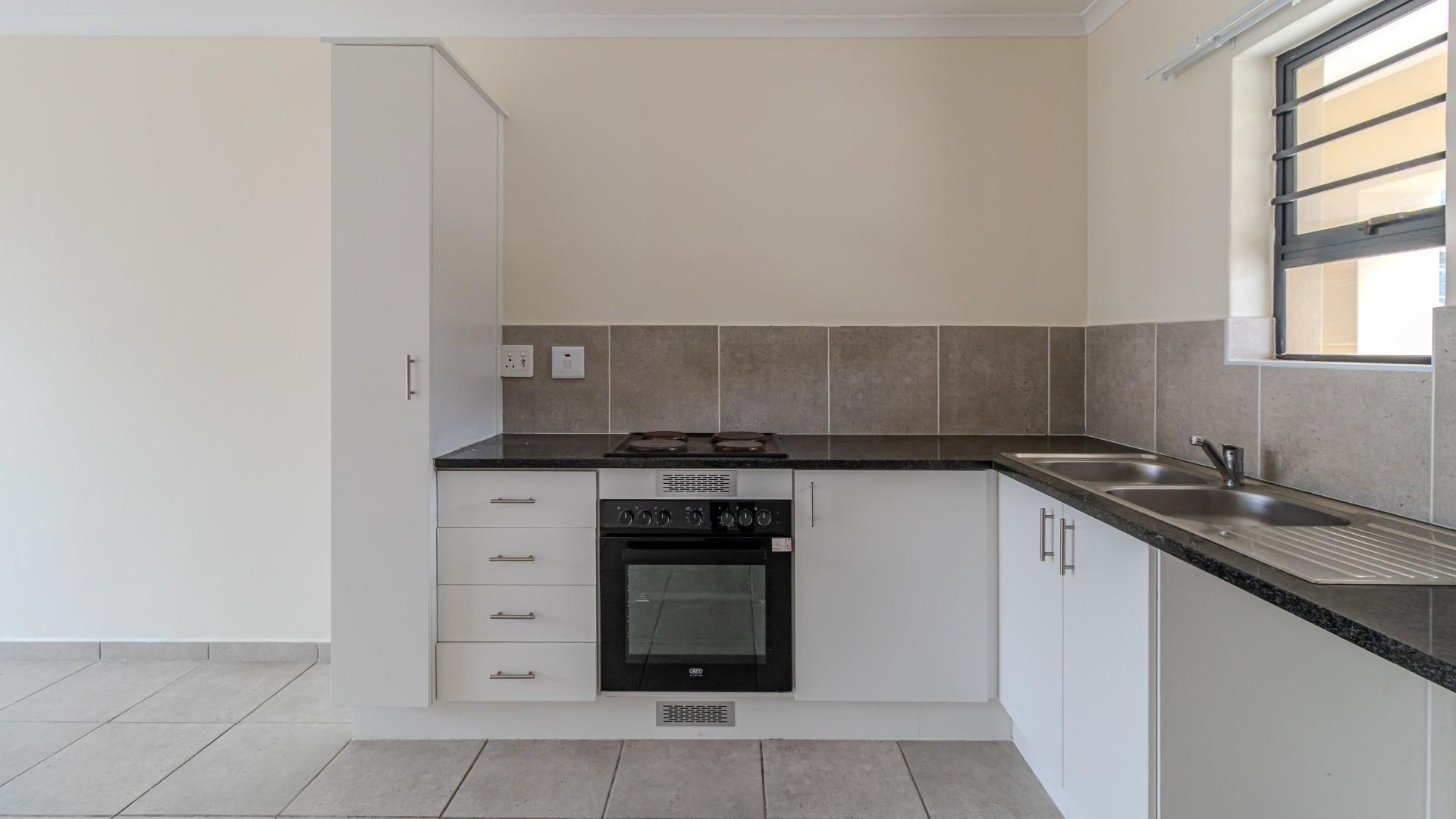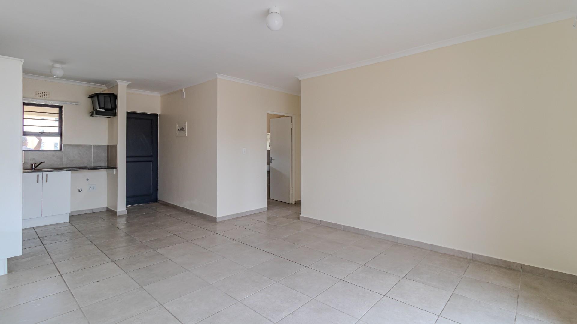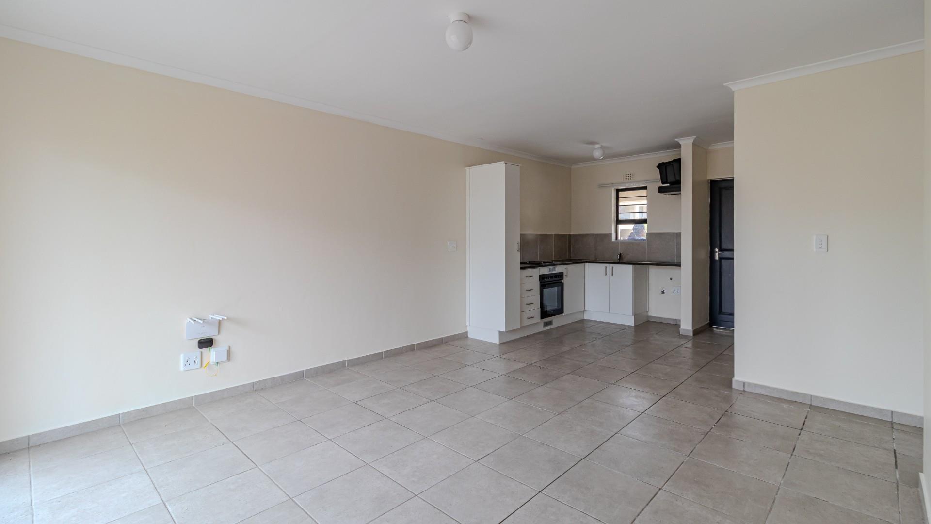 Two spacious bedrooms fitted with built-in cupboards, Open-plan living area with good natural light, a Functional kitchen with ample cupboard space.