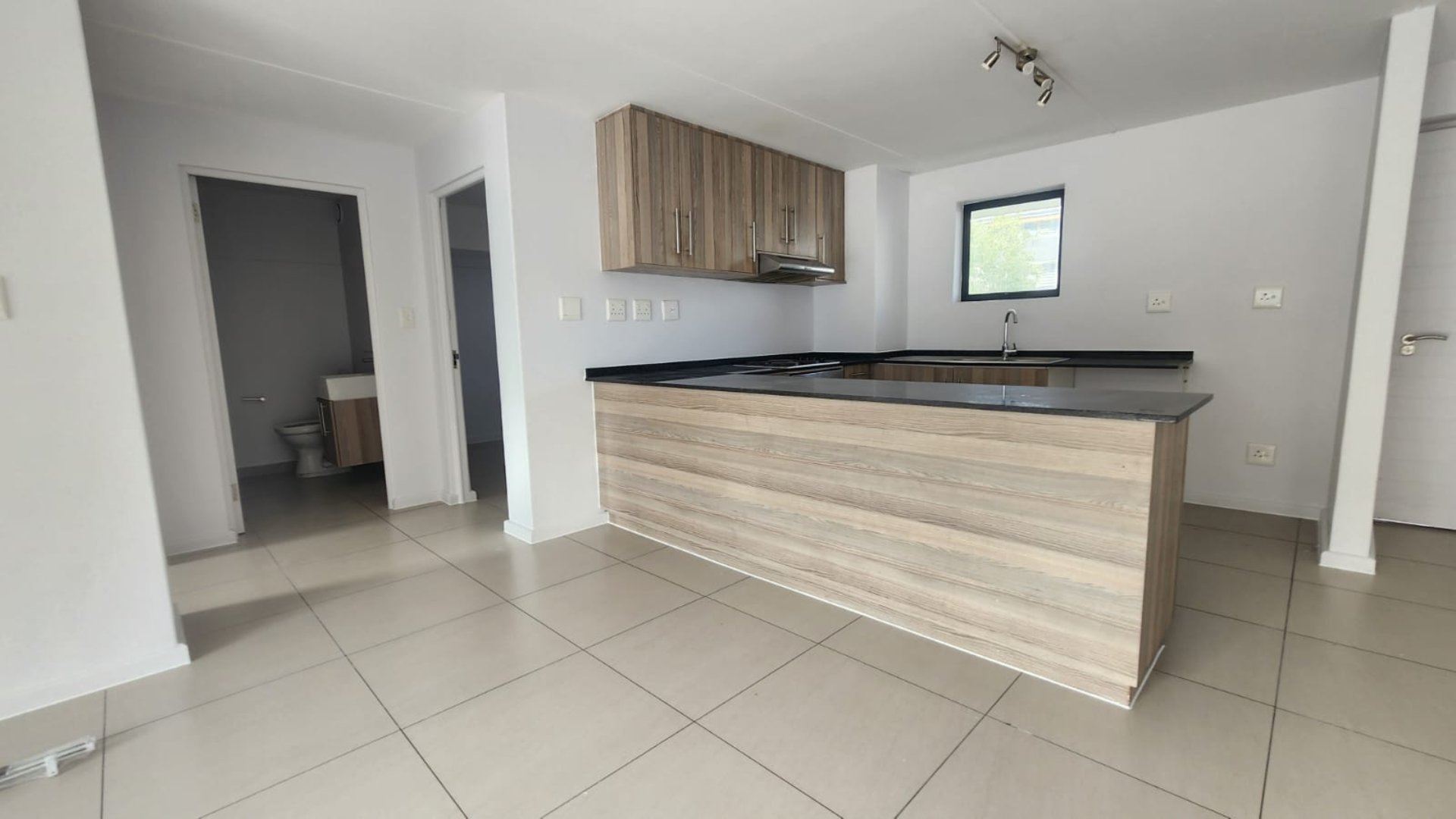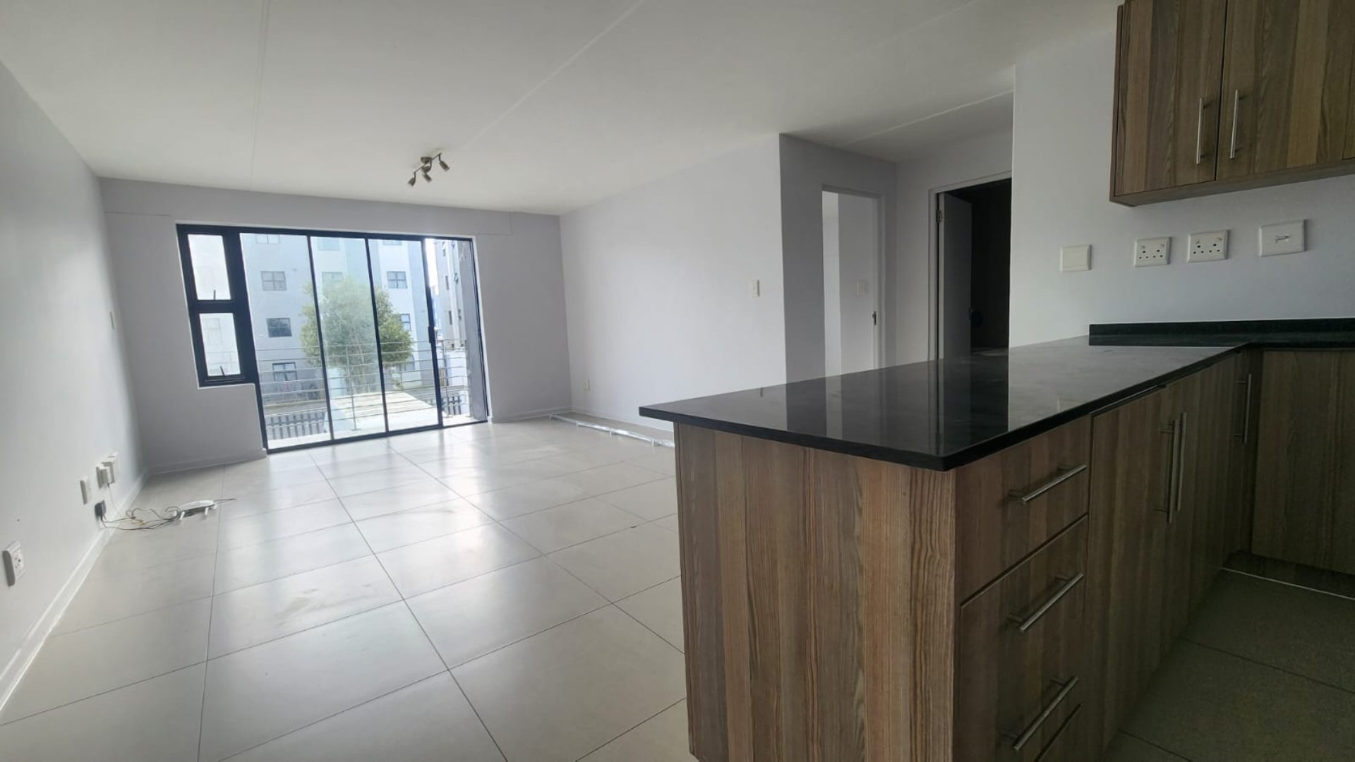 The kitchen is open plan with ample storage and leads to lounge with sliding doors to the balcony.