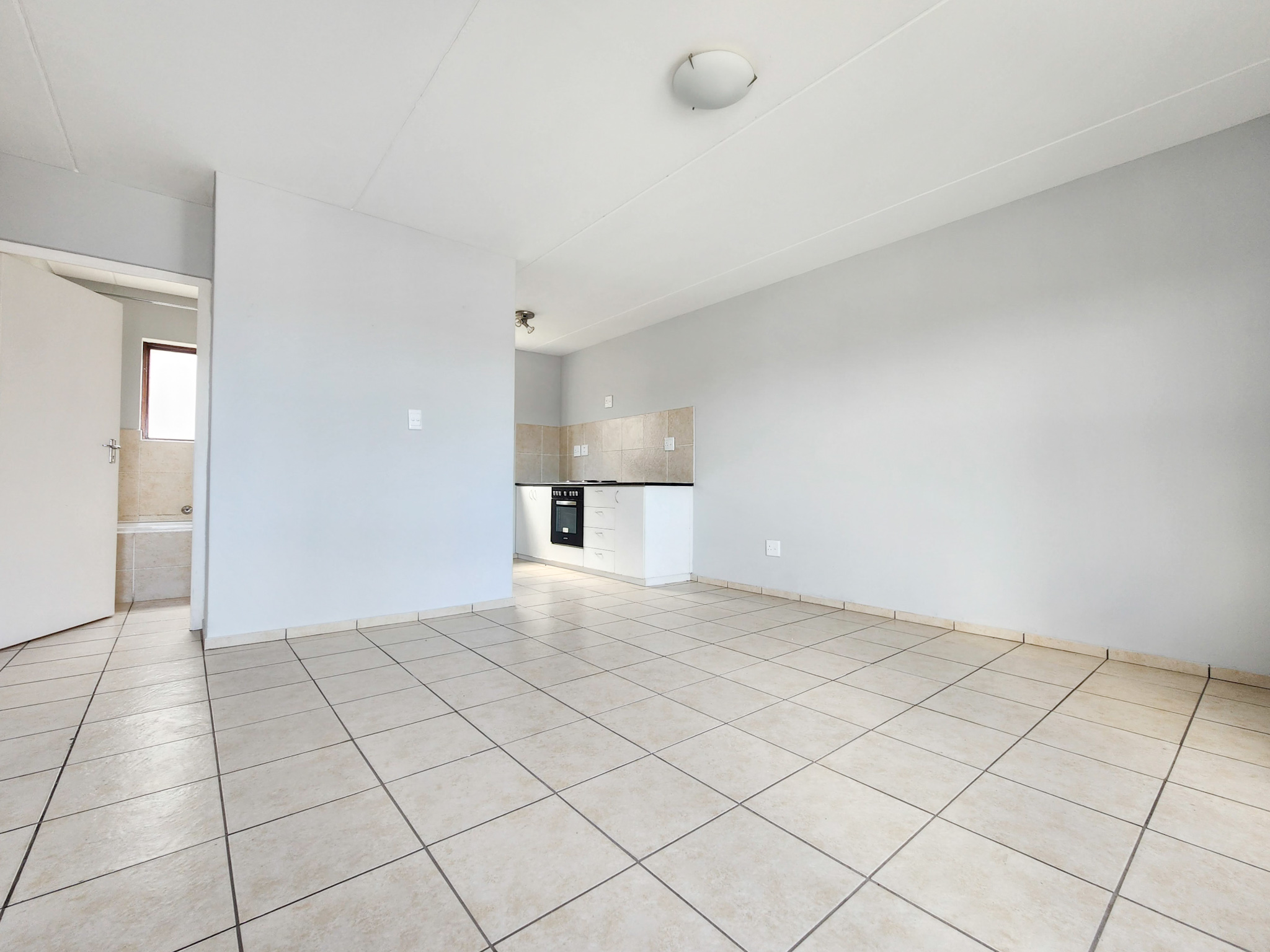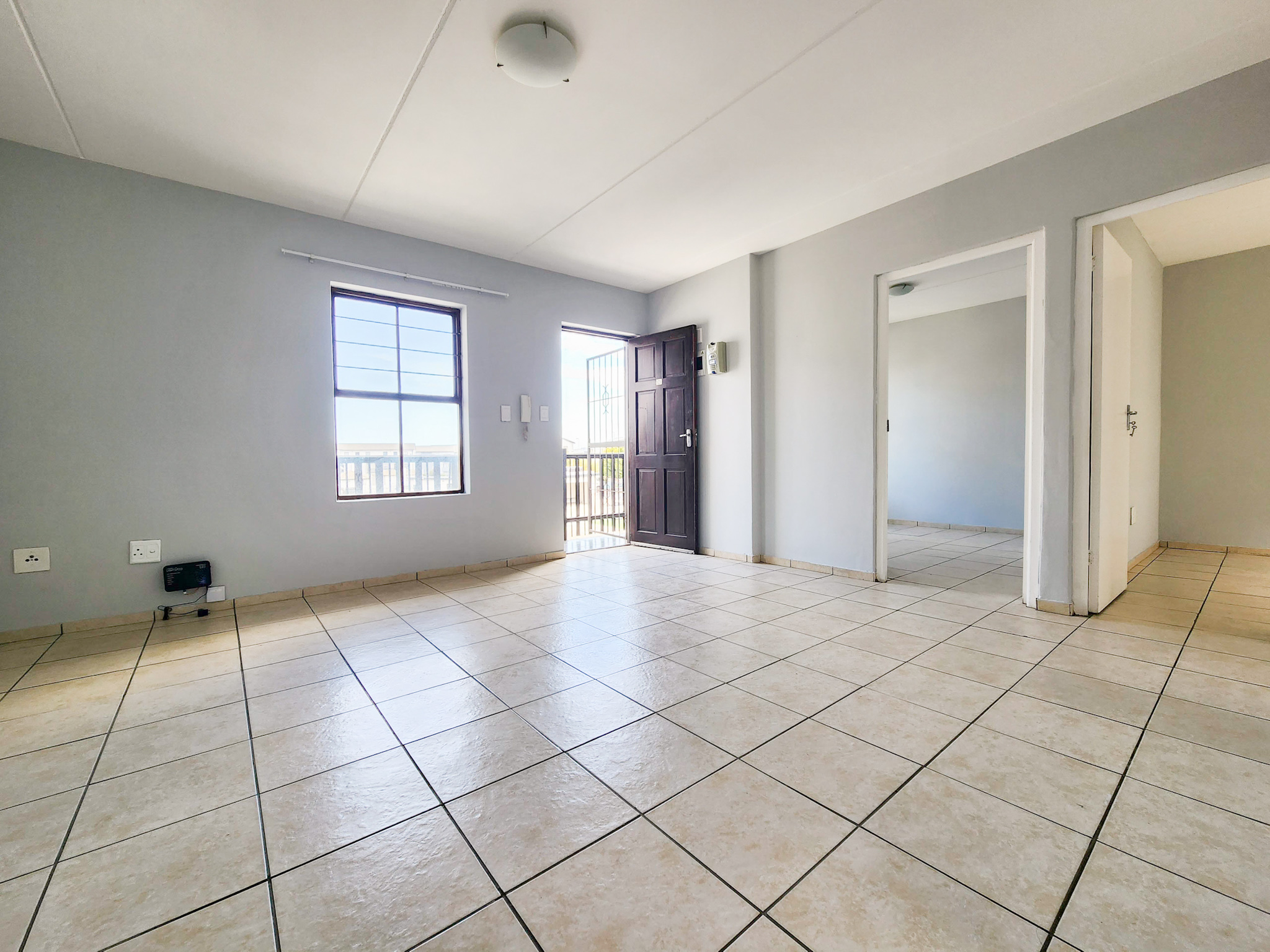 First floor apartment comprising of an open plan tiled living room that furthers to the kitchen with plumbing point. Two bedrooms both with built-in cupboards and one bathroom with shower over bath.