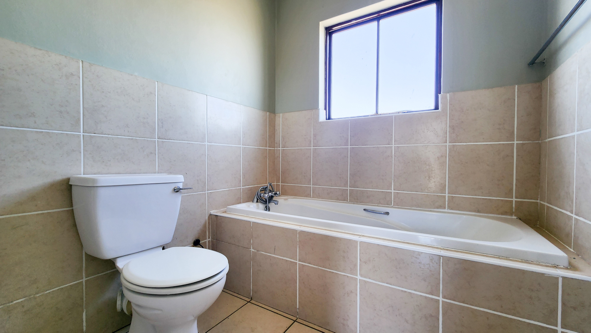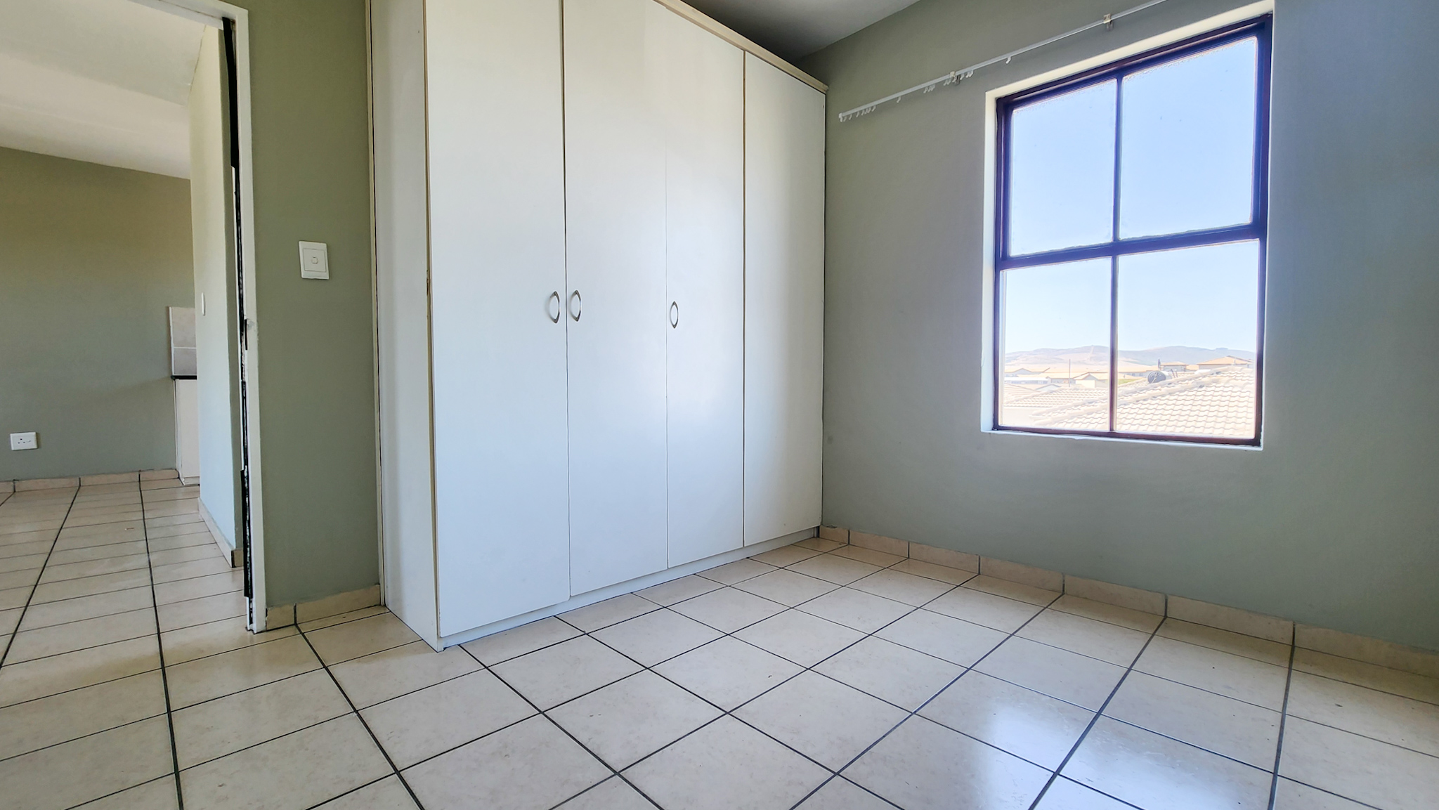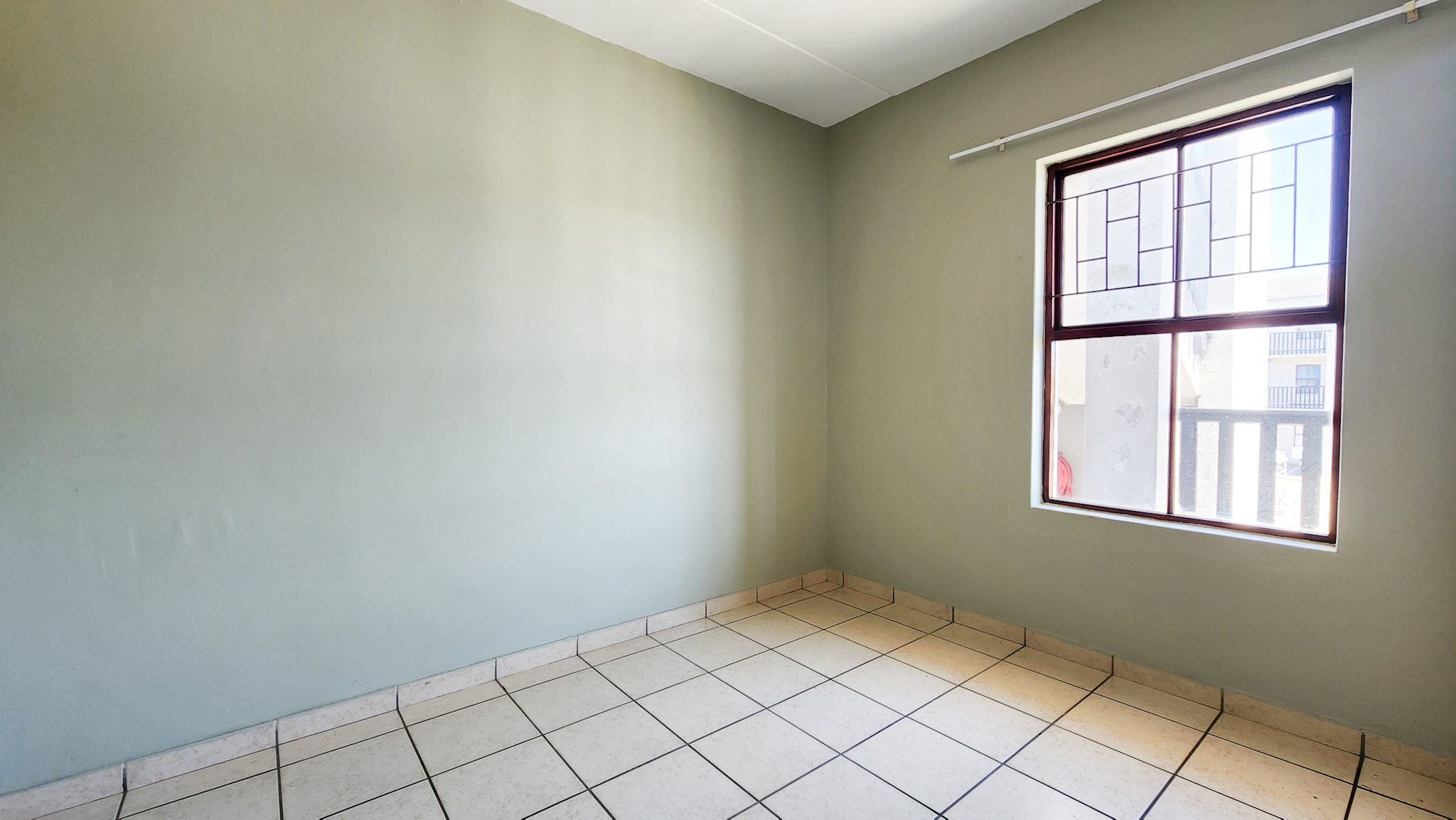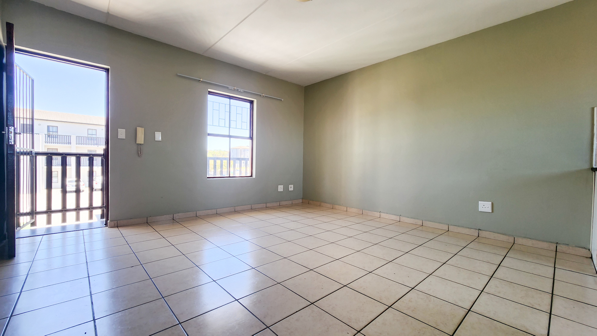 Open tiled living room. Kitchen with one plumbing point. Two sizable bedrooms and one bathroom with shower over bath.