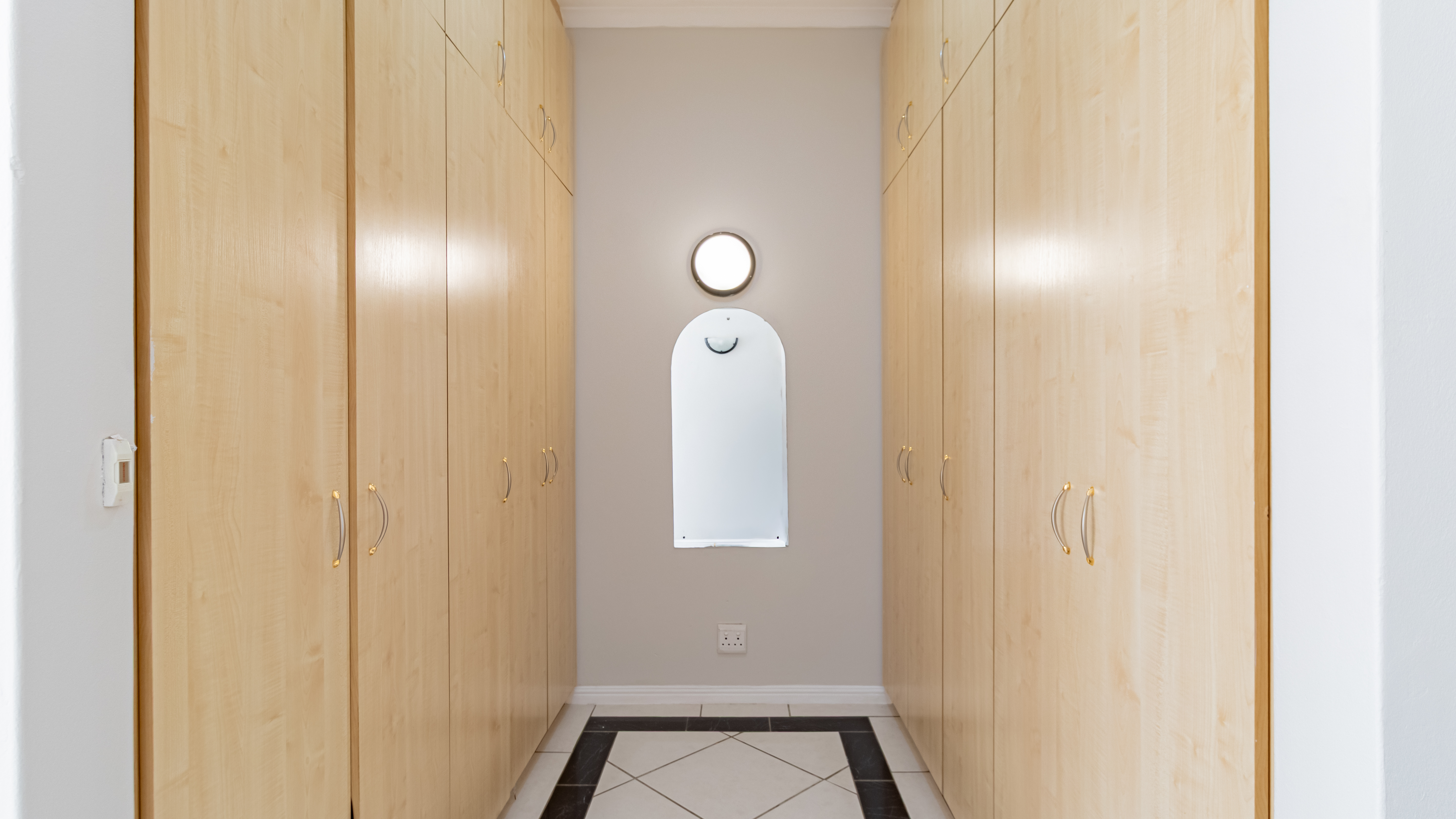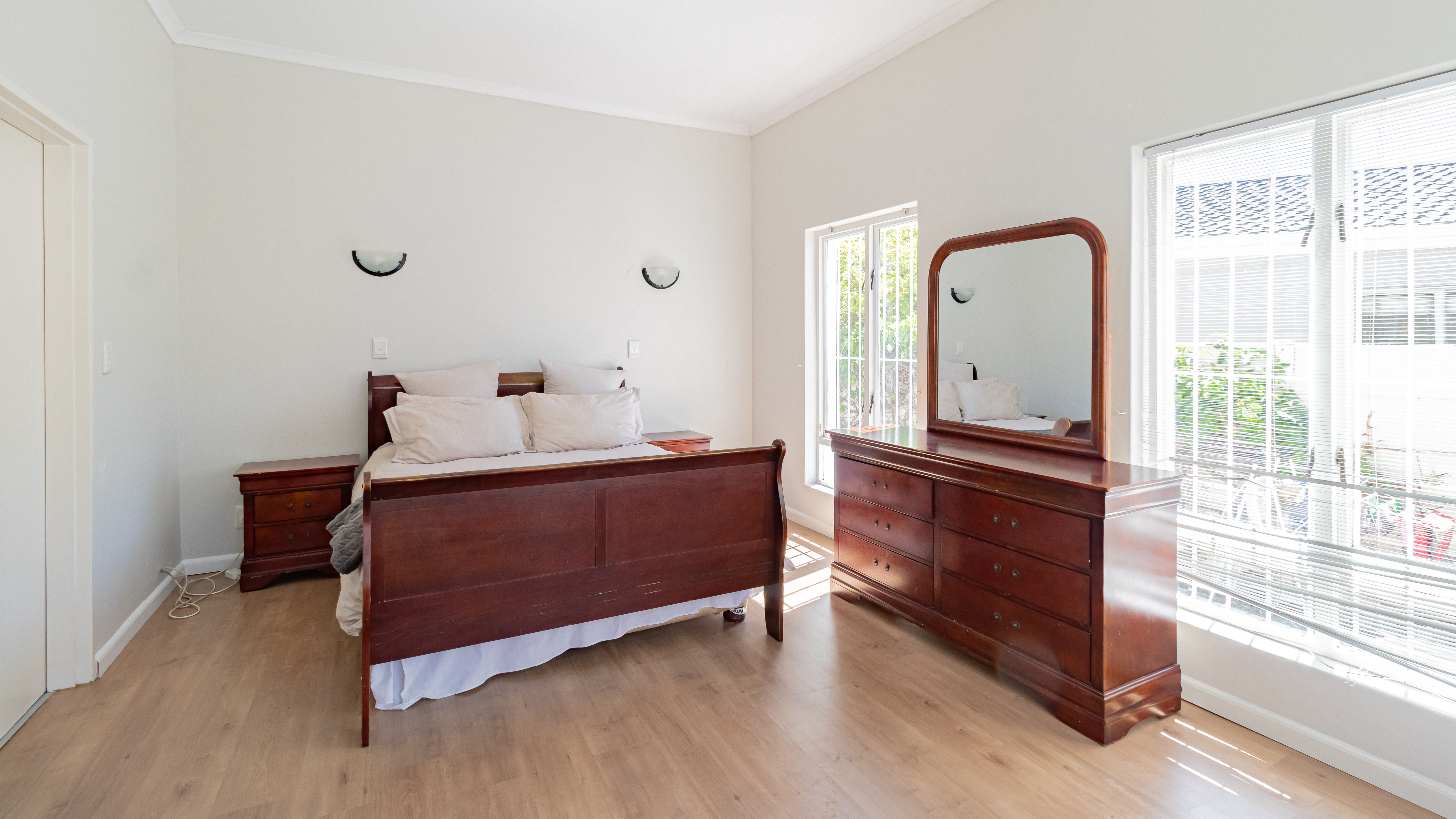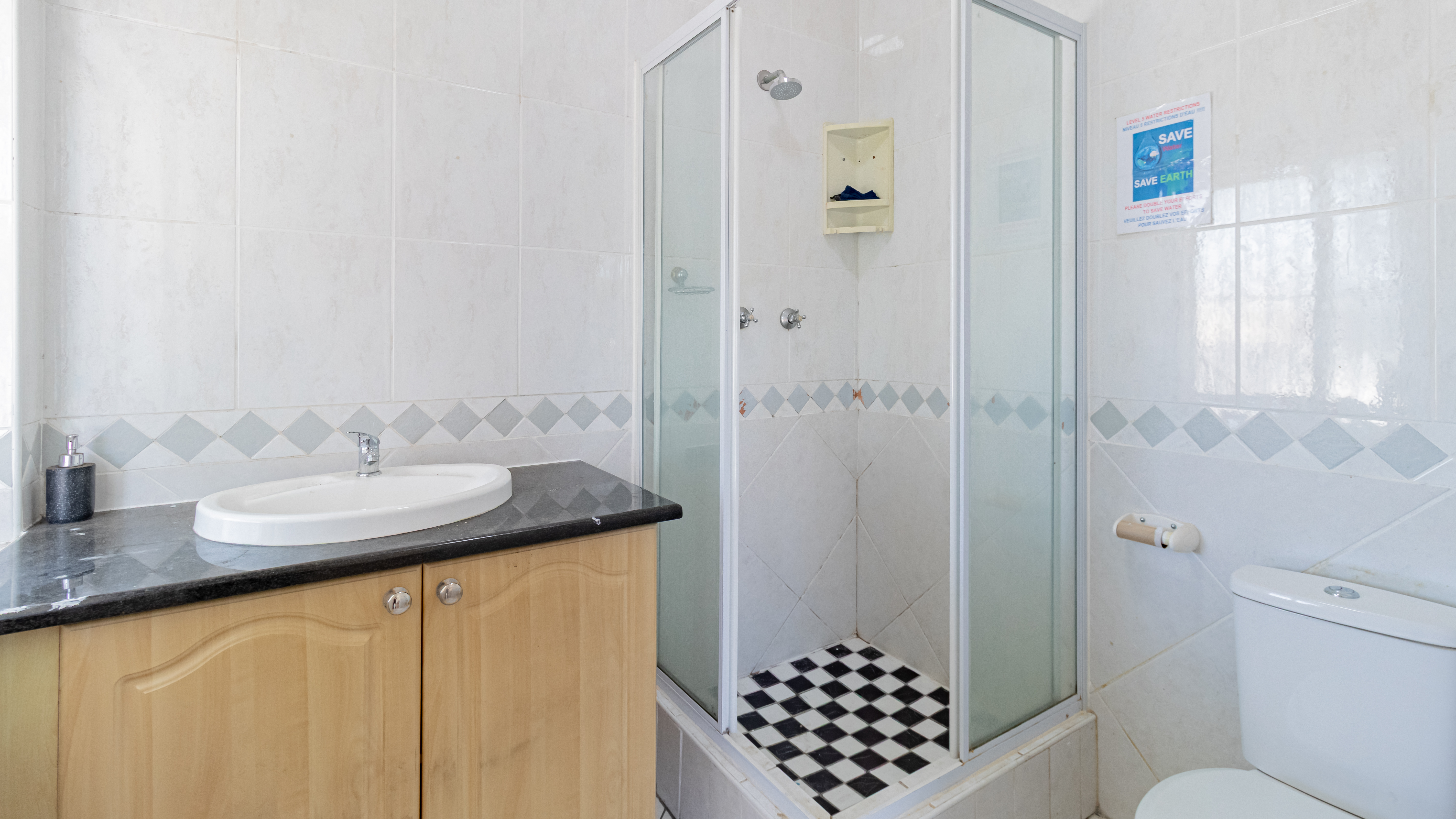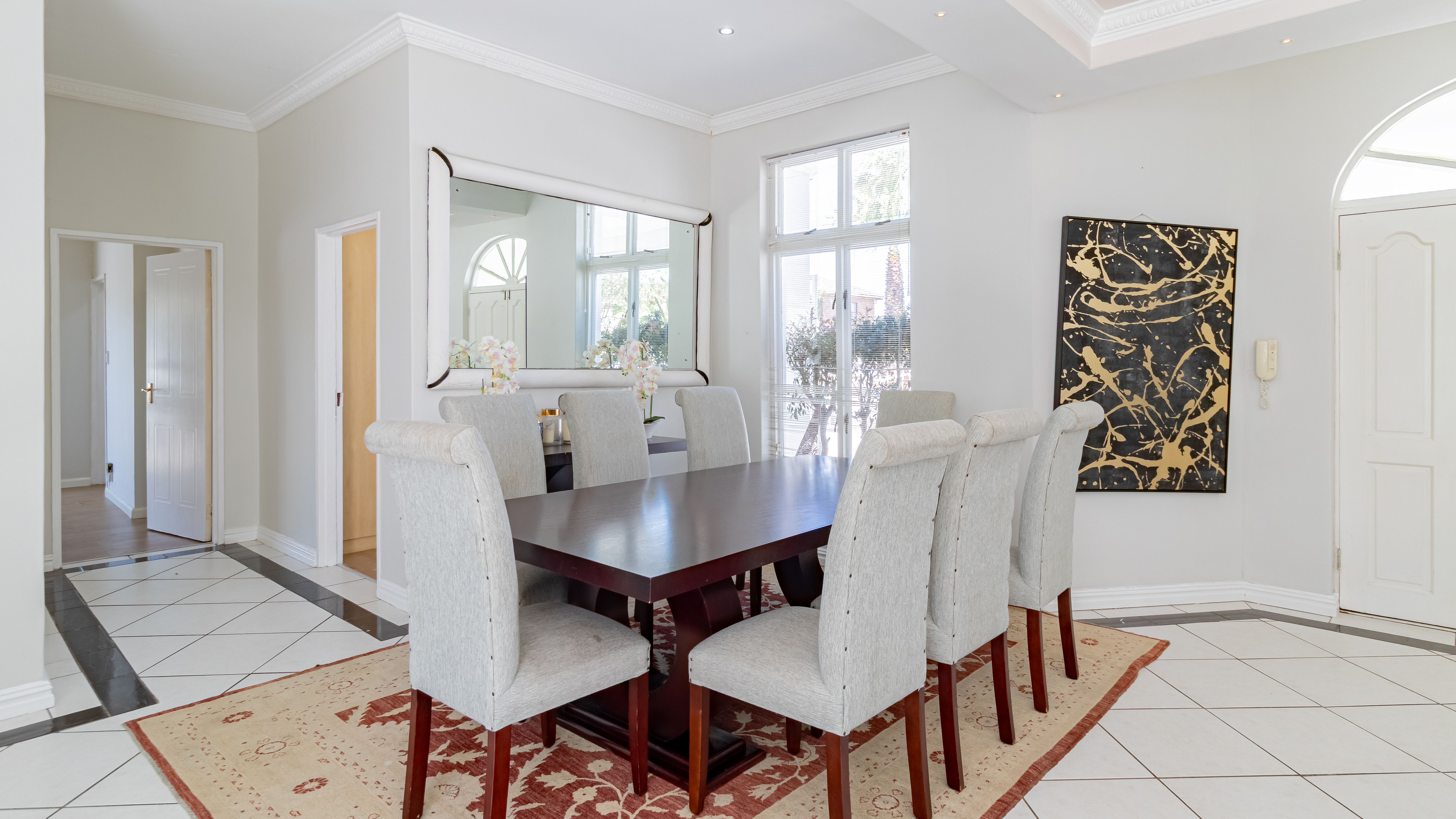 The spacious open-plan living area flows effortlessly to a private outdoor entertainment space featuring a built-in braai, bar area, and splash pool — ideal for relaxed weekends and gatherings with friends. The kitchen is neat and well-designed, complete with a centre island and separate scullery.