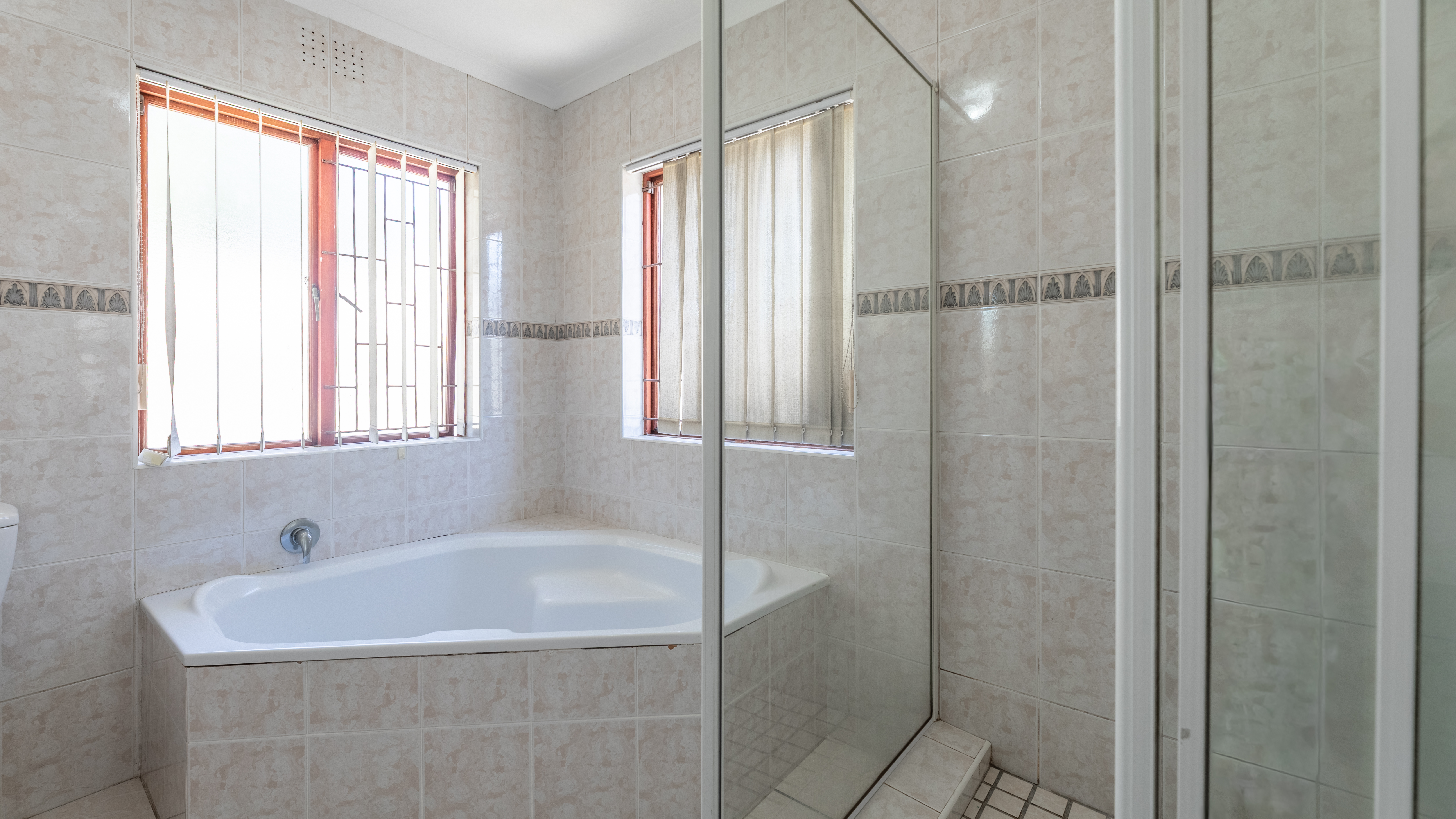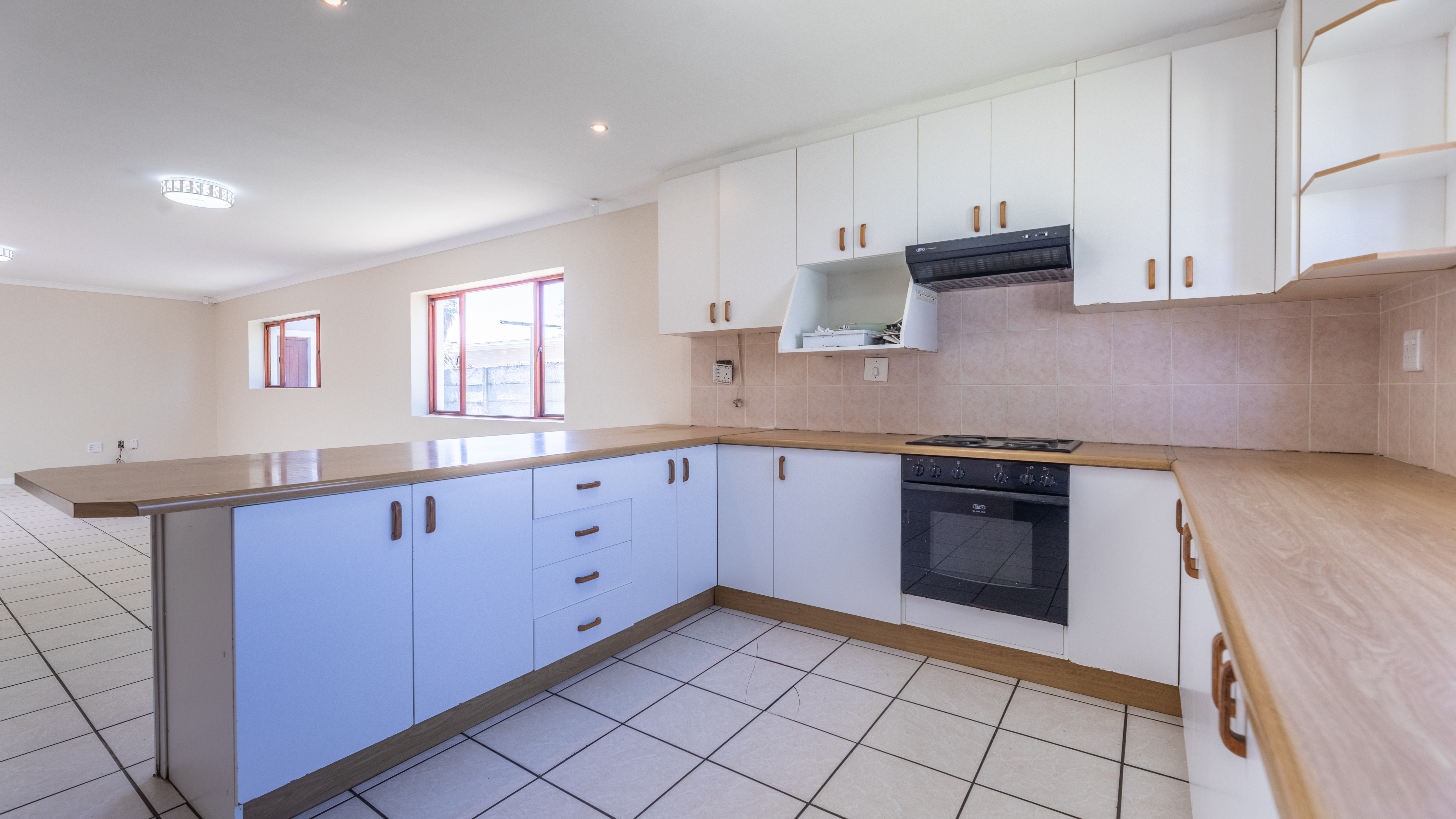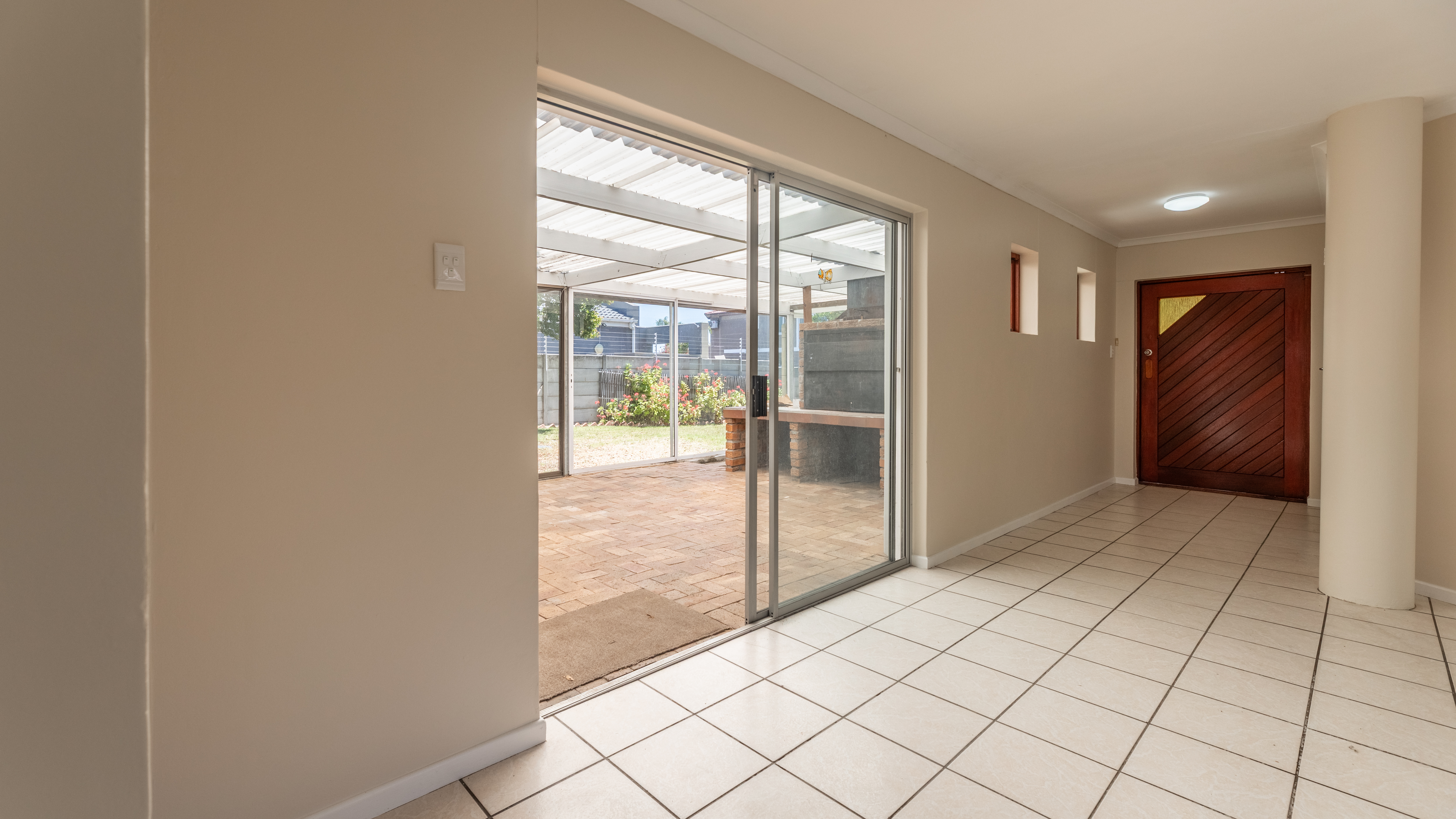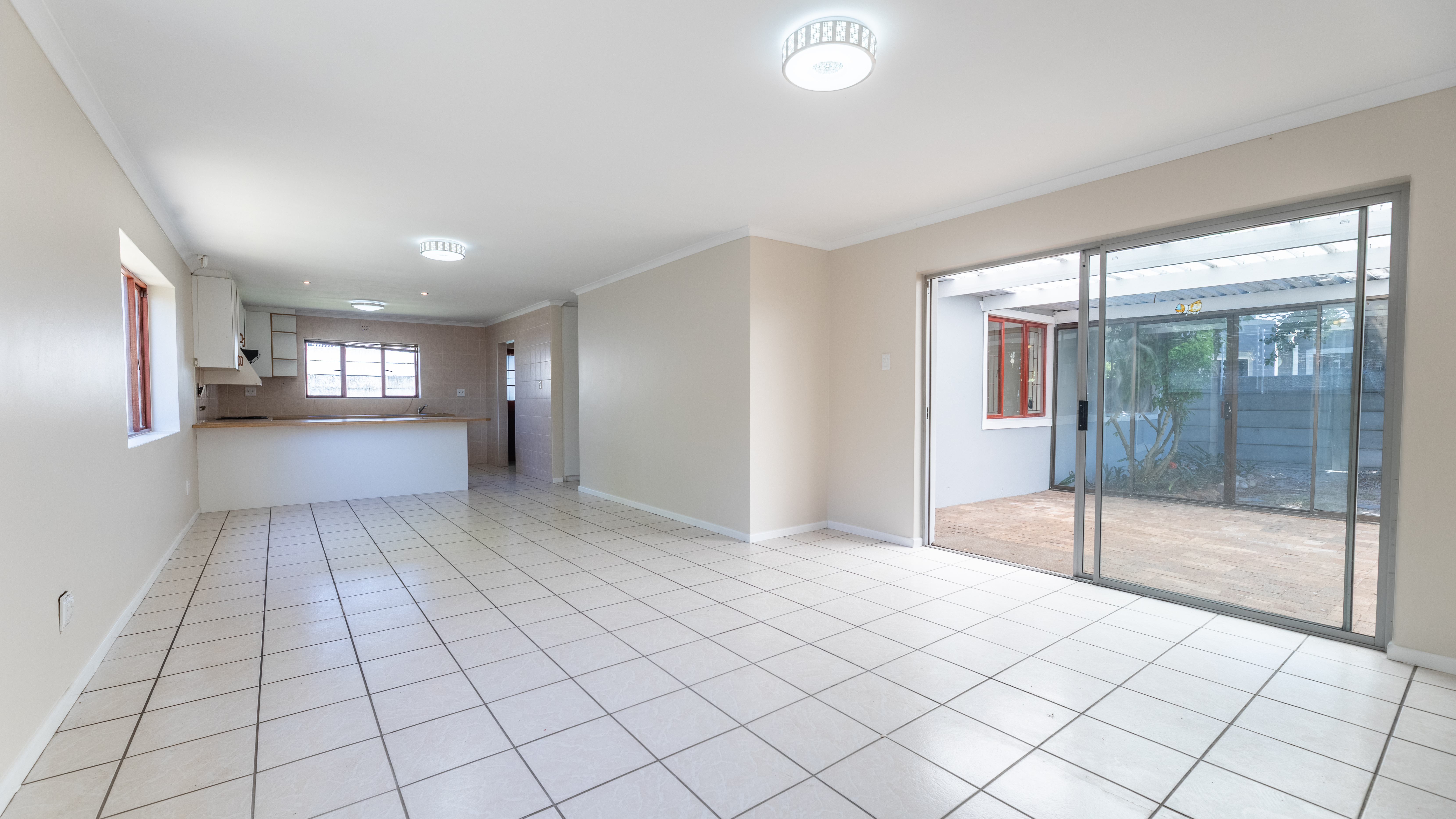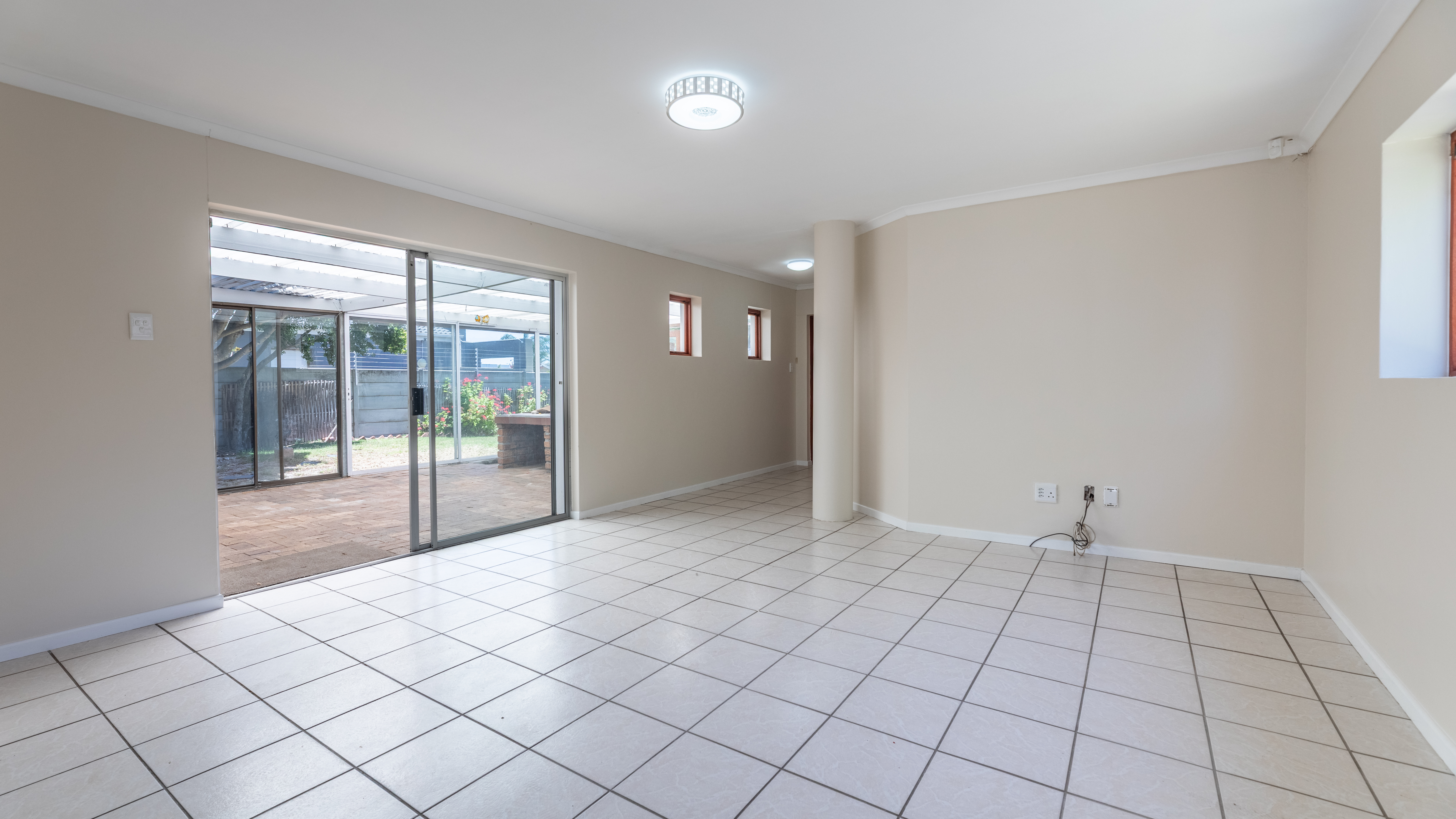 This spacious family home offers a well-designed, open-plan living space perfect for family living. The flow from the living areas to the outdoor spaces makes it ideal for both everyday life and entertaining. Open Living Area: The house opens into a large living room that seamlessly leads into the dining room, creating a natural flow for socializing and gatherings. Dining Room: The dining area is perfectly situated, offering easy access to both the living room and the kitchen, making mealtimes and hosting guests a breeze. Open Plan Kitchen: The open-plan kitchen is well-appointed and features space for two appliances, ensuring convenience for daily cooking and cleaning tasks. The kitchen's layout ensures that the cook is always part of the action, with a view into both the dining and living areas. Bedrooms: Three Spacious Bedrooms plus study room : The home offers three sizeable bedrooms with built in cupboards. These bedrooms are perfect for a family, for relaxation and personal time. Family Bathroom: The main bathroom is shared among two of the bedrooms and offers modern amenities for comfort. Ensuite Main Bedroom: The main bedroom comes with its own fully-equipped ensuite bathroom, offering privacy and convenience for the homeowners. Outdoor Features: Double Garage: The property includes a spacious double garage, providing ample space for parking and storage. Garden with Potential: The large garden offers plenty of space outdoor activities, or future extensions. Outdoor Braai Area: A dedicated braai (barbecue) area complements the outdoor living space, ideal for family gatherings, socializing with friends, and enjoying al fresco.