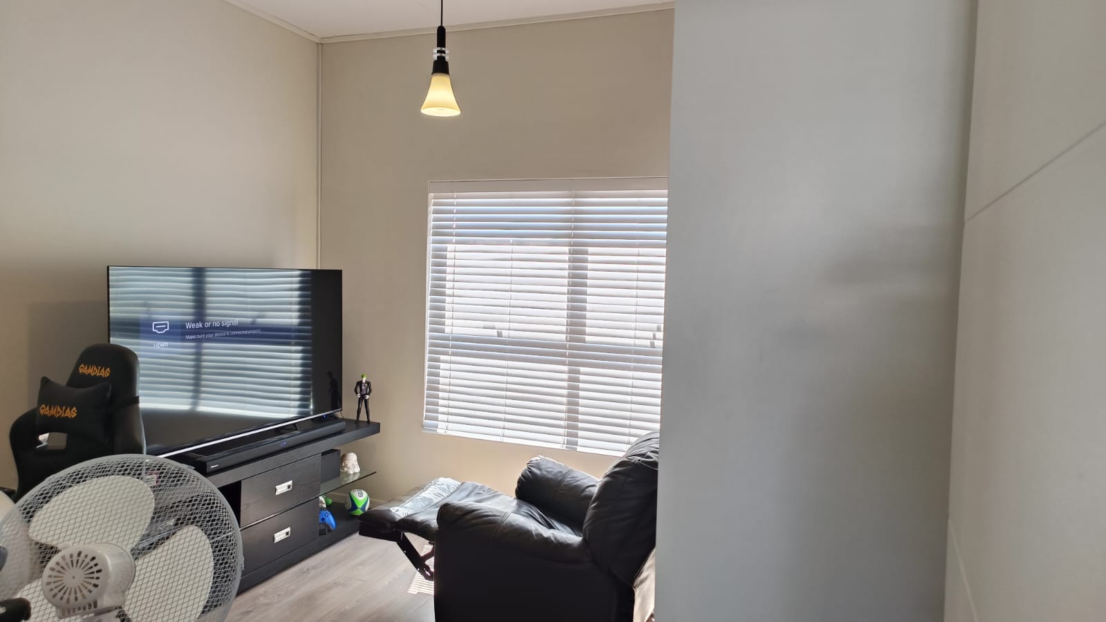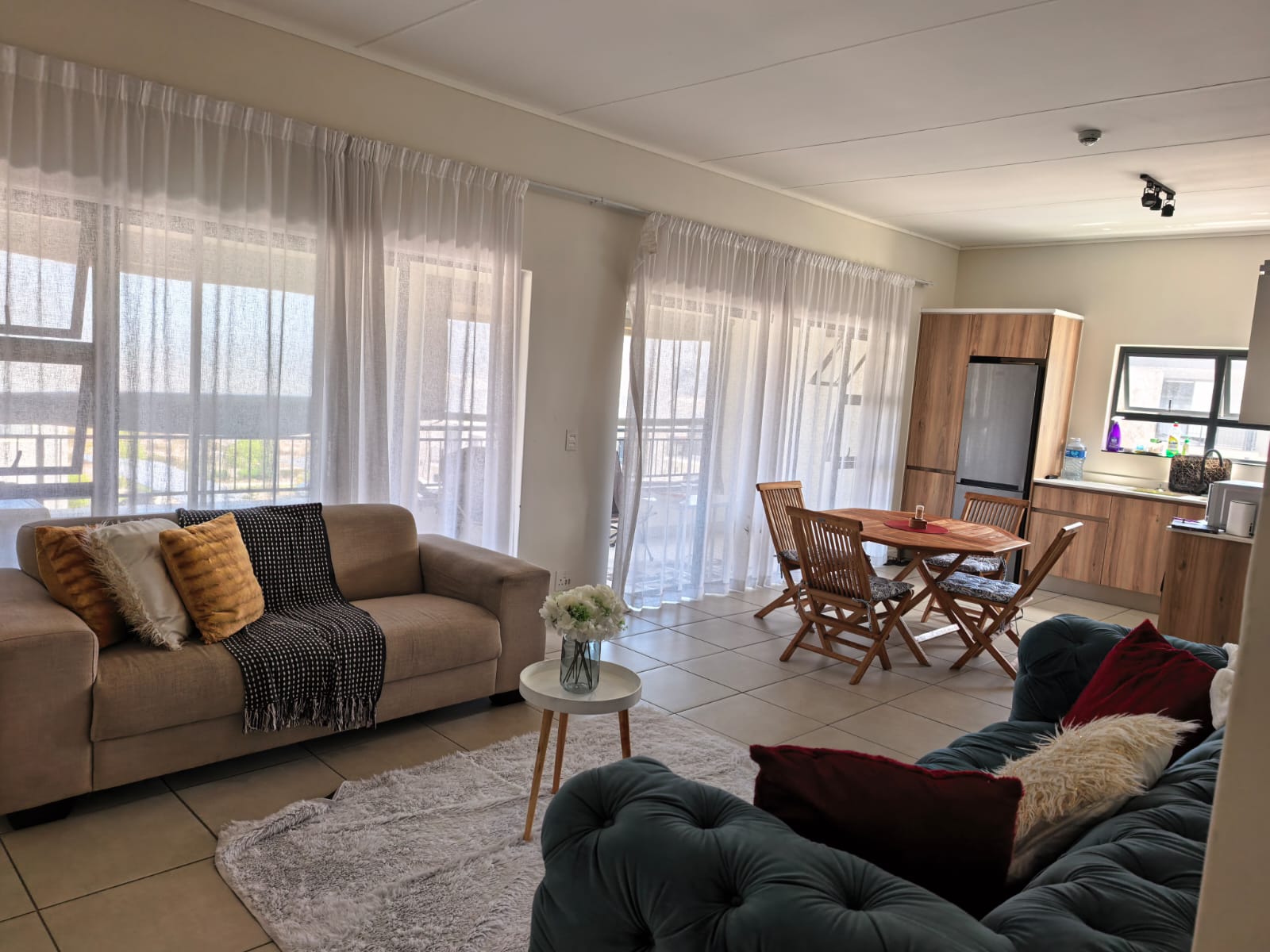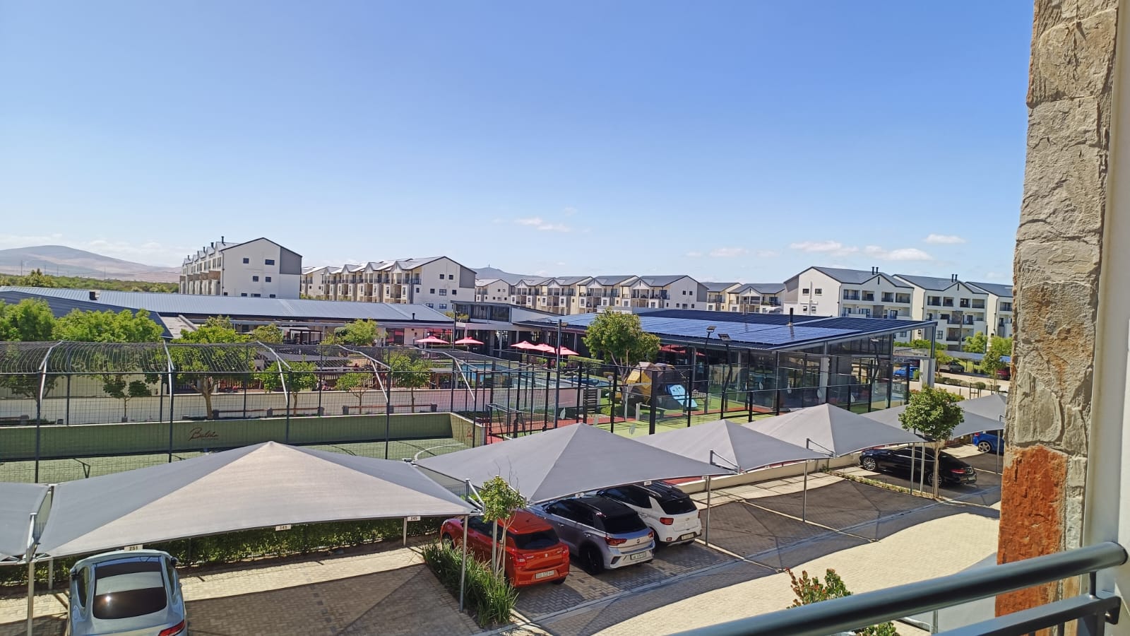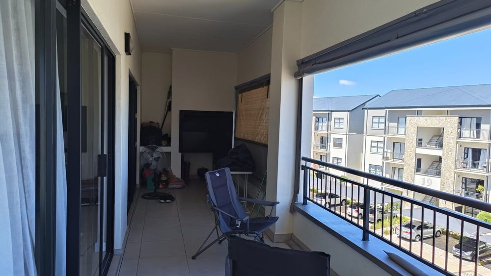 Big balcony with weather blinds and built in braai. tow covered parking bays in a lifestyle complex.