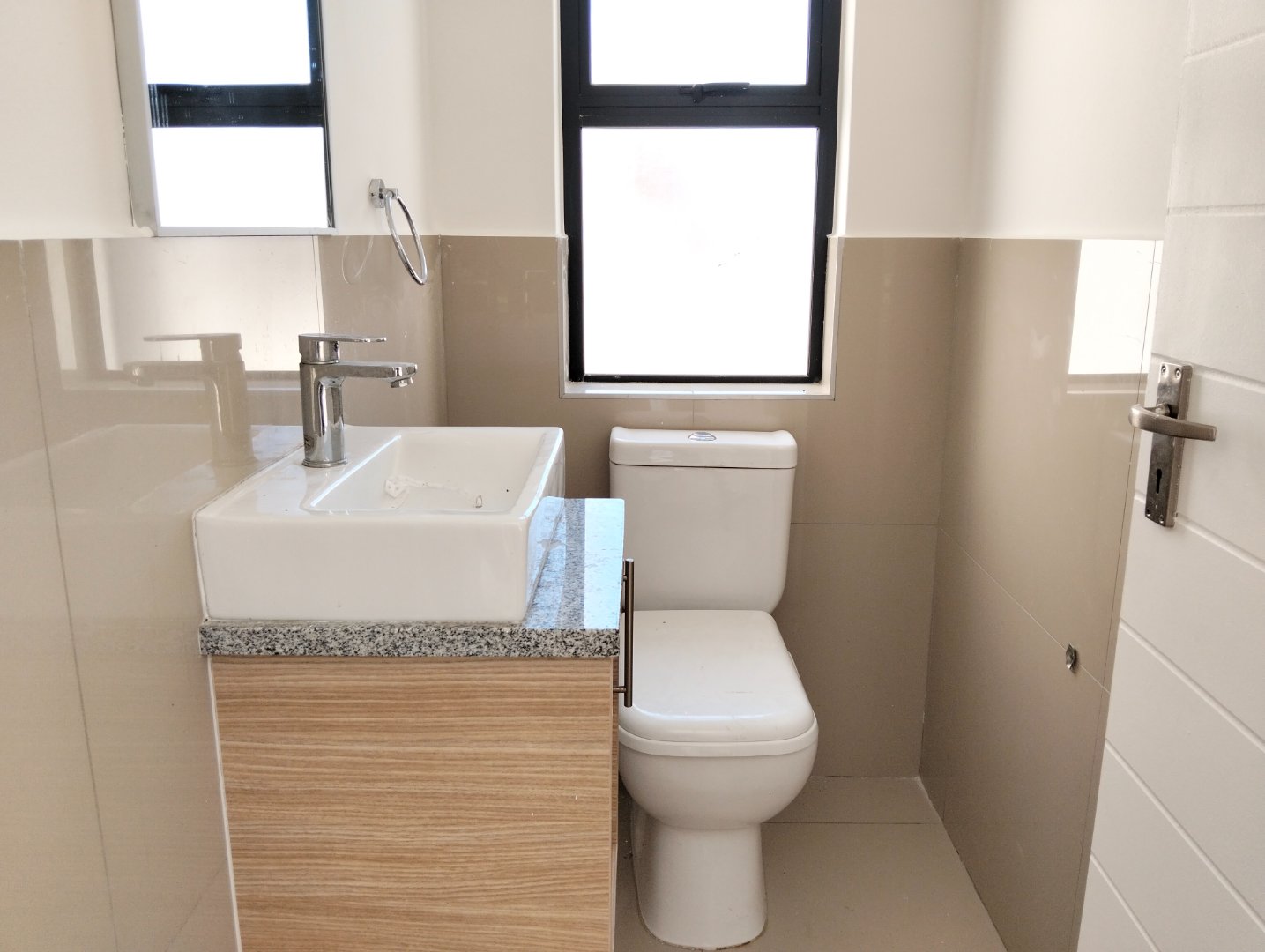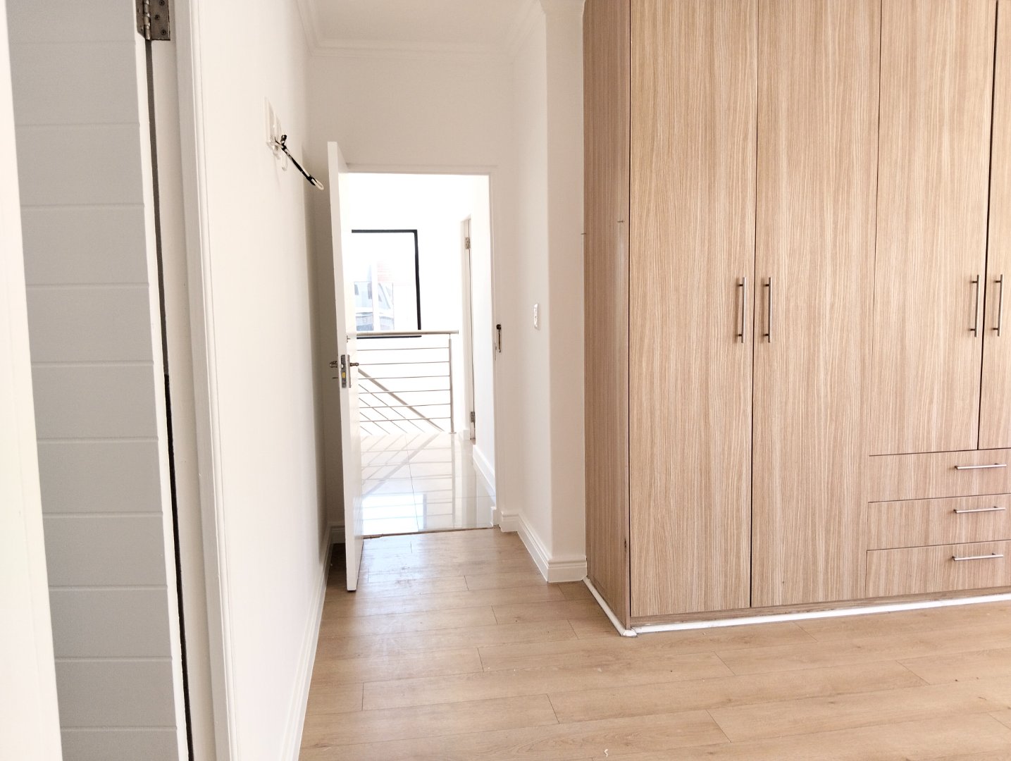 The ground floor offers one guest bedroom with private en-suite bathroom. Upstairs, you'll find three bedrooms with laminate flooring—the main bedroom with en-suite, and two bedrooms sharing a full bathroom. All 3.5 bathrooms are beautifully tiled.