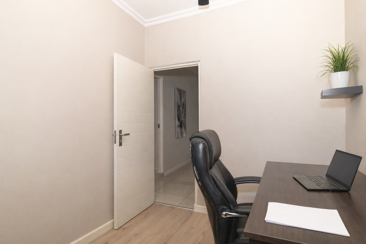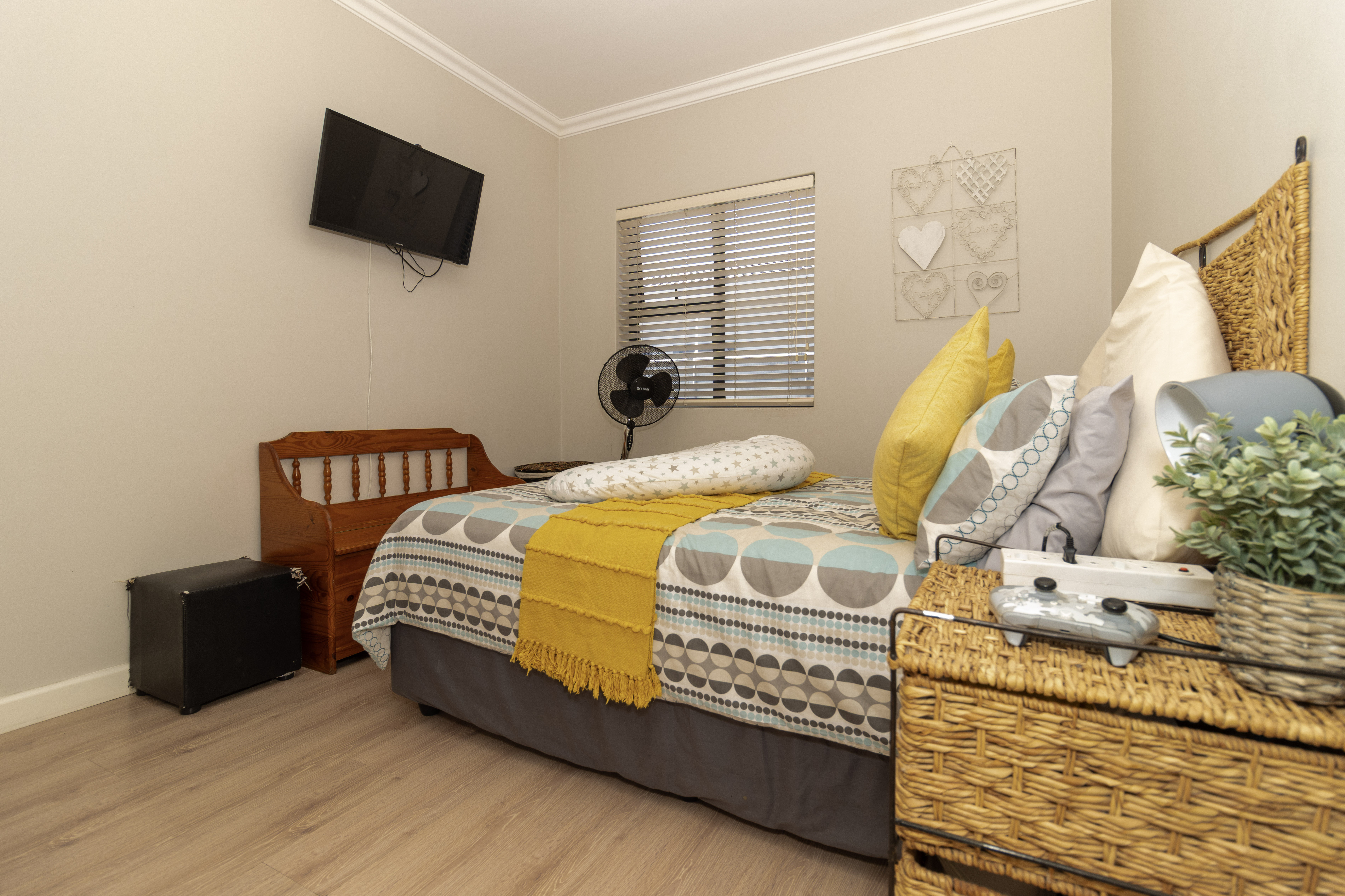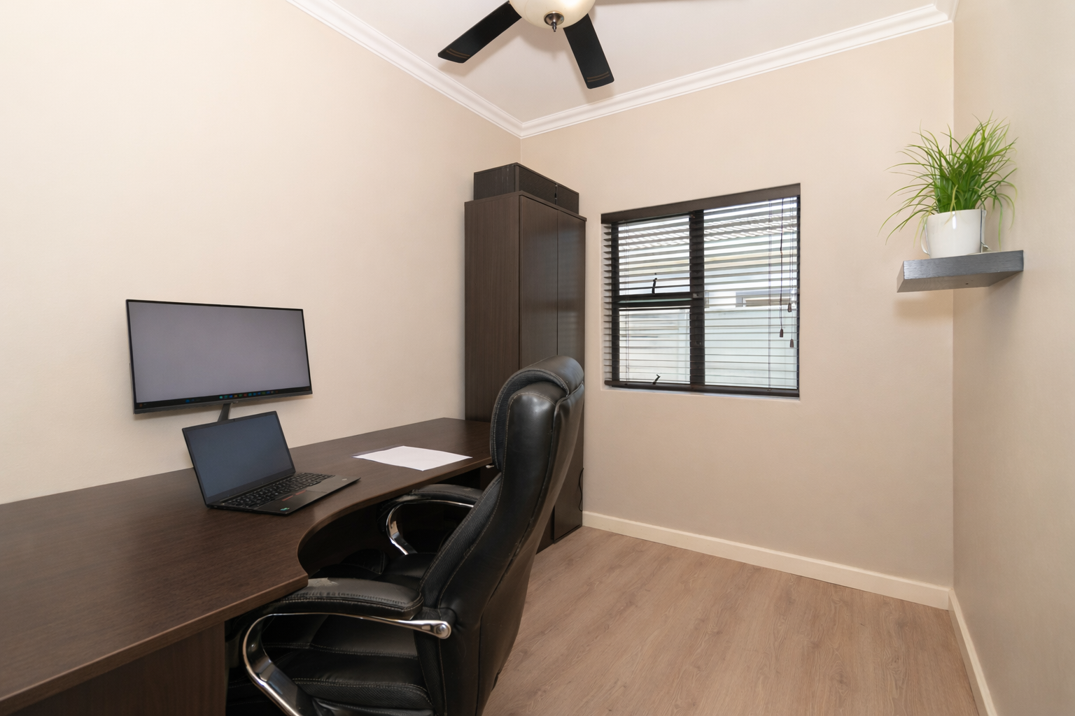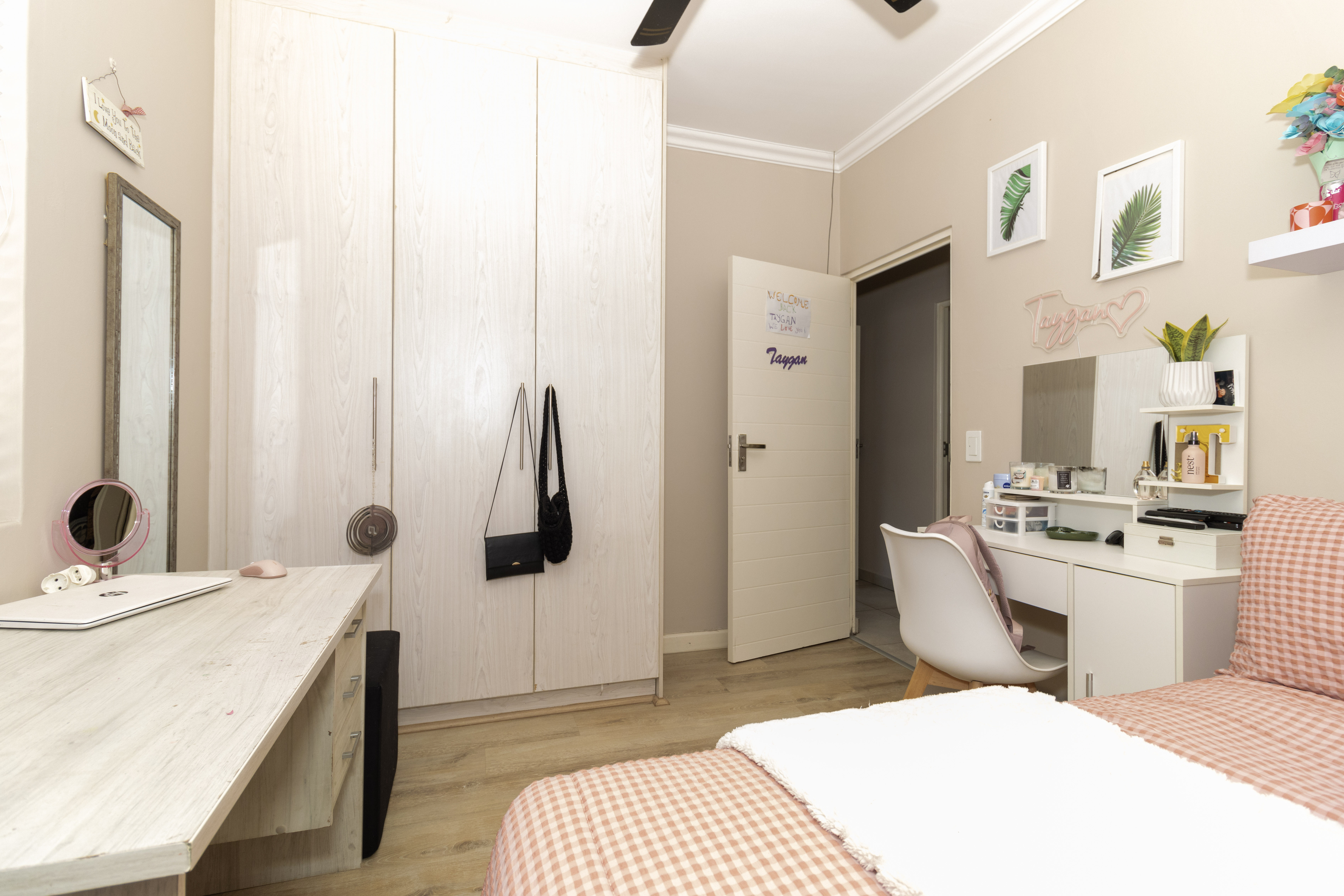 There are four well-sized bedrooms. Three include built-in cupboards, while the fourth bedroom offers flexibility as a study, guest room or work-from-home space. The main bedroom features a modern en-suite bathroom with a wall-to-wall shower, and a second full family bathroom includes both a bath and shower.
