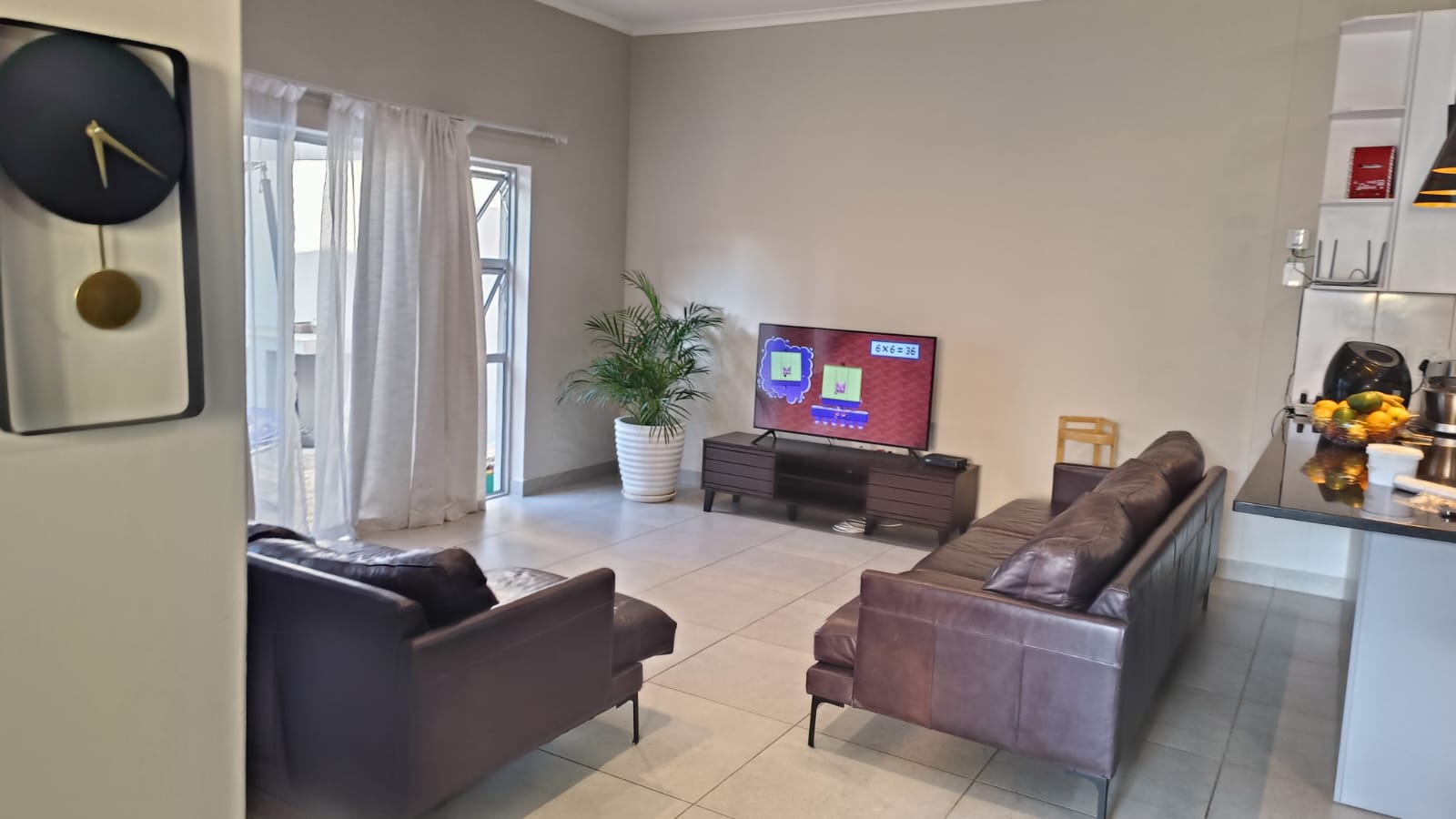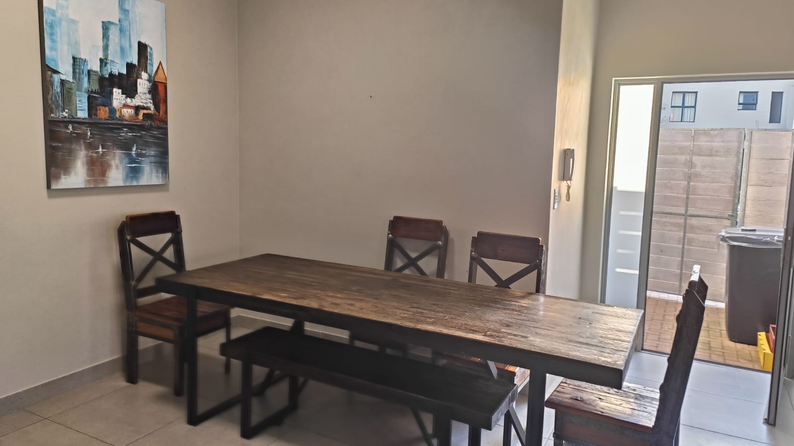 . Lovely tiled 3-bedroom home featuring a main en-suite and a full family bathroom. The open-plan lounge and kitchen create a bright, welcoming living space, with a convenient plumbing point in the kitchen. Outside, enjoy a low-maintenance garden with built-in braai on patio . Double garage with an automated door, also fitted with a plumbing point.