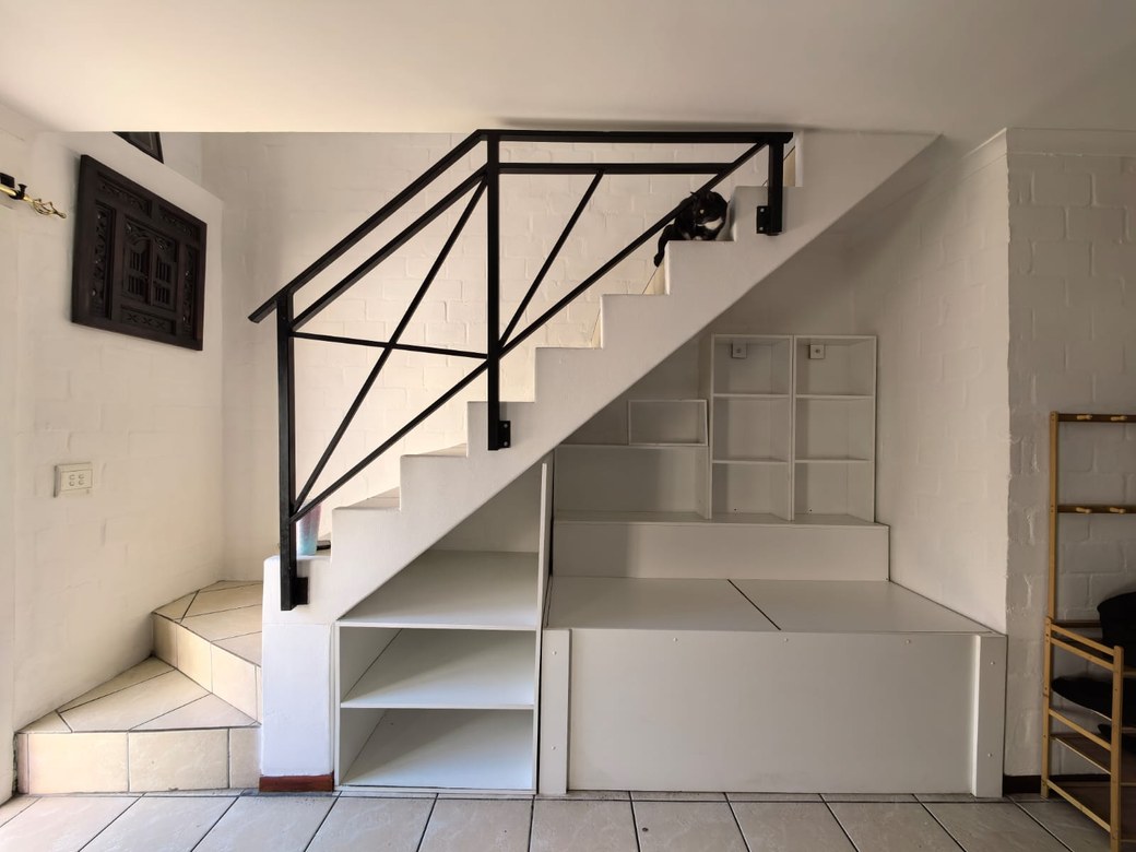 * Cosy reading nook with built-in bookshelf under the staircase, with additional storage space