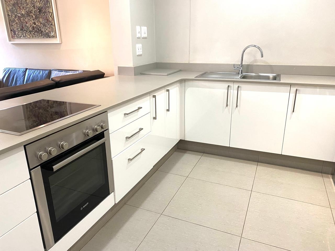 Gourmet Kitchen: Equipped with all essential appliances, the kitchen features Caesar stone countertops and sleek, glossy finish cabinets, perfect for any cooking enthusiast.