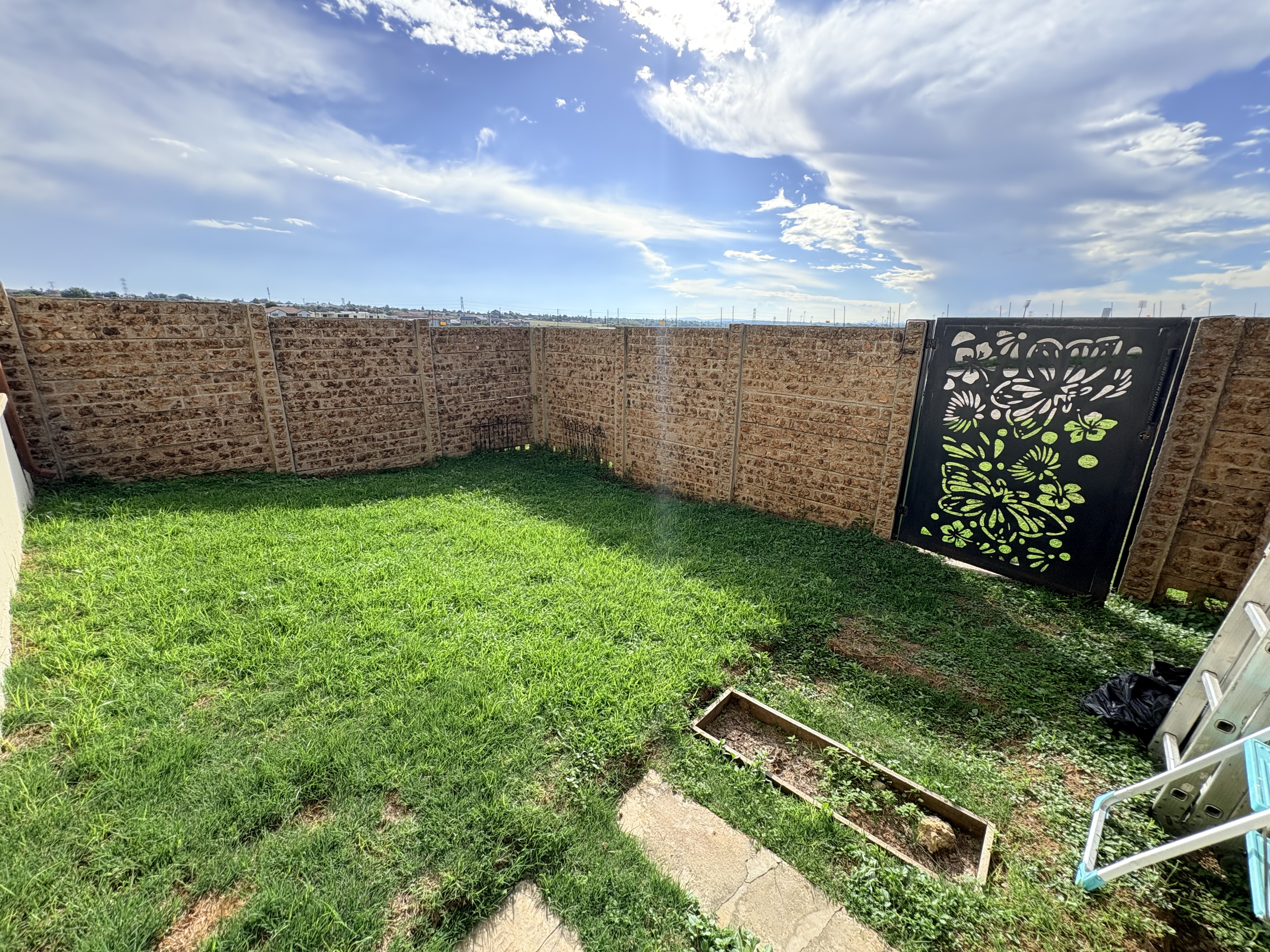 This ground floor 2 bedroom apartment is nestled within a secure estate in Parkrand Boksburg. boasts open plan living; fitted kitchen with quartz...bedrooms fitted with builtin cupboards. The bathroom has a man size tub and fitted shower head for convenience. Morden.Epoxy crafting throughout the entire home.Full bathroom. The lounge overflows onto own private enclosed garden with dedicated garden service once a week.