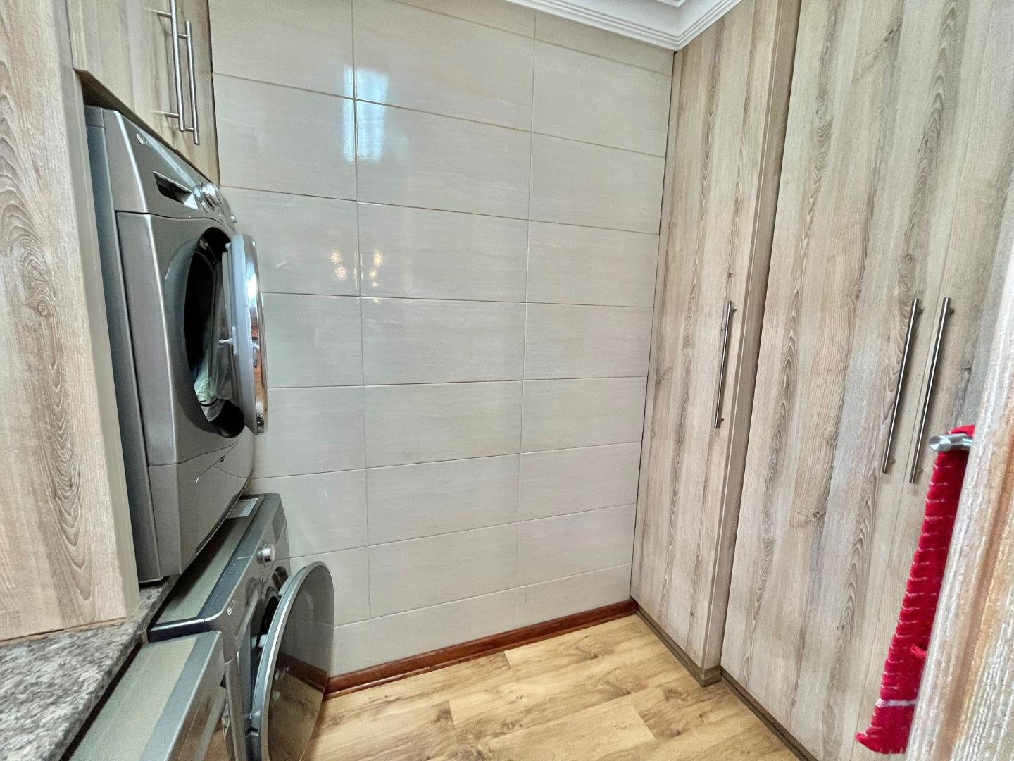 Located in a boomed-off enclosed area, this property ensures peace of mind with burglar bars and security doors. An exterior braai area and lapa provide perfect settings for outdoor entertaining. The home is equipped with fibre internet connection for modern connectivity needs. Additionally, there's an outside storeroom for extra storage.