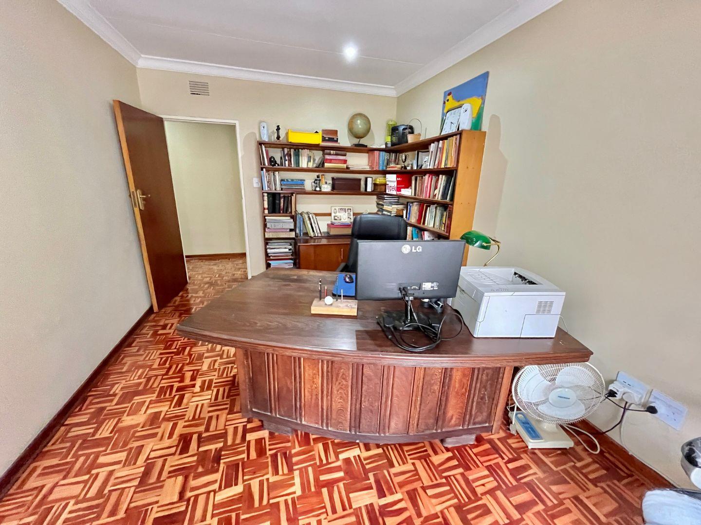 For entertainment and relaxation, the large family/TV room boasts wooden laminated floors and sliding doors that open up to the swimming area, making it an ideal spot for hosting guests or enjoying family time. The expansive study, with its fitted unit and parquet floors, provides a quiet retreat for work or study.