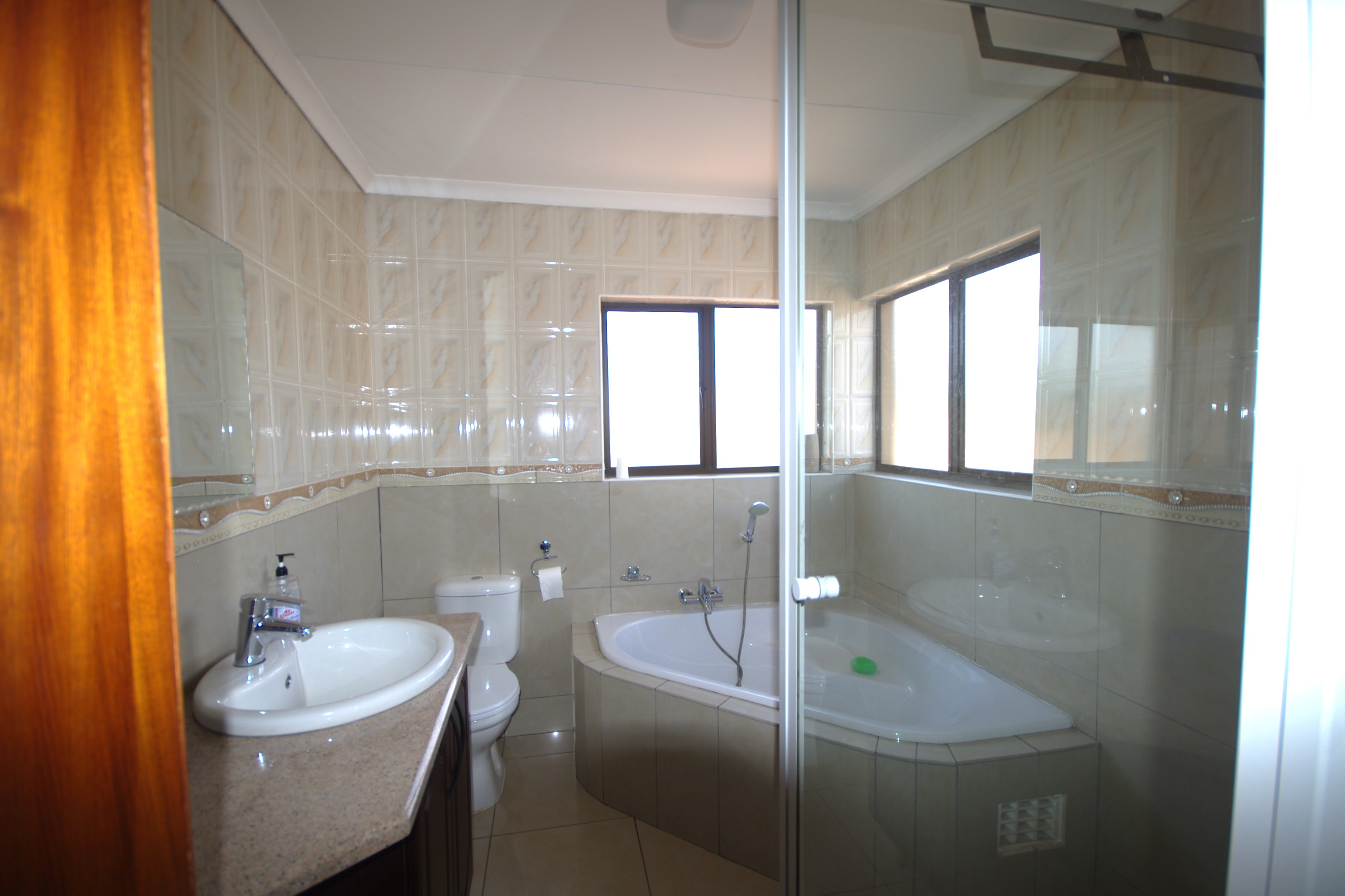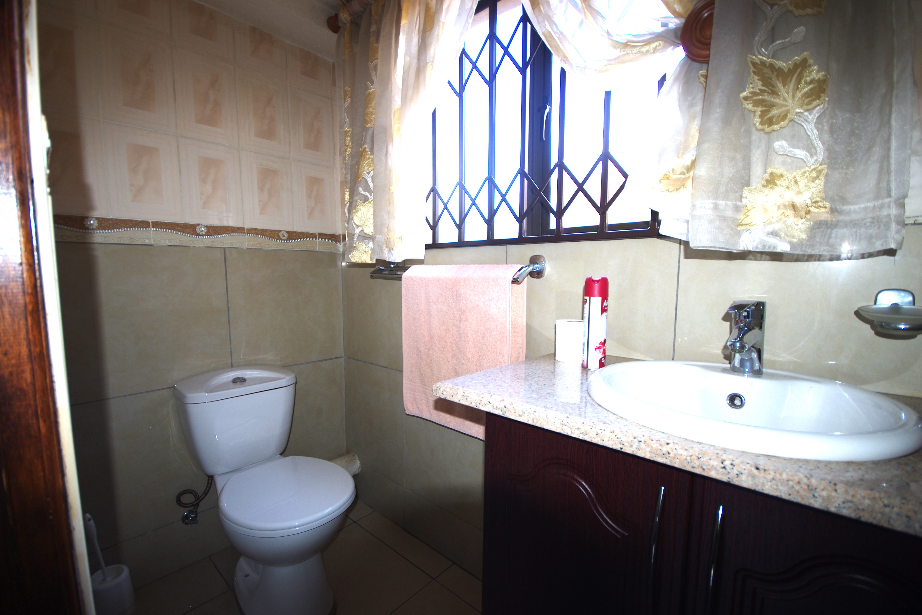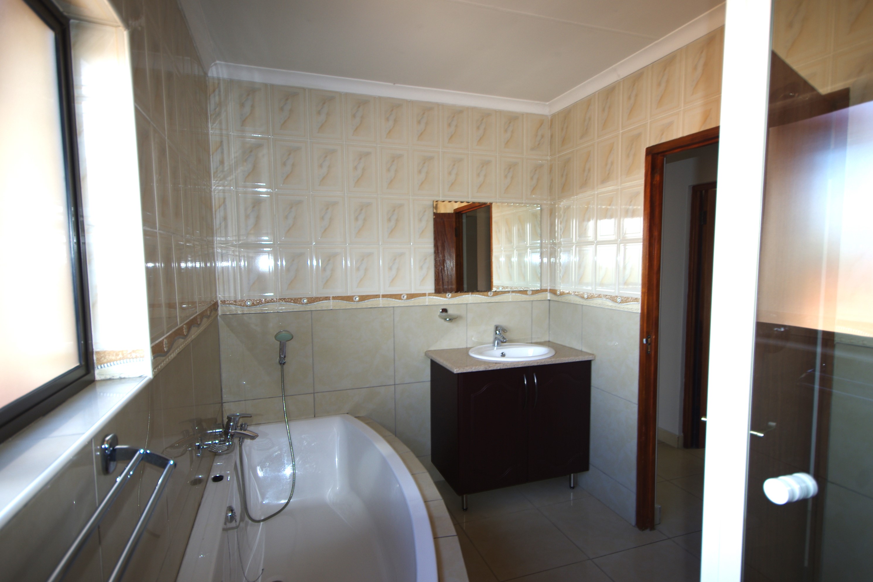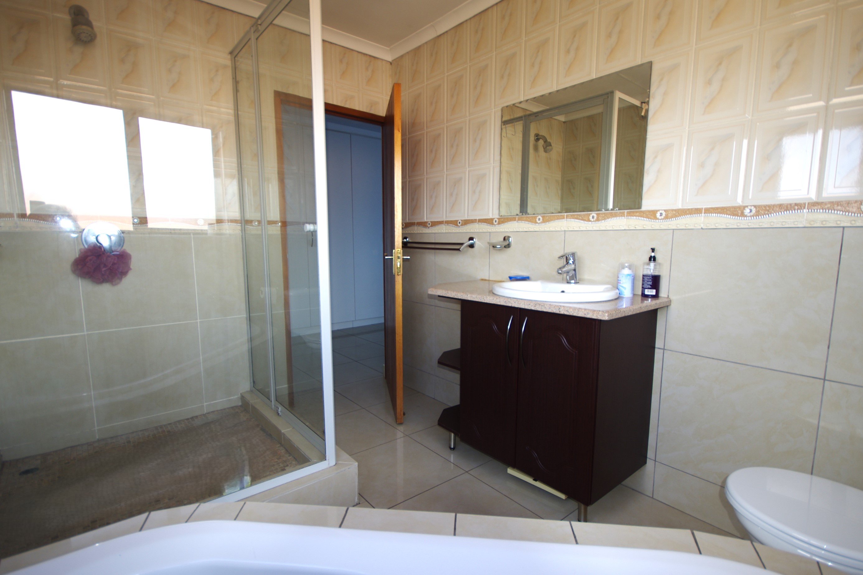 A broad stairway with stunning banisters leads upstairs to 4 stunning bedrooms with 2 full bathrooms. The main bedroom is volumous, with ample cupboards and a full ensuite bathroom with extra-large shower. There are a further 3 bedrooms with built-in cupboards.