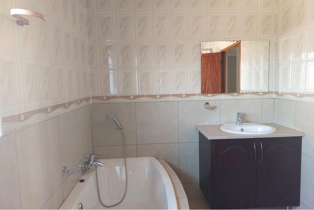 Upstairs: Four spacious bedrooms await, each featuring tiled floors and built-in cupboards. The main bedroom is a retreat with an abundance of cupboard space. Two full bathrooms boast custom-built extra-large showers and modern finishes, ensuring comfort and luxury for the entire family.