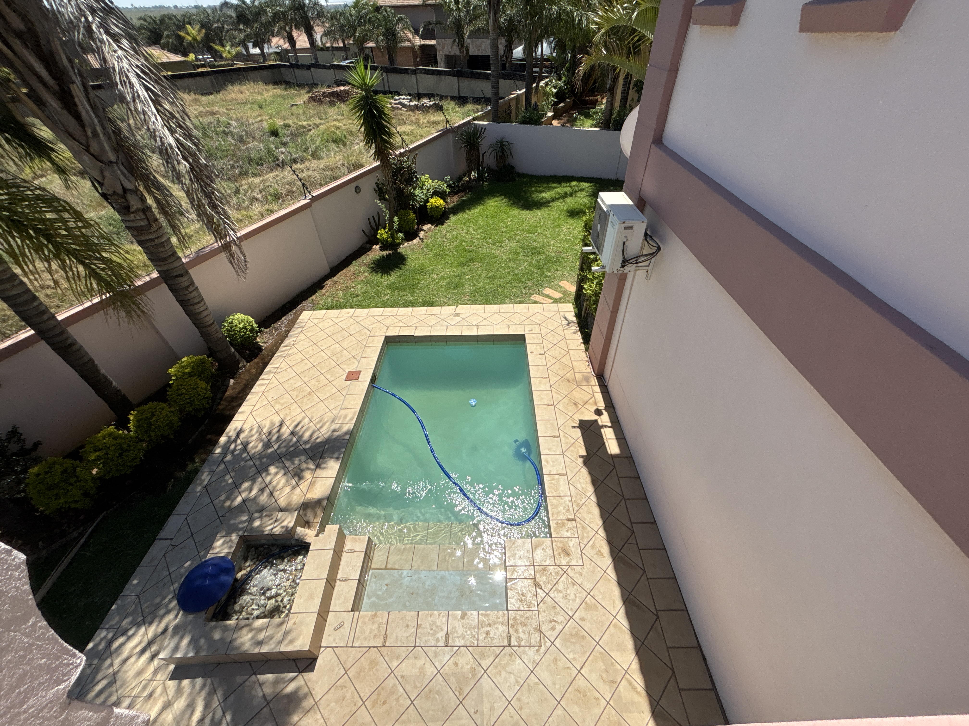 Additional features include 2.5 bathrooms, a dedicated gym room, a functional laundry area, and two automated garages. Step outside to enjoy a sparkling swimming pool set in a beautifully maintained garden — the perfect place to unwind and soak up the sun.