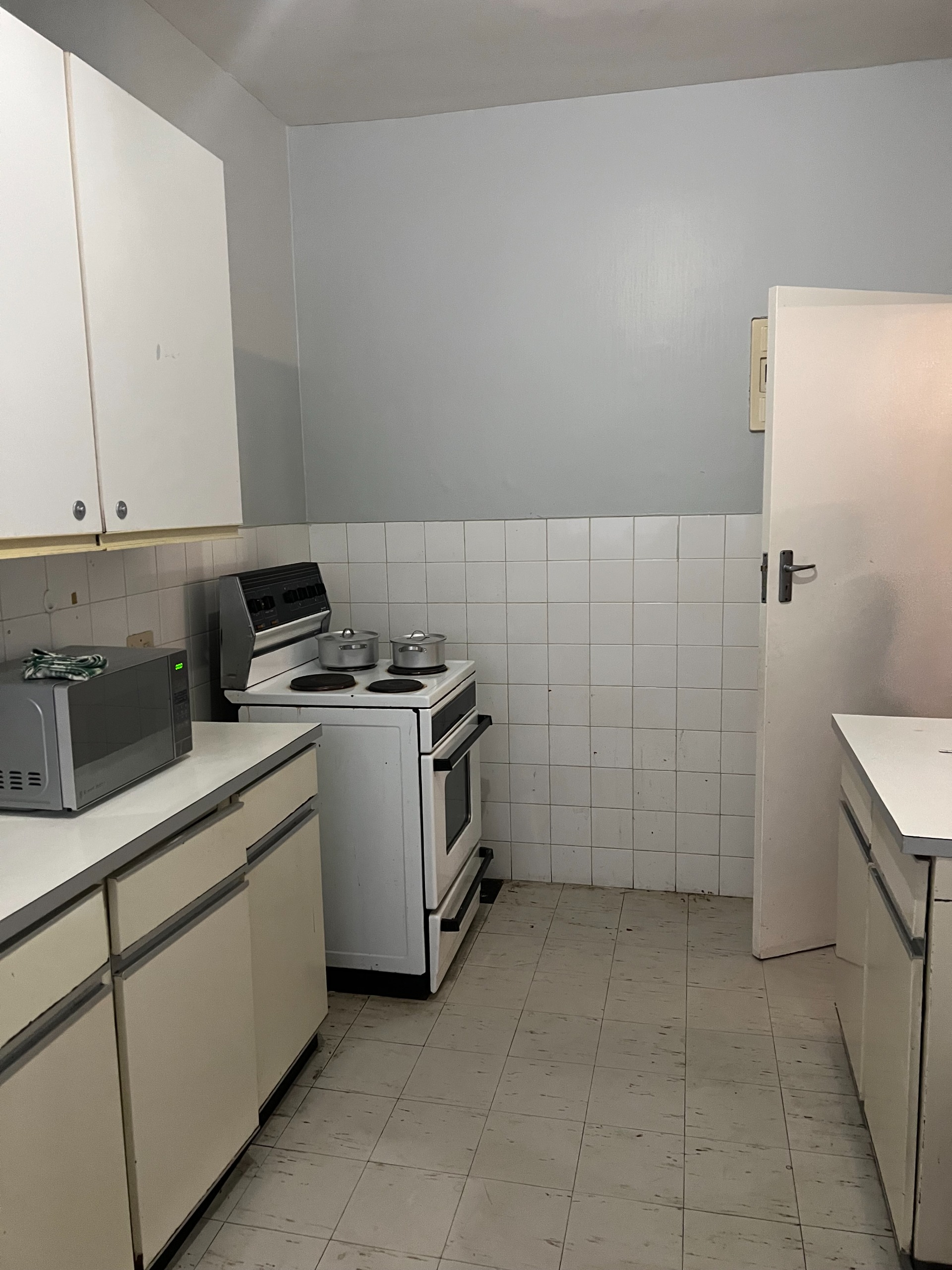 The kitchen and bathroom are shared with other tenants in the unit, creating a communal living environment suited for responsible and tidy individuals.