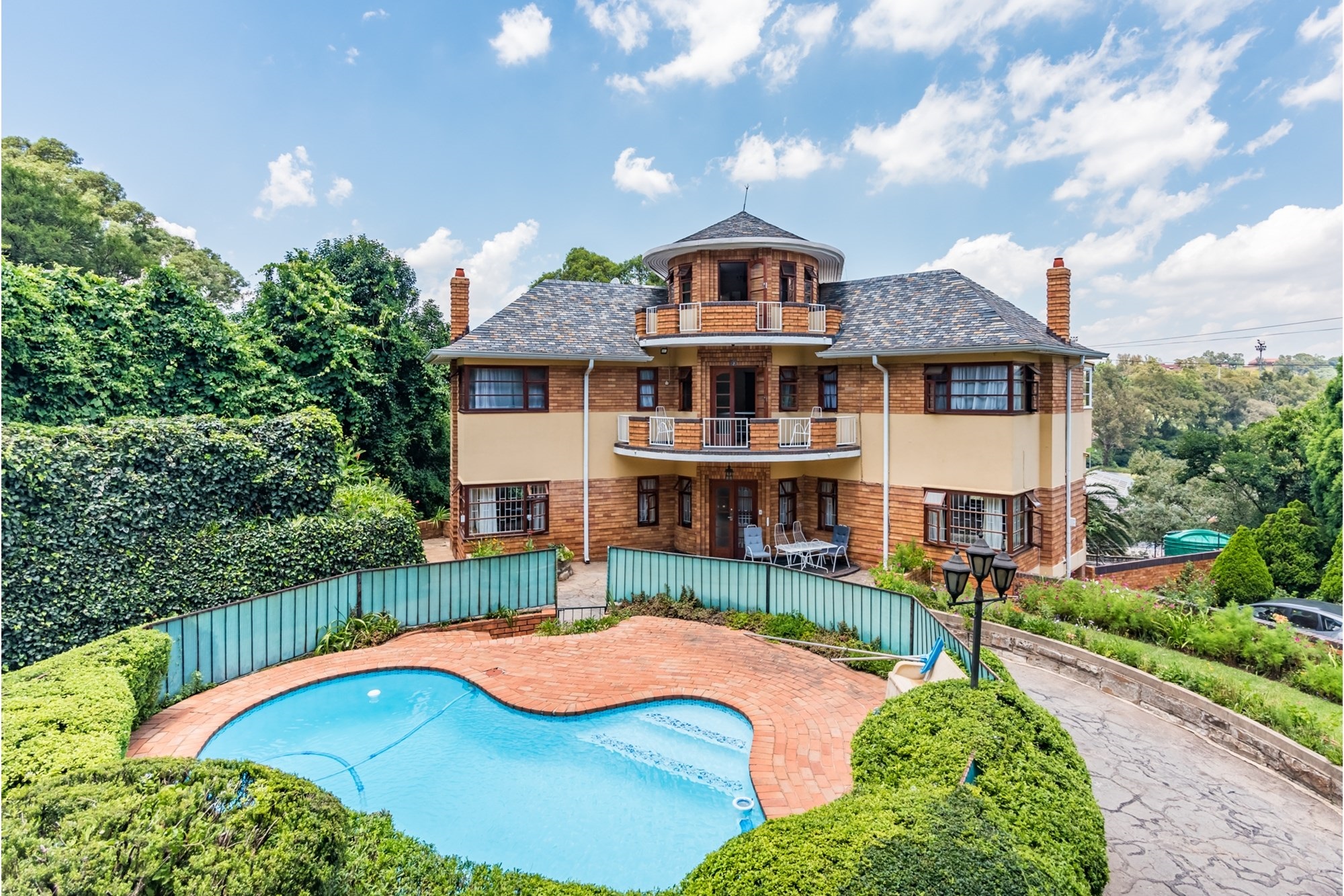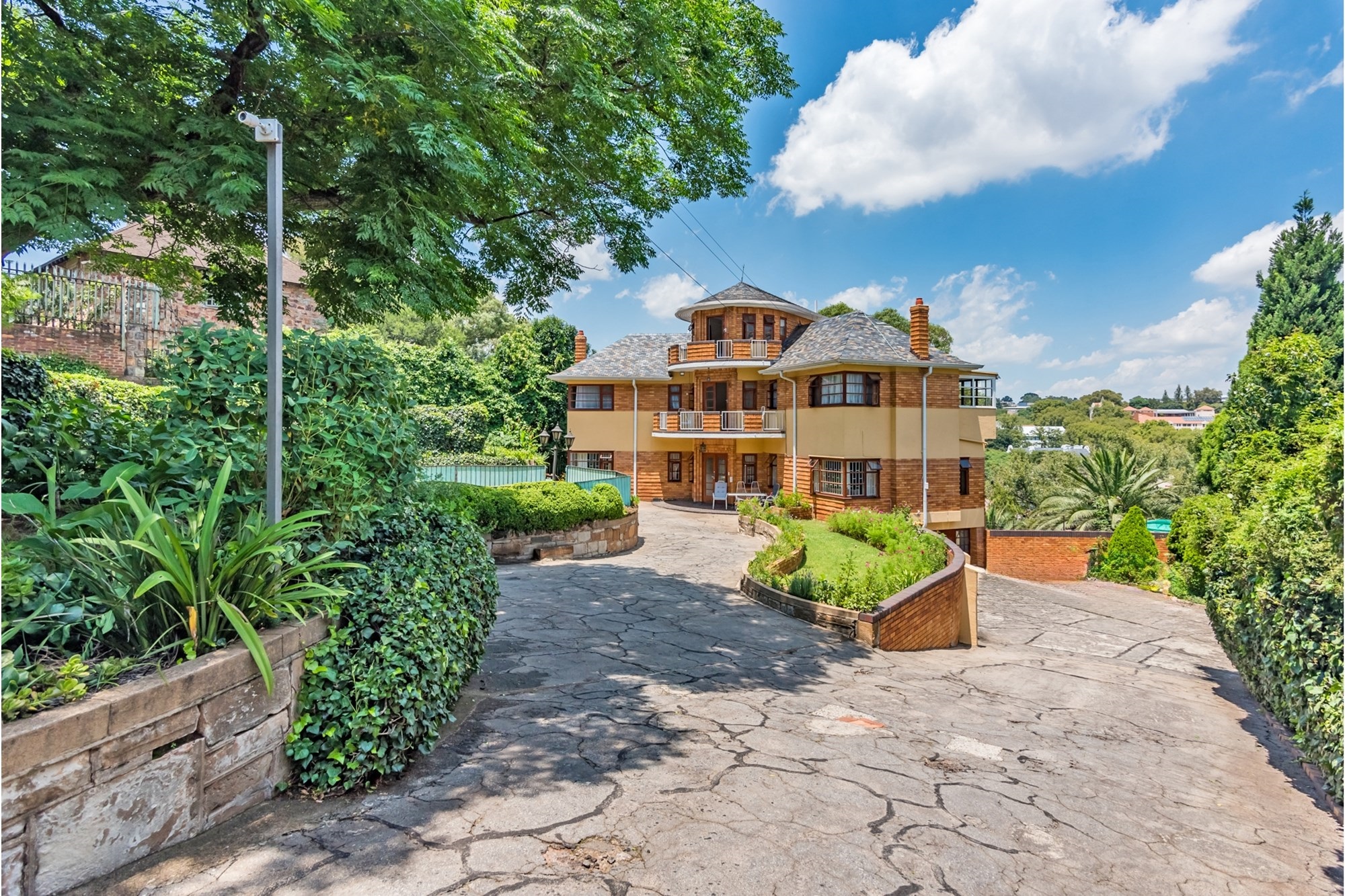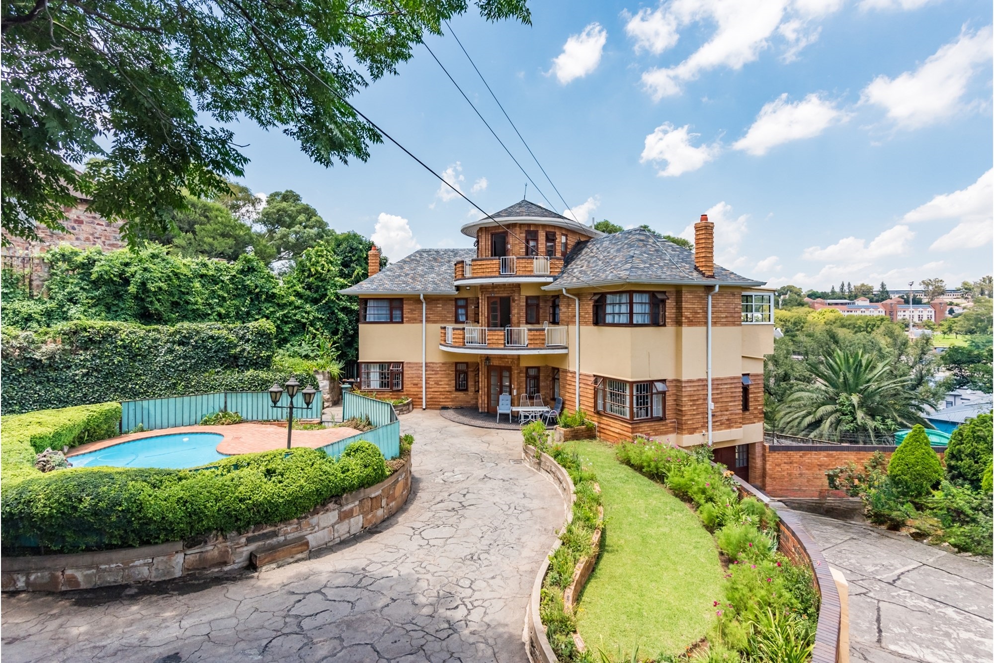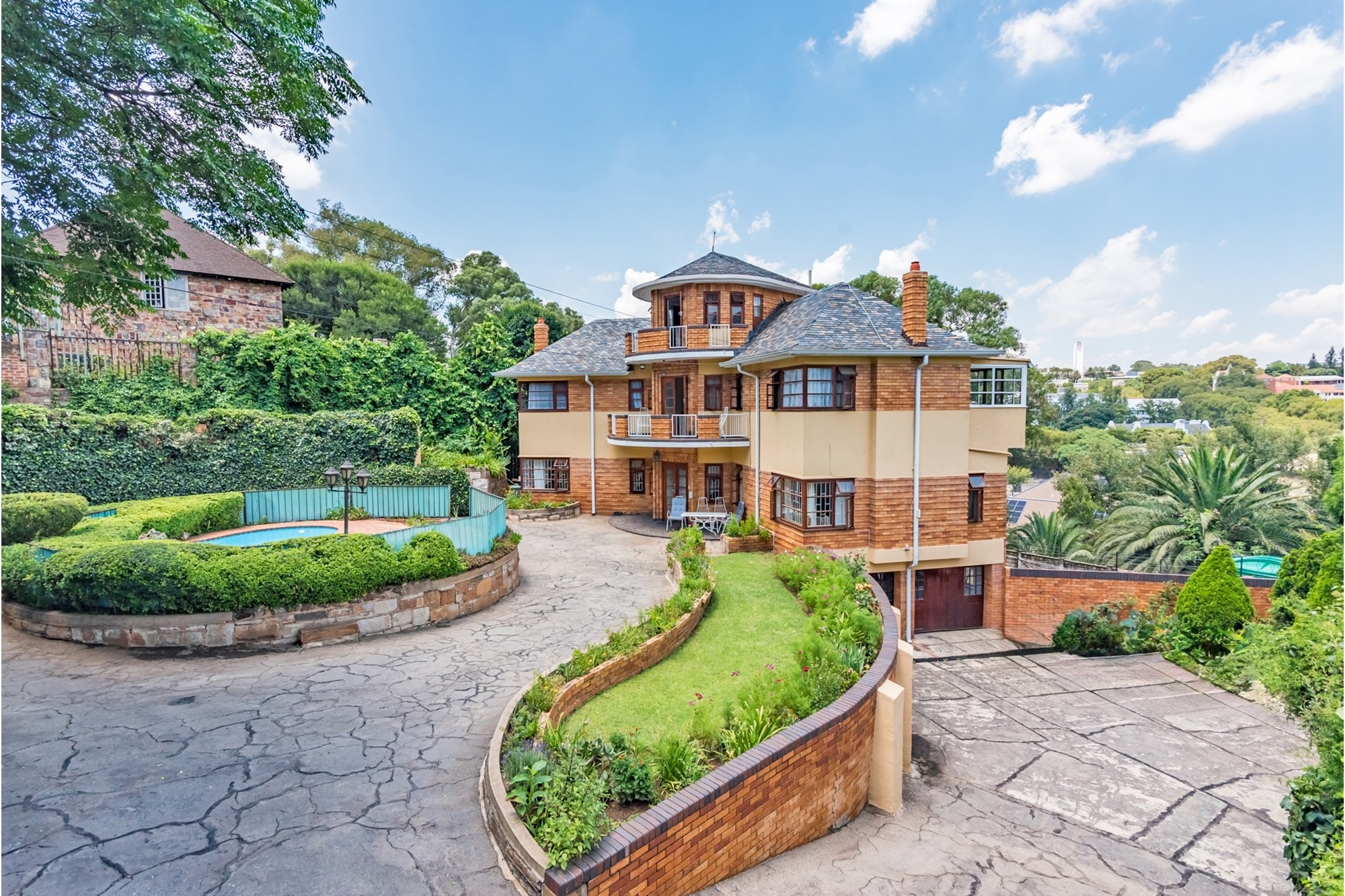 A Masterpiece of Craftsmanship in Historic Parktown Step into a bygone era with this extraordinary home, where master craftsmanship meets timeless elegance. Nestled in the prestigious and historic Parktown, this stunning residence, built in 1935, is a rare gem that has been meticulously preserved and remains in impeccable condition. Crafted by a renowned master builder for himself, the home has only changed hands twice, maintaining its unique historical charm and stature. Upon entering, you are greeted by a grand spiral staircase and exquisite parquet flooring, setting the tone for the home's elegant design. The custom carpentry and cabinetry throughout are truly extraordinary, all in pristine condition, reflecting the quality and attention to detail that defined an earlier age of construction. The home offers a thoughtful and spacious layout across three levels. The lower level features four inviting reception rooms, a guest cloakroom, and a well-appointed kitchen, while the upper levels boast four generously sized bedrooms and two full bathrooms. Expansive balconies on both the south and north sides offer panoramic views of Johannesburg, including the beautifully landscaped terraced gardens and a one-of-a-kind island swimming pool, creating a serene and private retreat. At the basement level, the property includes a convenient double lock-up garage with direct access to the home—an exceptional feature for its time. Contemporary security systems, including cameras and beams, ensure peace of mind in this historic home. Additional highlights include ample storage space, staff accommodation, and storerooms—all thoughtfully integrated into the property. This exceptional residence offers a rare opportunity to own a piece of Johannesburg's history while enjoying modern comforts and unparalleled beauty.