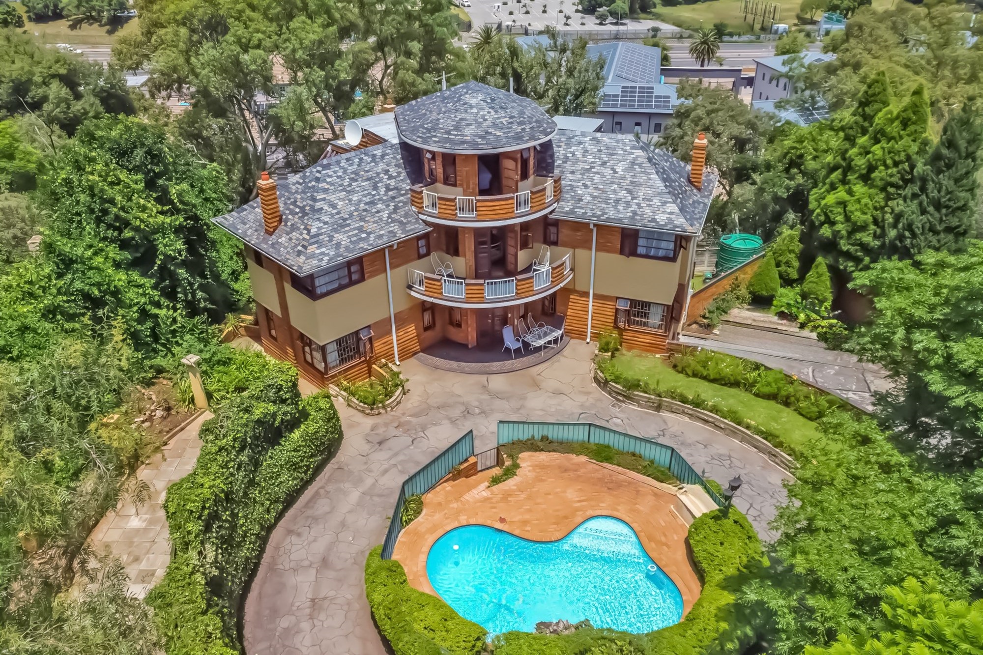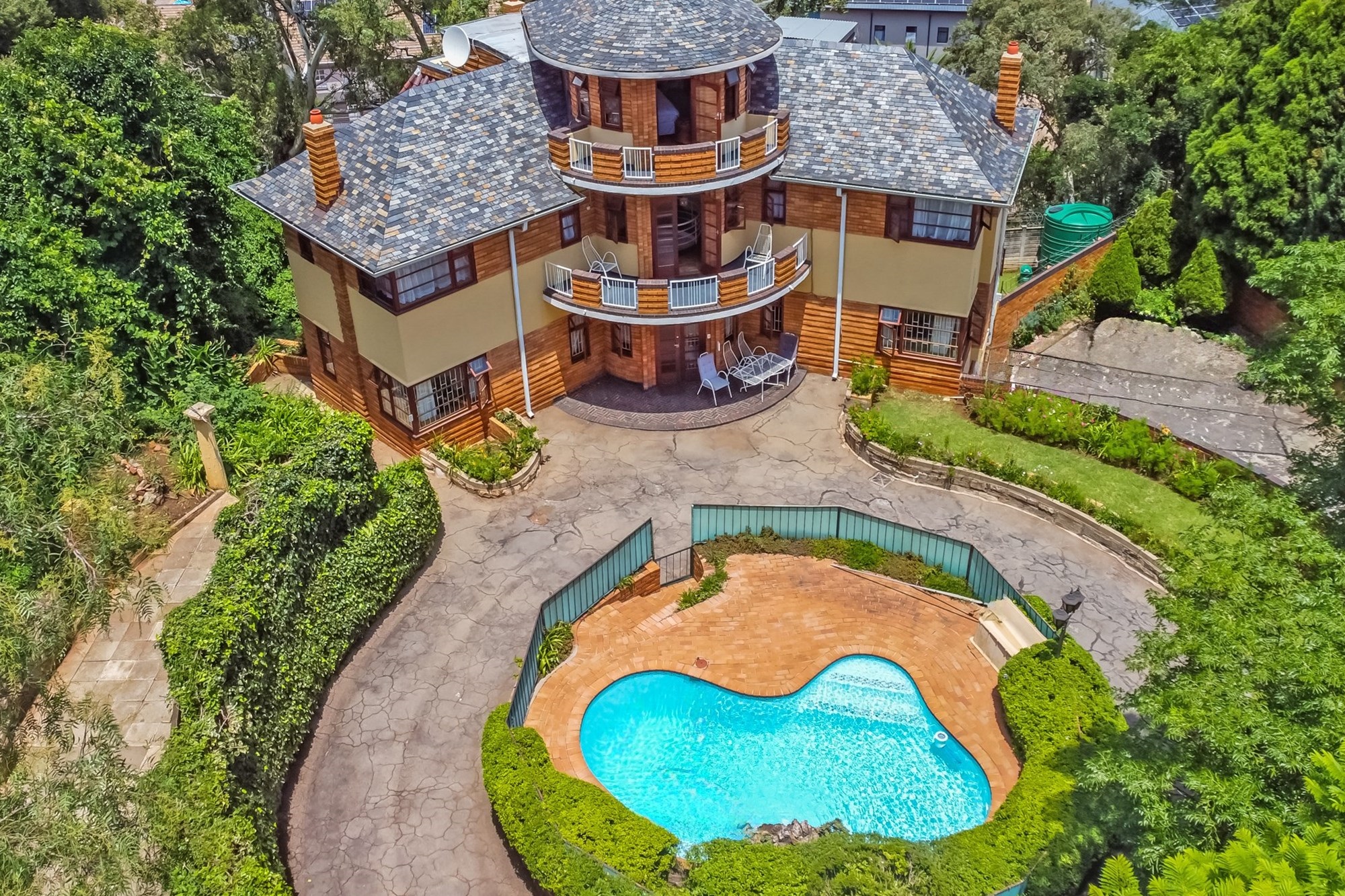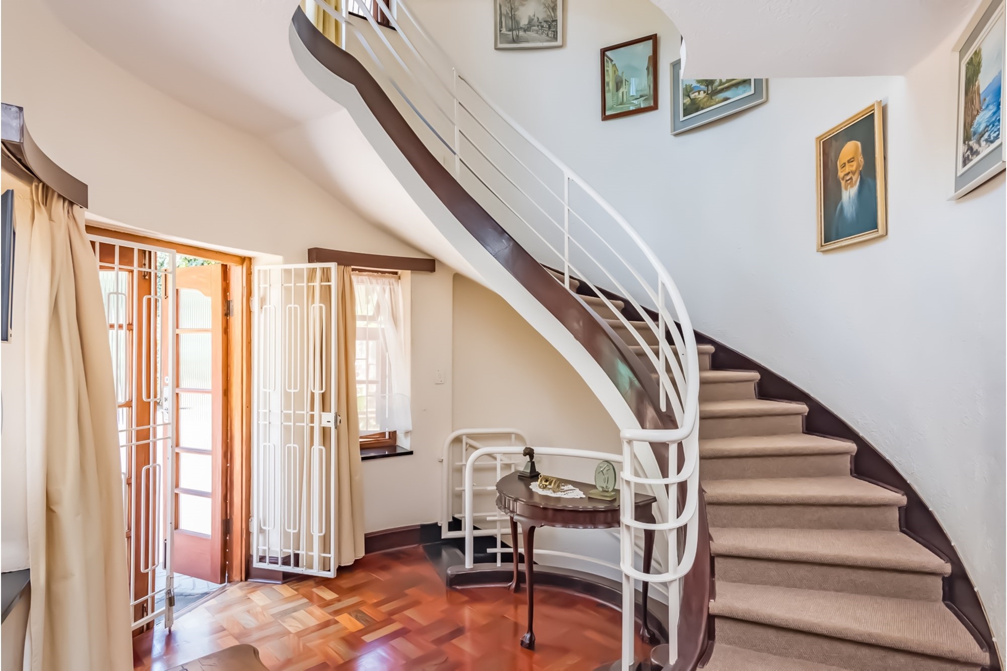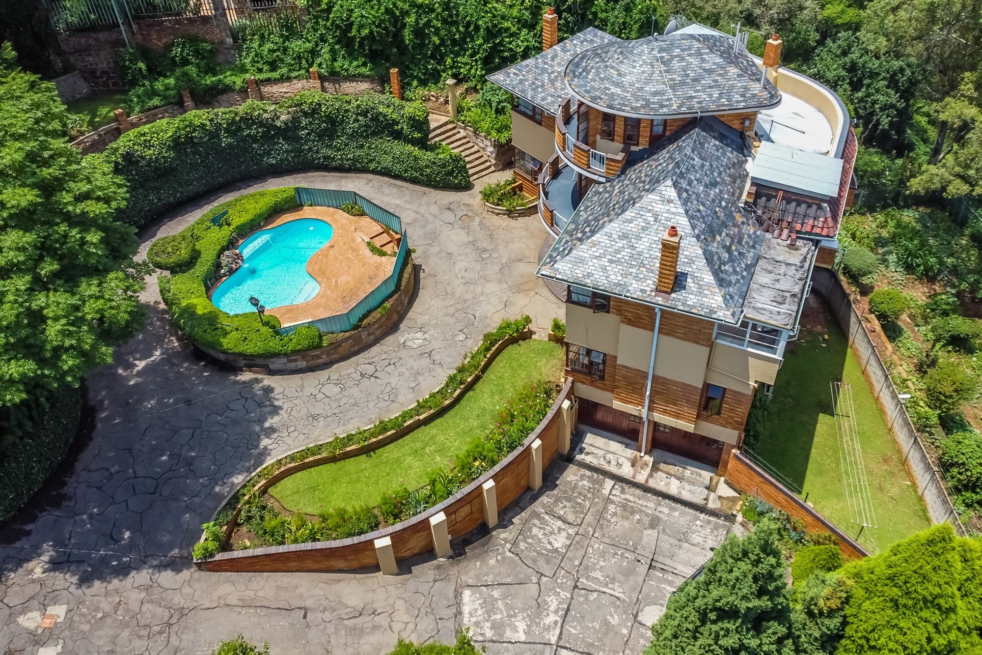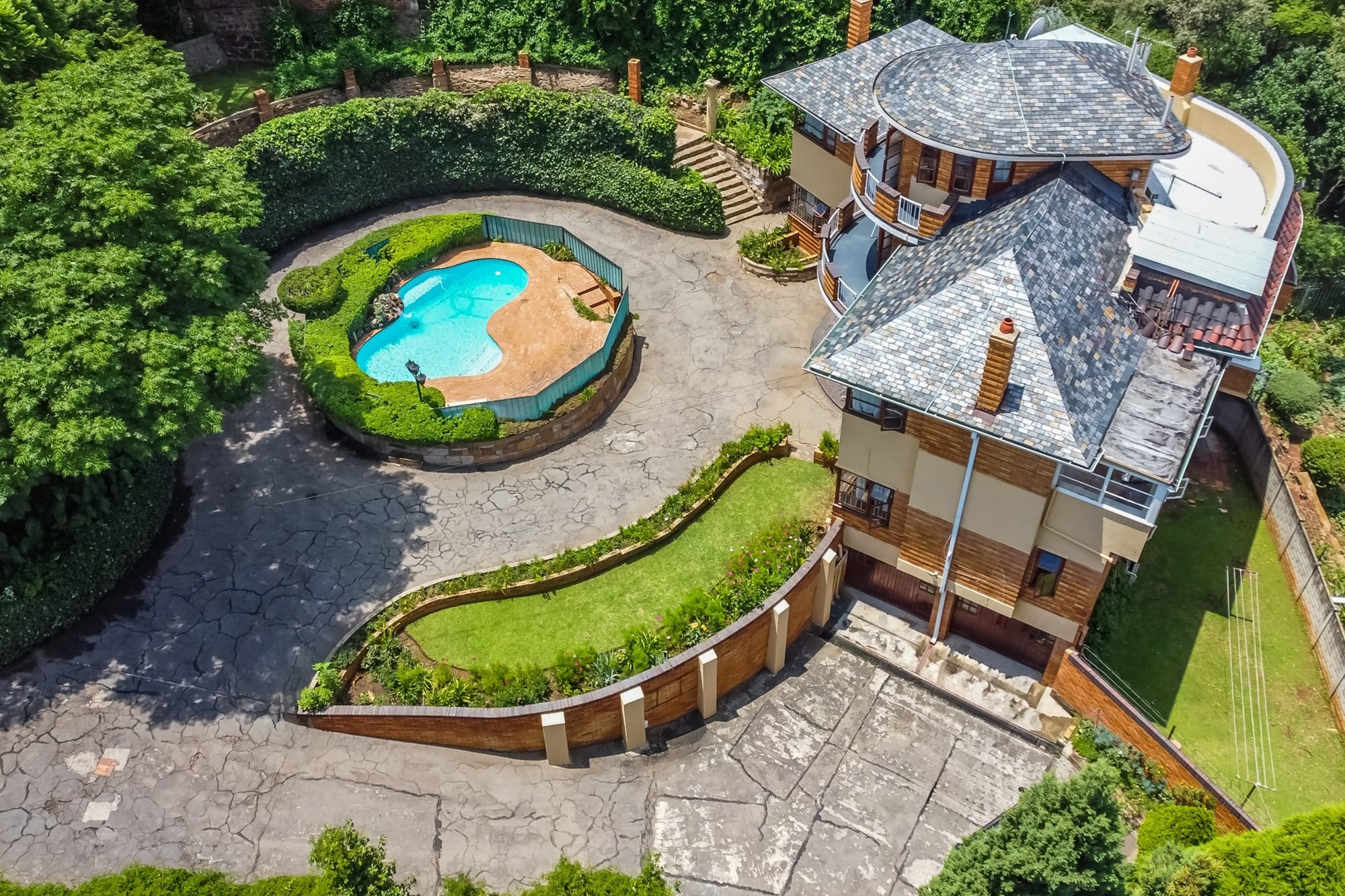 A Masterpiece of Craftsmanship in Historic Parktown Step into a bygone era with this extraordinary home, where master craftsmanship meets timeless elegance. Nestled in the prestigious and historic Parktown, this stunning residence, built in 1935, is a rare gem that has been meticulously preserved and remains in impeccable condition. Crafted by a renowned master builder for himself, the home has only changed hands twice, maintaining its unique historical charm and stature. Upon entering, you are greeted by a grand spiral staircase and exquisite parquet flooring, setting the tone for the home's elegant design. The custom carpentry and cabinetry throughout are truly extraordinary, all in pristine condition, reflecting the quality and attention to detail that defined an earlier age of construction. The home offers a thoughtful and spacious layout across three levels. The lower level features four inviting reception rooms, a guest cloakroom, and a well-appointed kitchen, while the upper levels boast four generously sized bedrooms and two full bathrooms. Expansive balconies on both the south and north sides offer panoramic views of Johannesburg, including the beautifully landscaped terraced gardens and a one-of-a-kind island swimming pool, creating a serene and private retreat. At the basement level, the property includes a convenient double lock-up garage with direct access to the home—an exceptional feature for its time. Contemporary security systems, including cameras and beams, ensure peace of mind in this historic home. Additional highlights include ample storage space, staff accommodation, and storerooms—all thoughtfully integrated into the property. This exceptional residence offers a rare opportunity to own a piece of Johannesburg's history while enjoying modern comforts and unparalleled beauty.