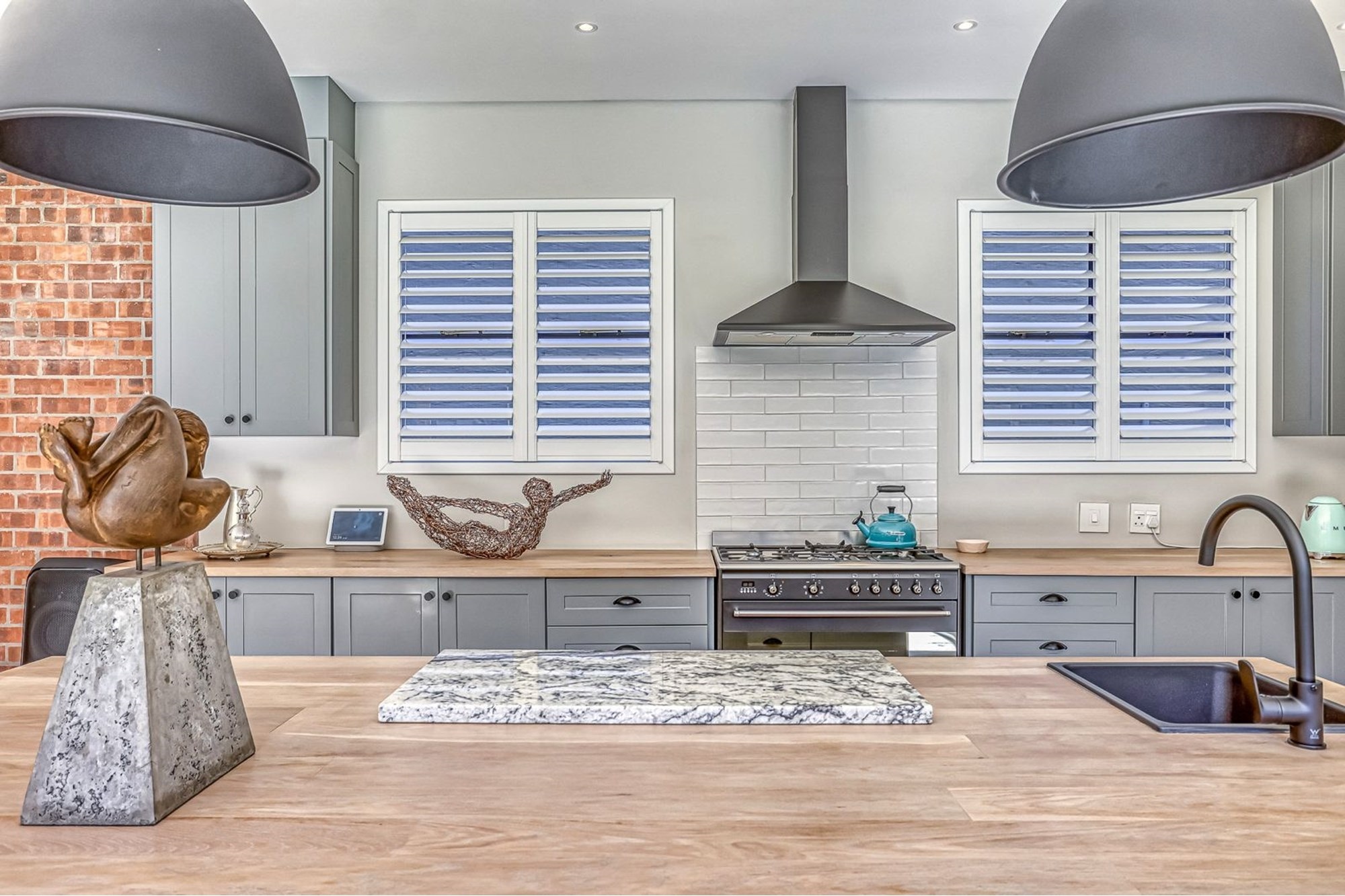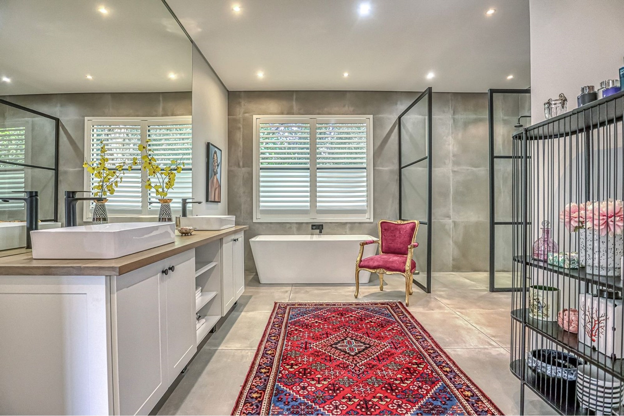 Gas geysers (2x high-pressure), Municipal piped gas for SMEG stove, geysers & heater, 5kW Inverter with battery backup,15kVA Bundu Power gas generator, 2500-litre JoJo tank with high-pressure German pump, Automated irrigation system, Plantation shutters throughout