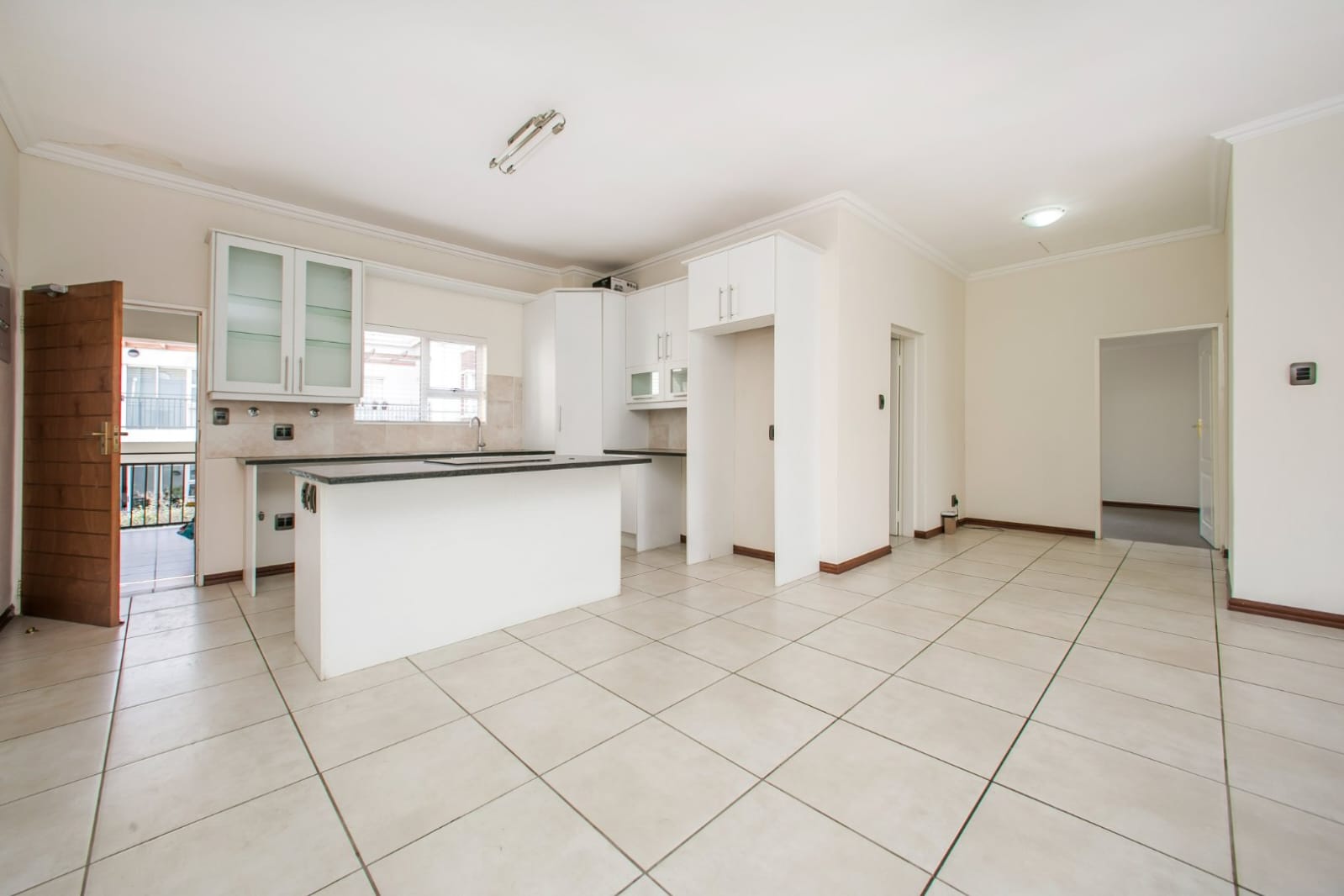 Positioned directly opposite Zoo Lake and within walking distance of the Johannesburg Zoo, this residence stands in one of The Parks’ most enviable locations. A generous open-plan living and dining area extends onto a covered patio, while the contemporary kitchen, equipped with a centre island, granite countertops, a pantry, serves as a refined focal point.