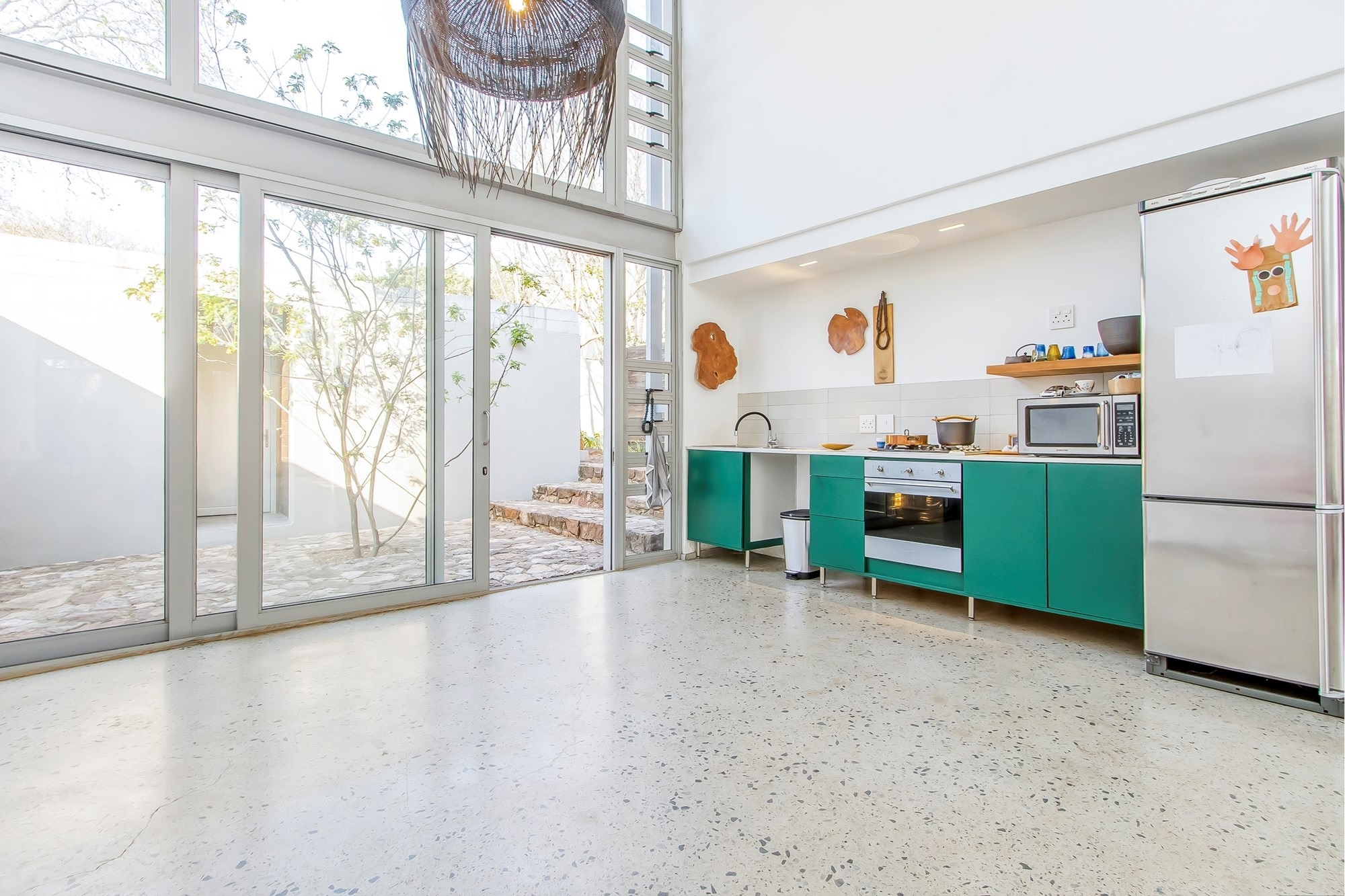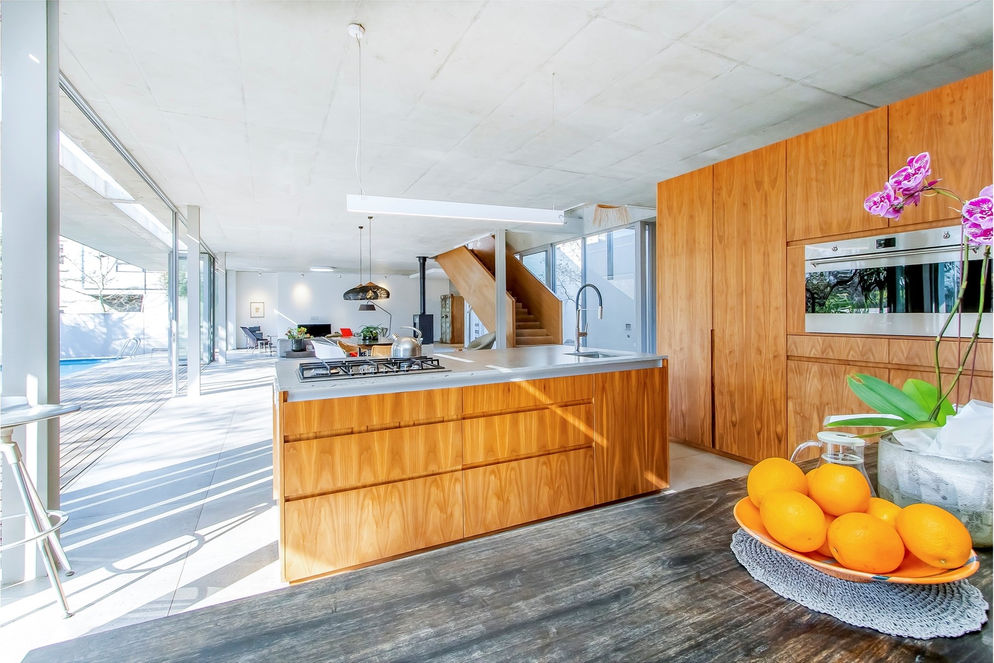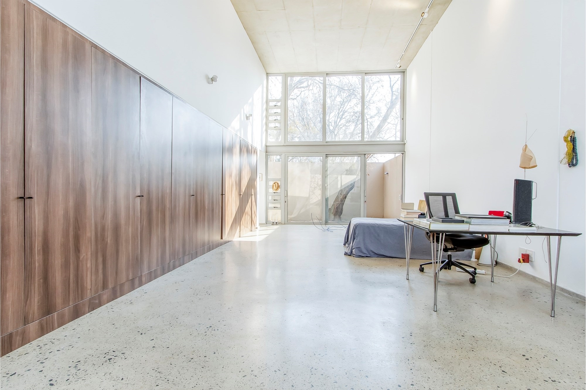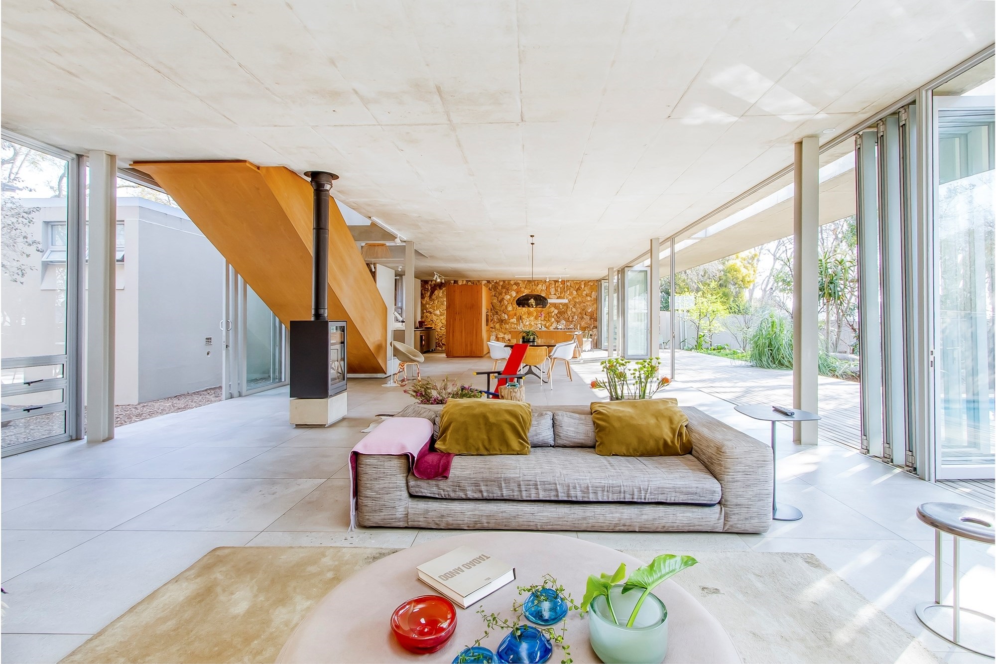 The versatile, double-volume 126 sqm studio/cottage, with its own entrance, double garage and enclosed courtyard, offers endless possibilities — a private guest suite, income-generating AirBnB or rental, or a professional home office. Polished concrete floors, SMEG appliances, and the option for a mezzanine level to be added.
