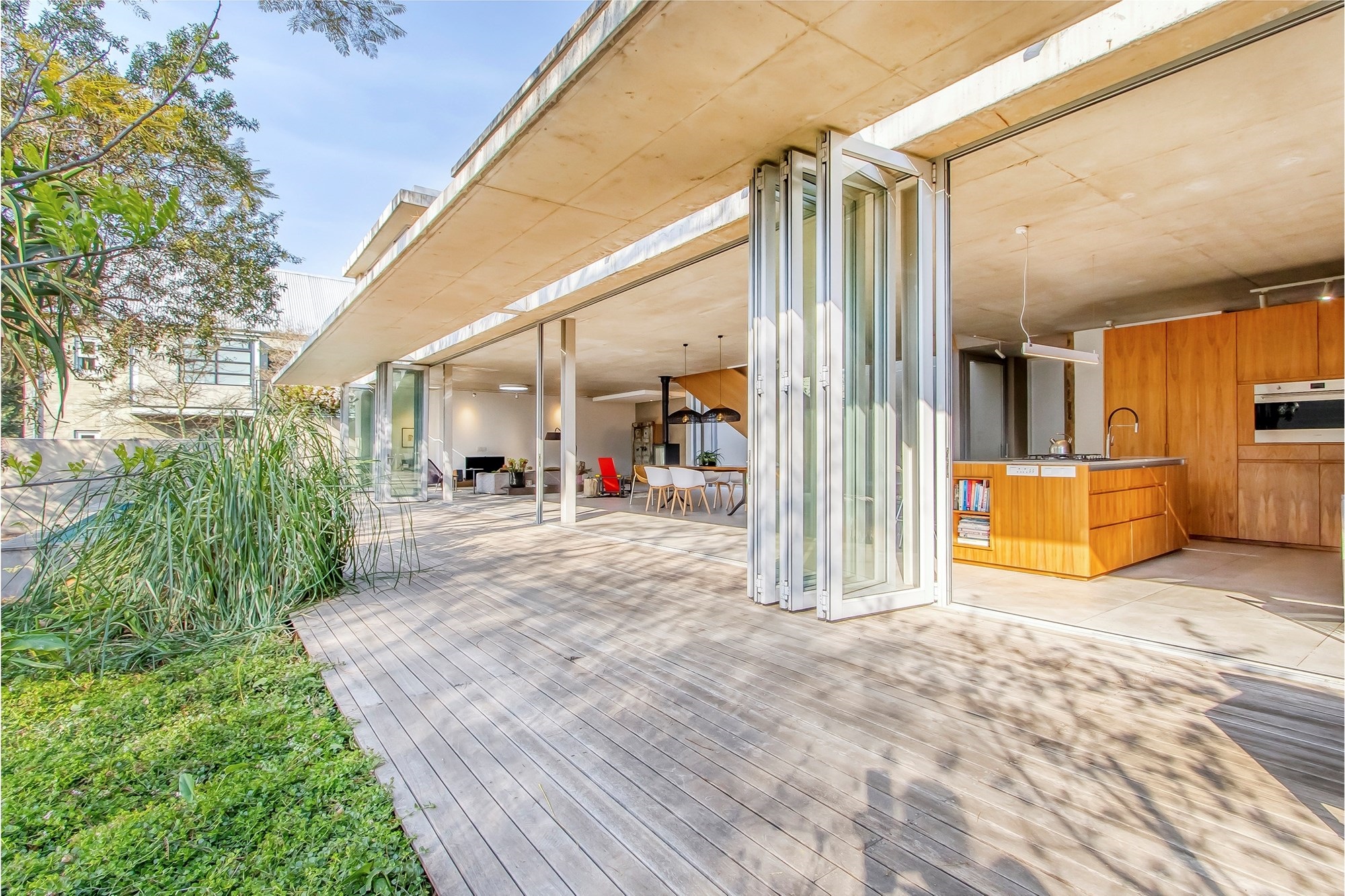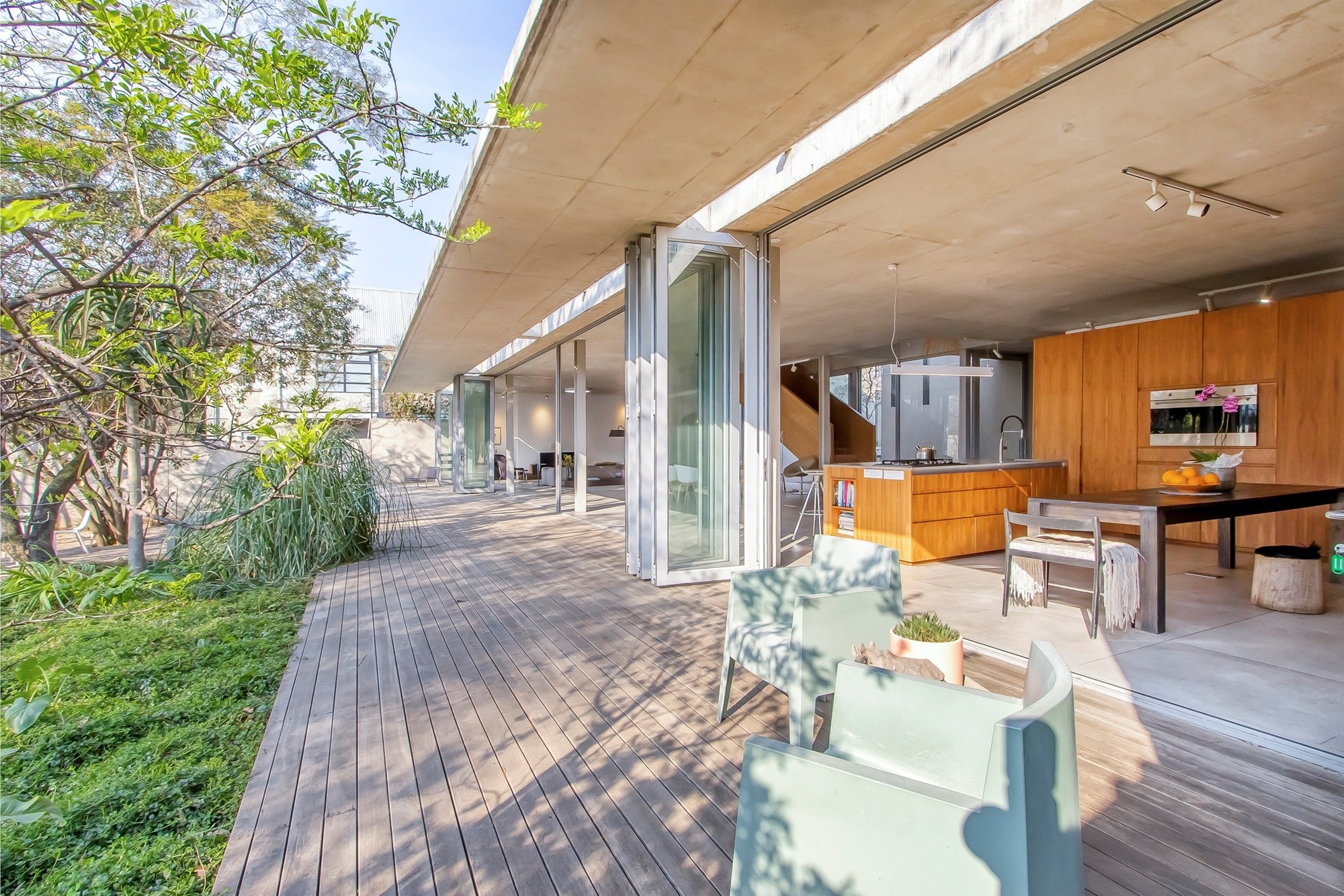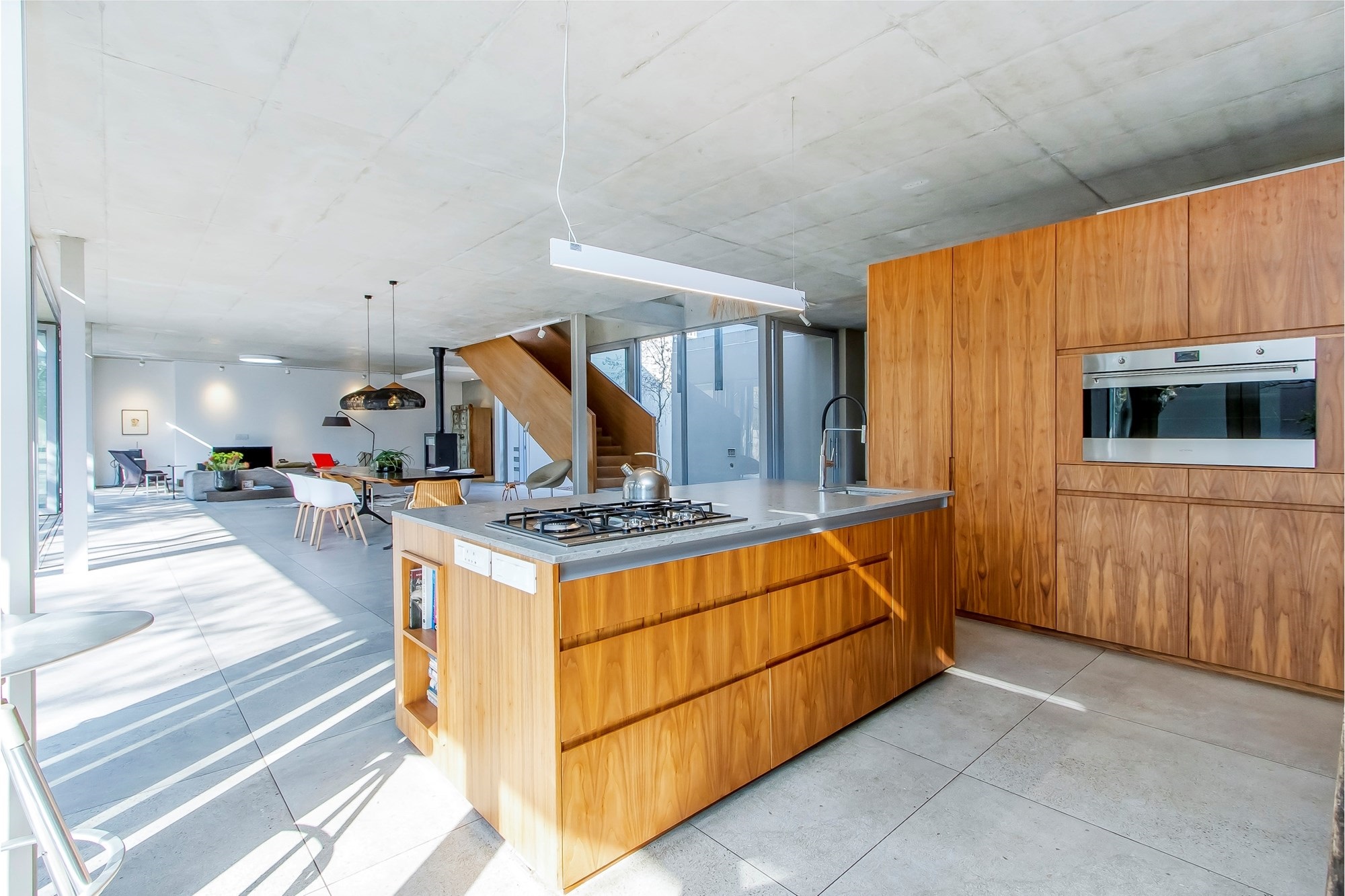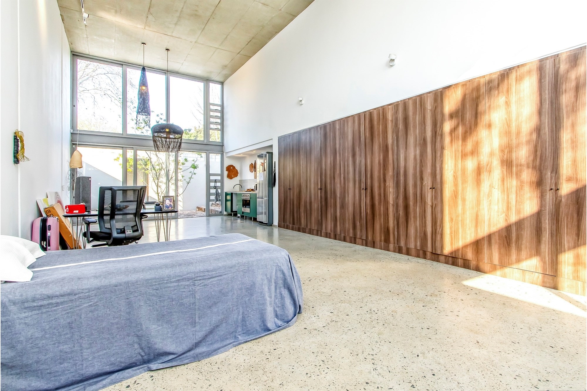 The versatile, double-volume 126 sqm studio/cottage, with its own entrance, double garage and enclosed courtyard, offers endless possibilities — a private guest suite, income-generating AirBnB or rental, or a professional home office. Polished concrete floors, SMEG appliances, and the option for a mezzanine level to be added.