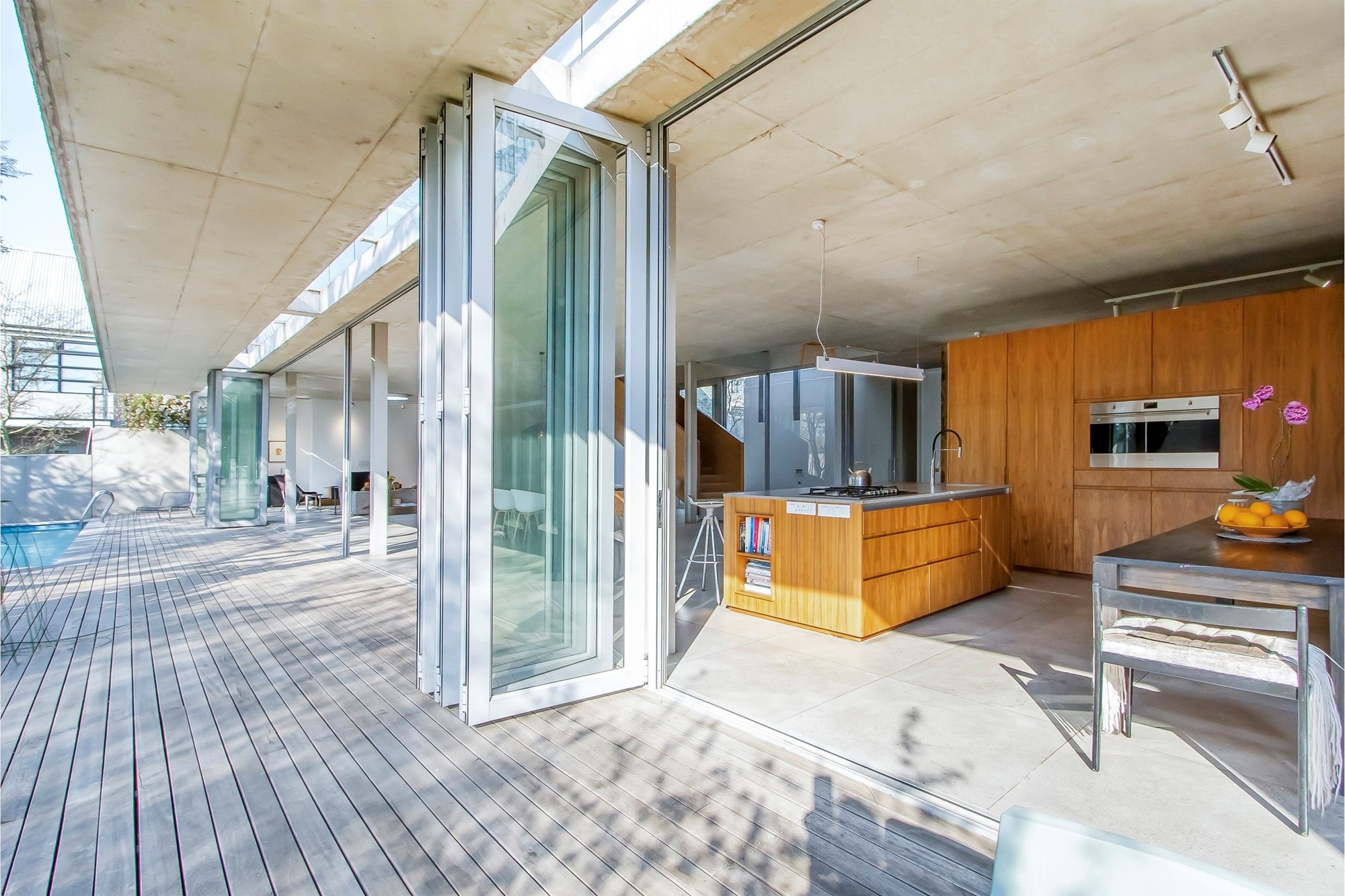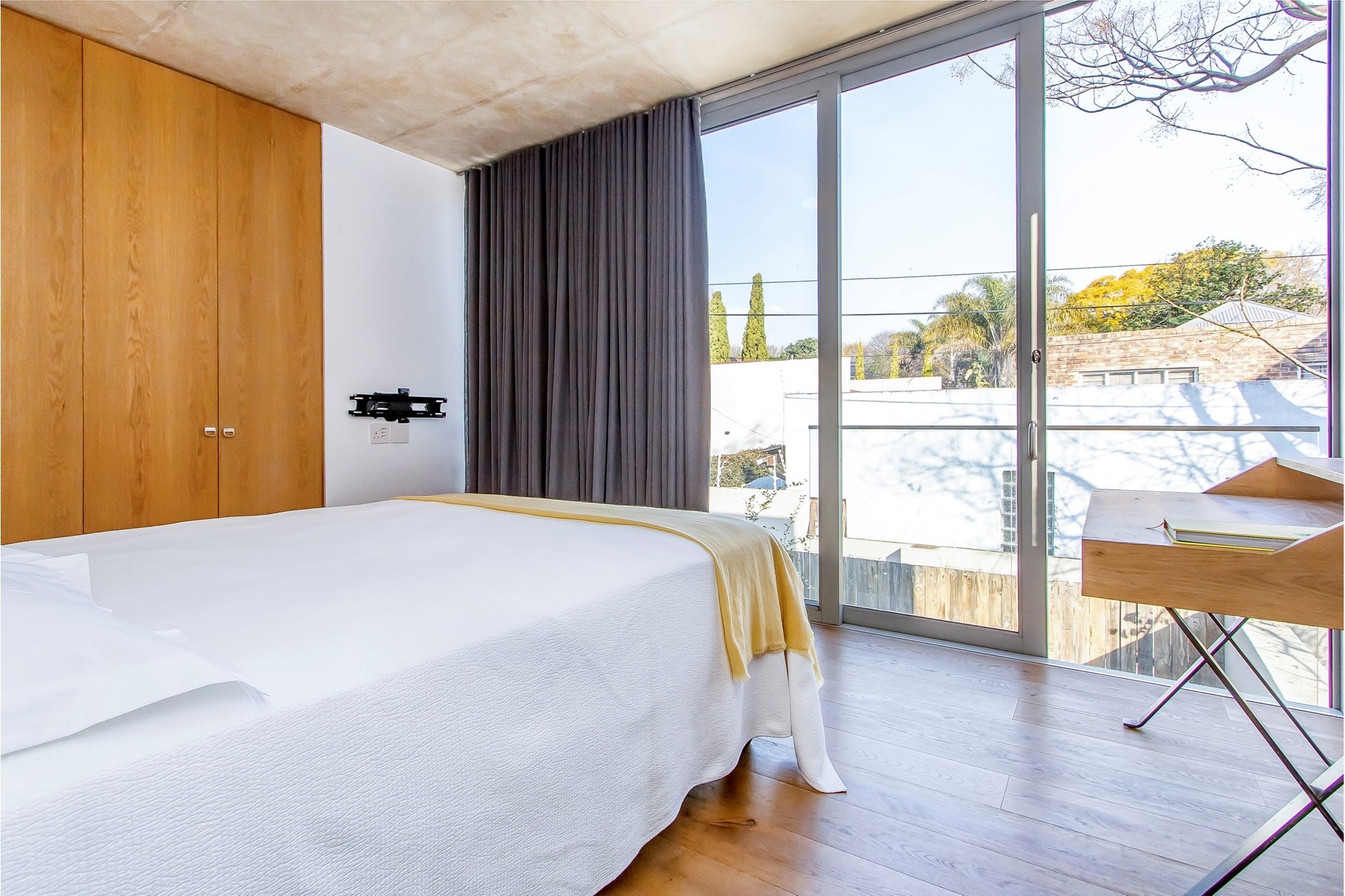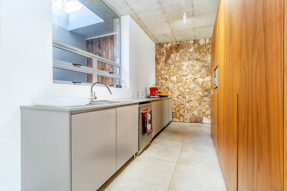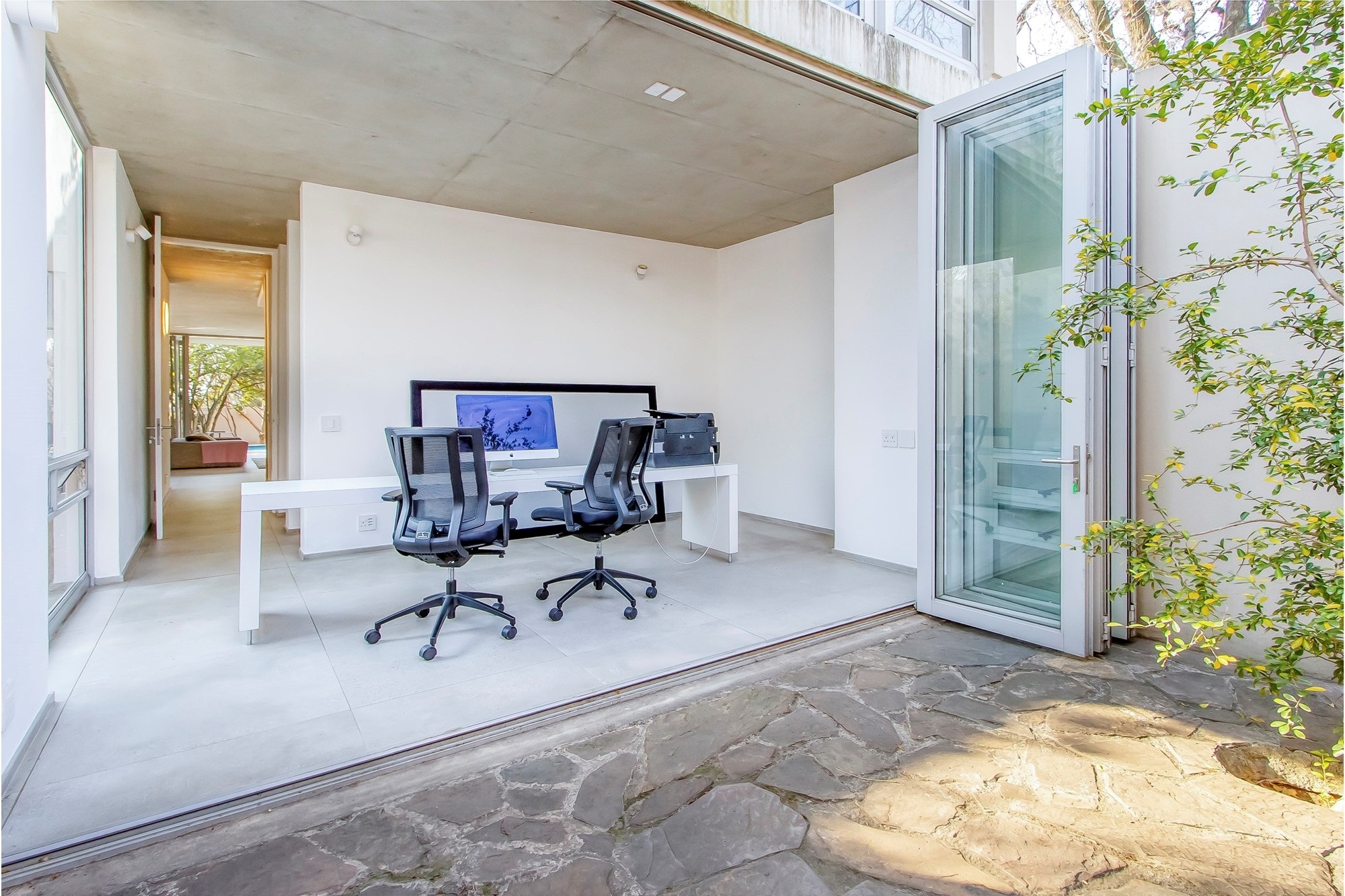 The versatile, double-volume 126 sqm studio/cottage, with its own entrance, double garage and enclosed courtyard, offers endless possibilities — a private guest suite, income-generating AirBnB or rental, or a professional home office. Polished concrete floors, SMEG appliances, and the option for a mezzanine level to be added.