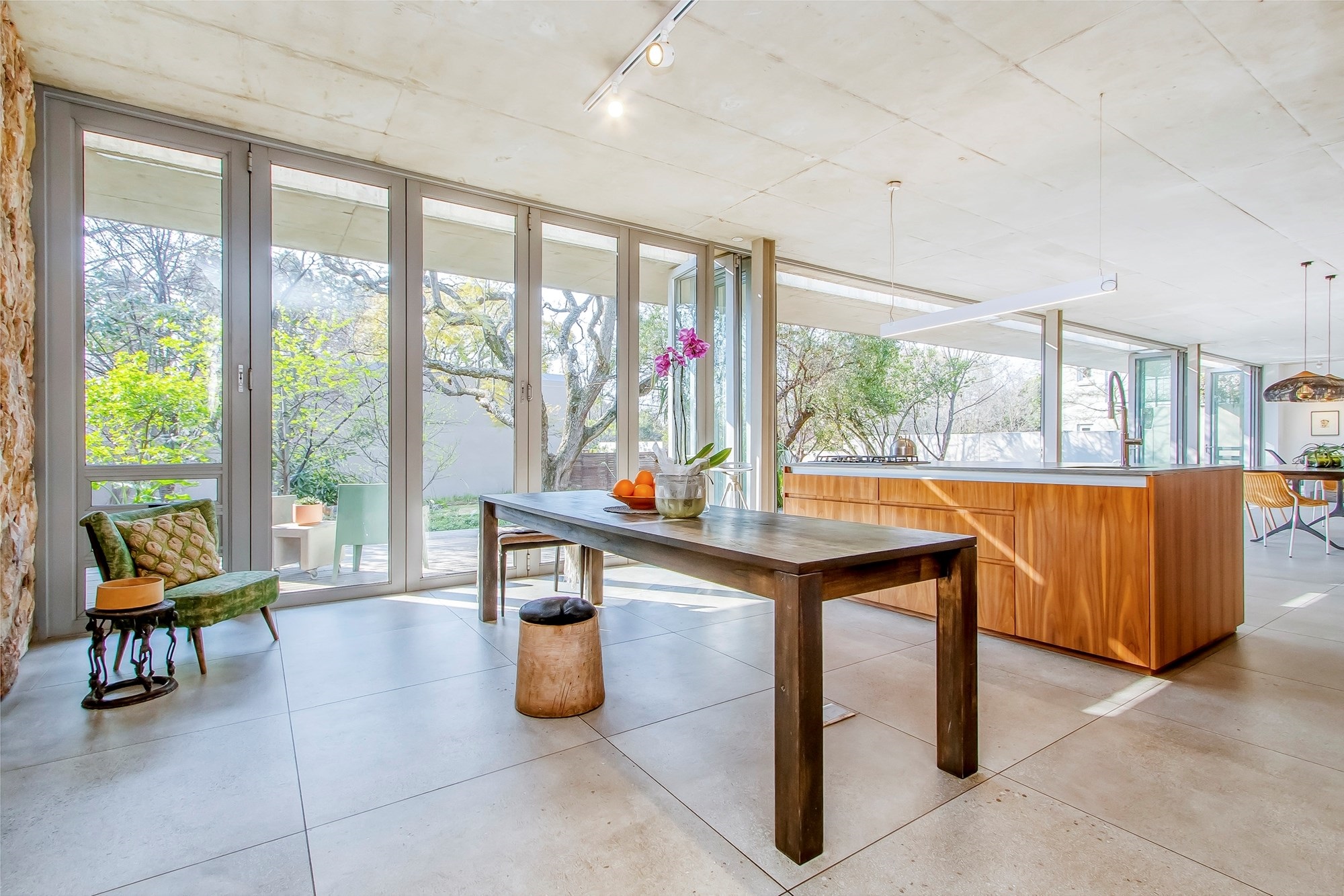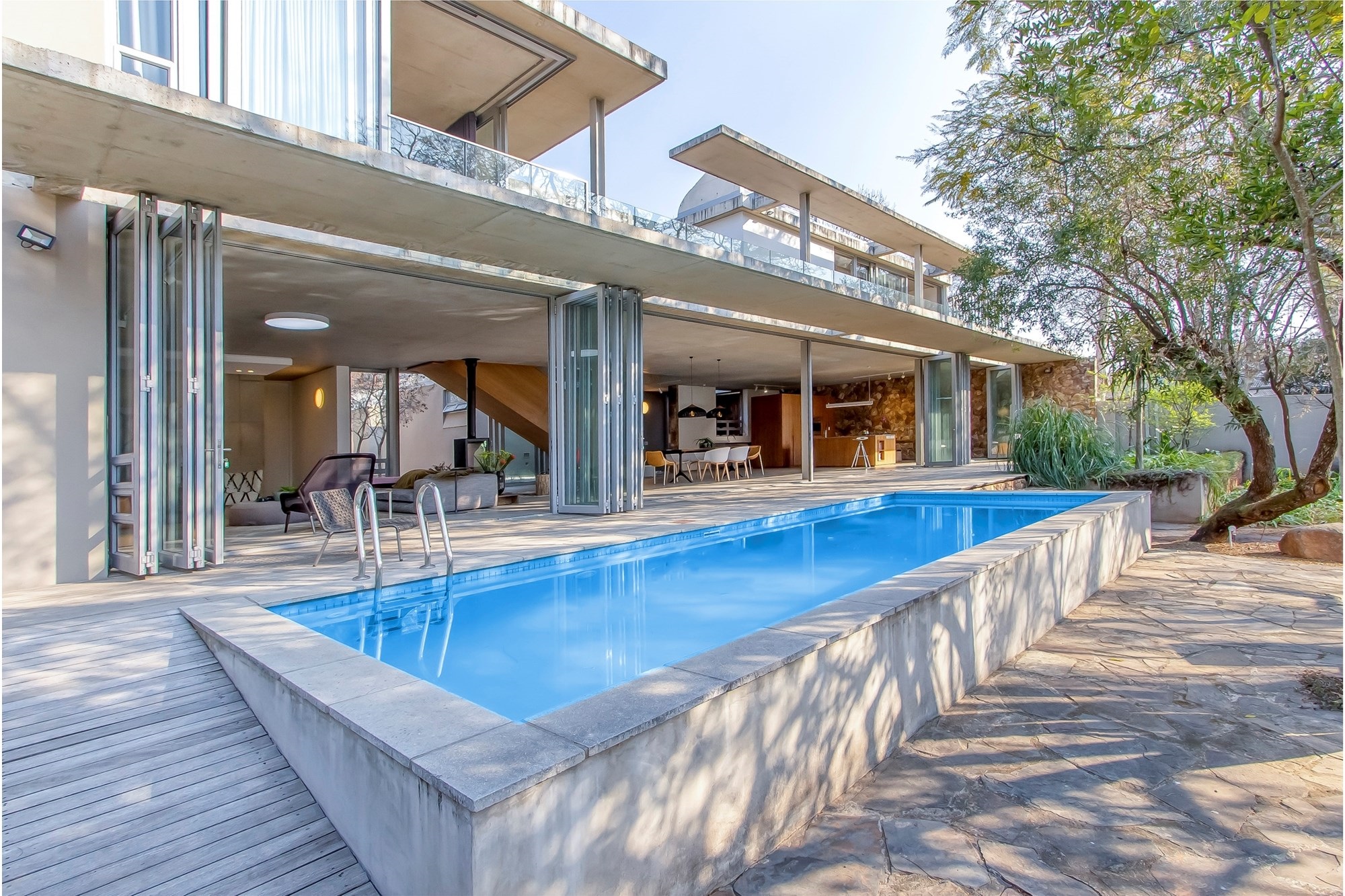 Designed by award-winning architect George Boorsma of INK Design, this extraordinary 700 sqm contemporary residence, perfectly positioned on a 1 050 sqm corner stand in the leafy, tree-lined suburb of Parkview, redefines luxury living. Set in the prestigious, family-friendly suburb of Parkview, this home offers easy access to top schools, Tyrone Avenue’s cafes and bespoke shops, and Johannesburg’s best green spaces. This is not just a home, it’s an urban sanctuary that harmoniously balances architecture, nature, and lifestyle.