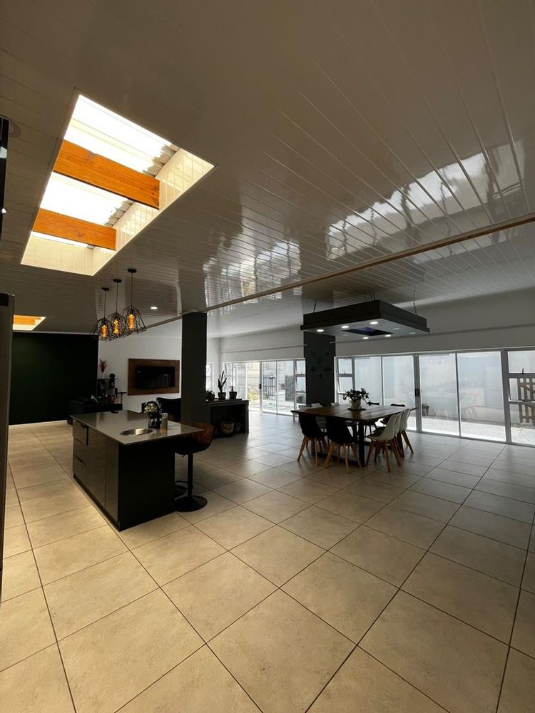 Step inside to find a massive open-plan kitchen, dining area, and lounge that seamlessly blend together to create an expansive space perfect for both entertaining and everyday living. The kitchen is a culinary dream, equipped with top-of-the-line finishes and ample storage, complemented by a massive scullery to accommodate all your needs.