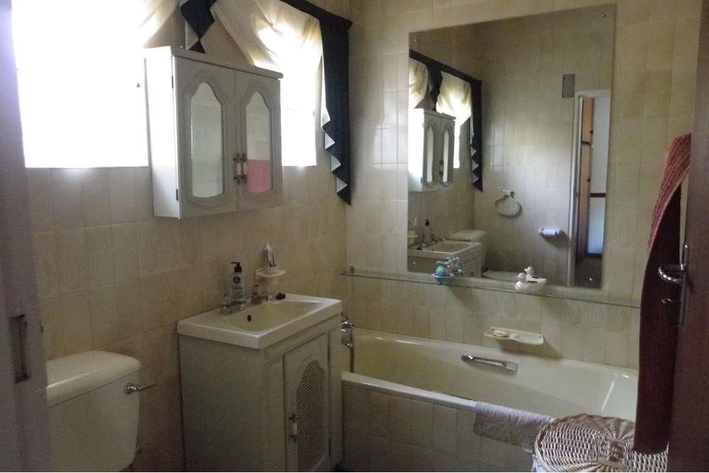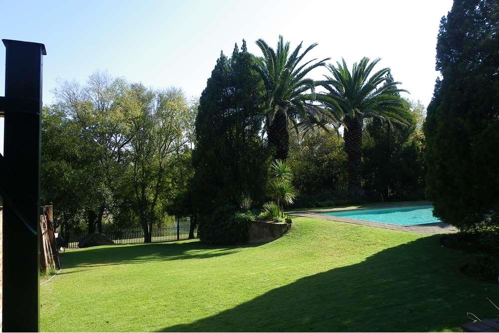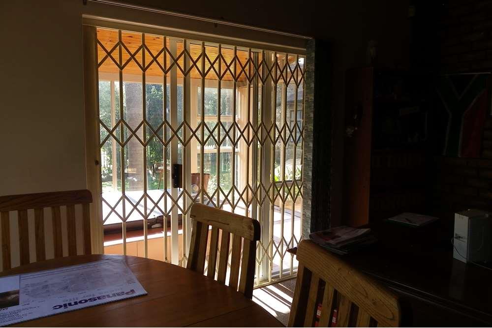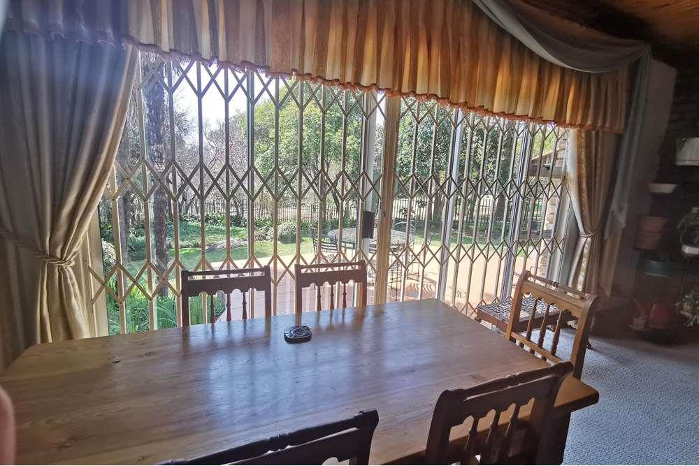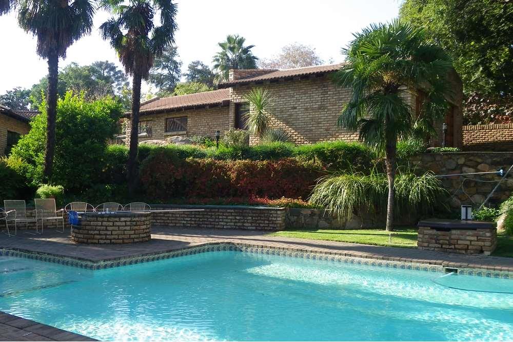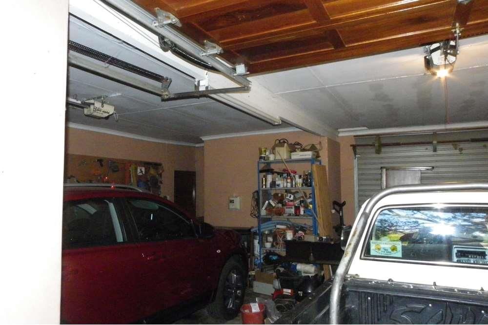 Outside, indulge in your private oasis - a sparkling swimming pool surrounded by a beautifully maintained garden. The property also features a veranda, two spacious garages with automatic doors, providing enough parking space for up to seven vehicles. Additional amenities include a braai area, a security alarm system, and a water booster with a tank for uninterrupted water supply.