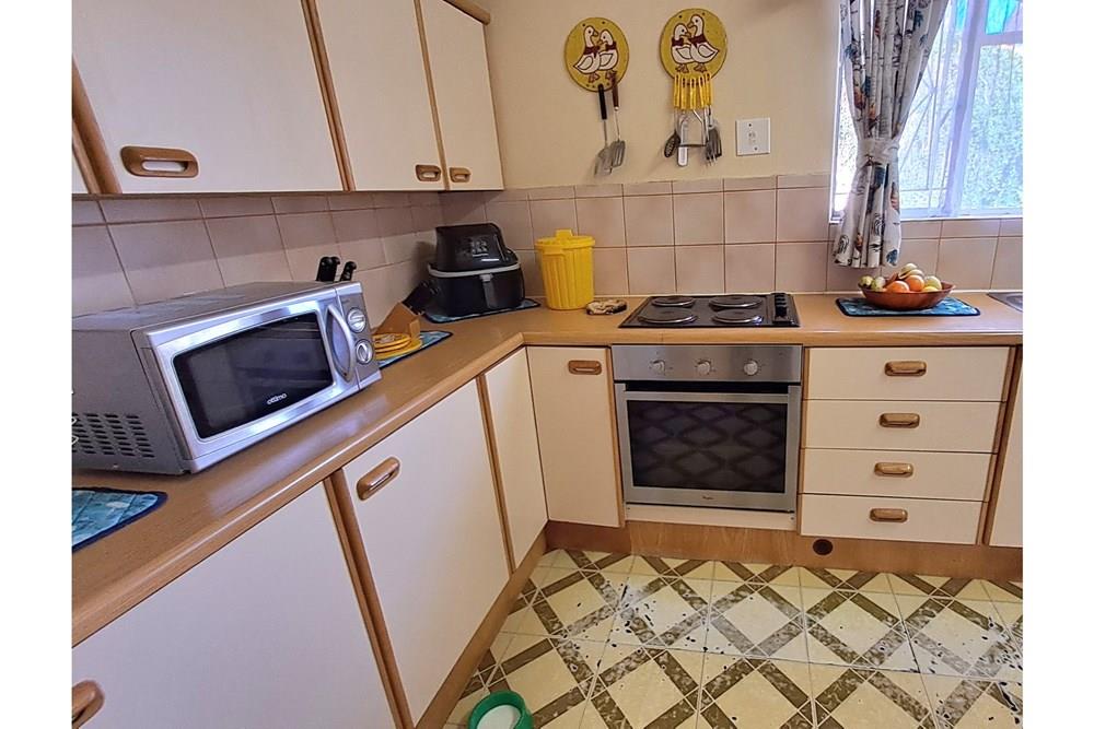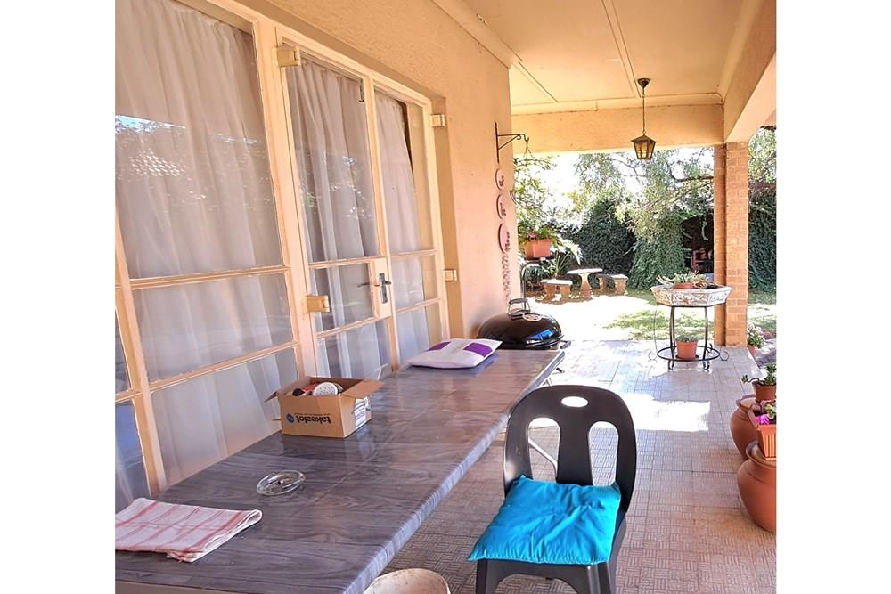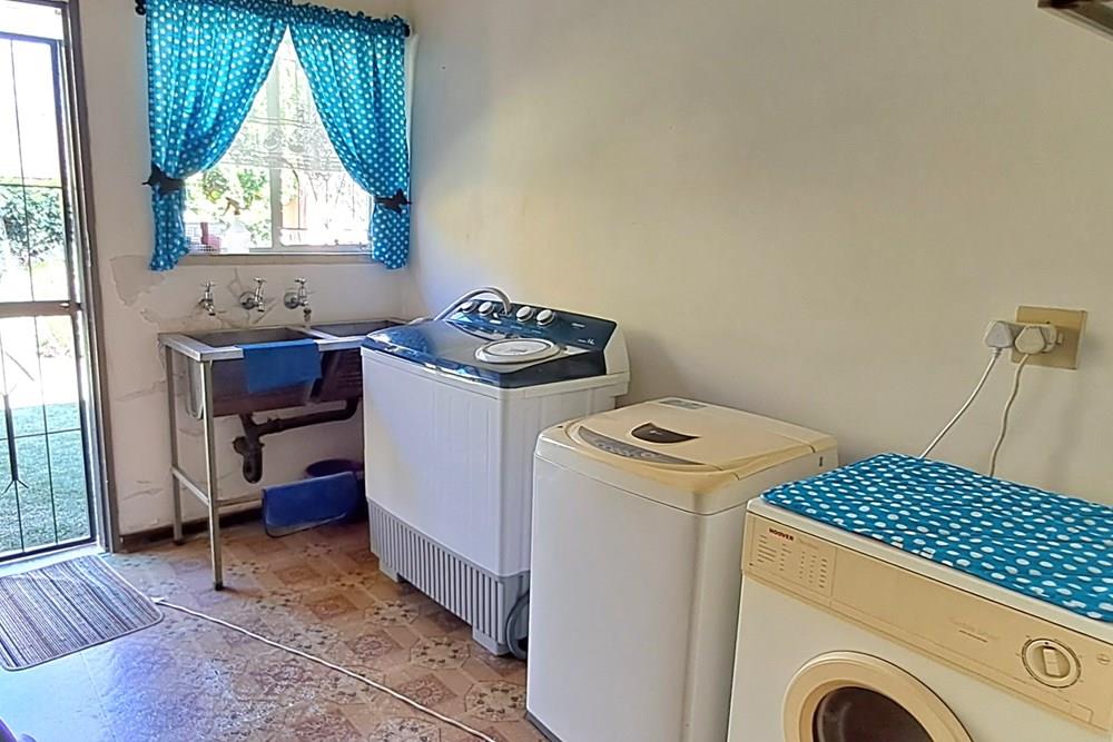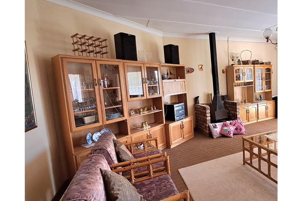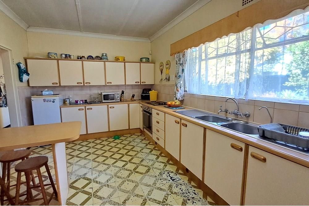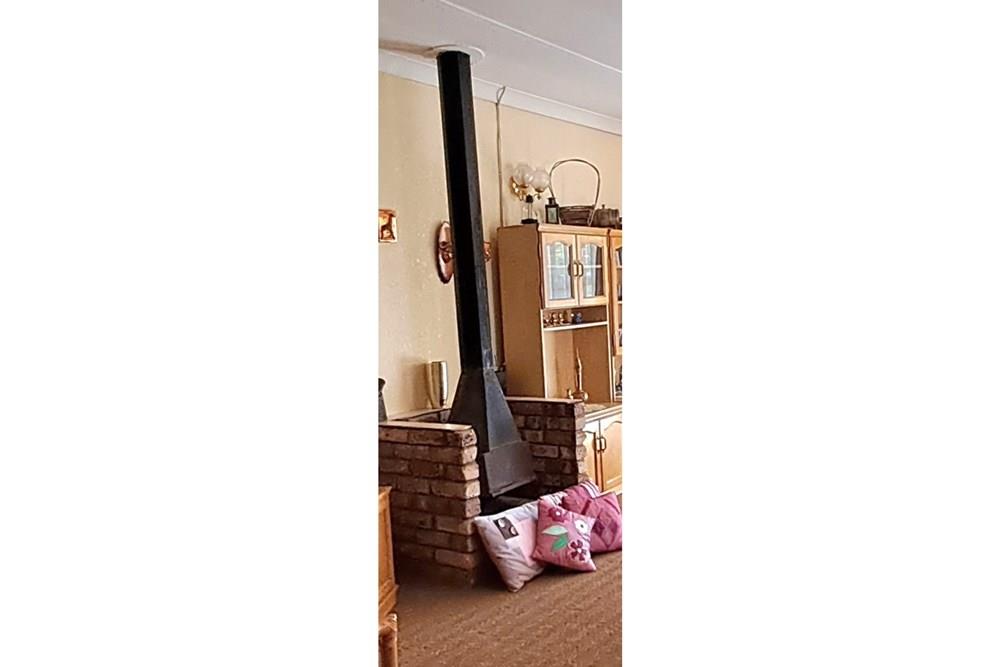 The large kitchen is fitted with melamine cupboards. The generous dining and lounge area boasts a fireplace. The expansive yard includes a Jo-Jo tank and a gas geyser.
