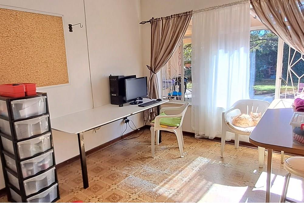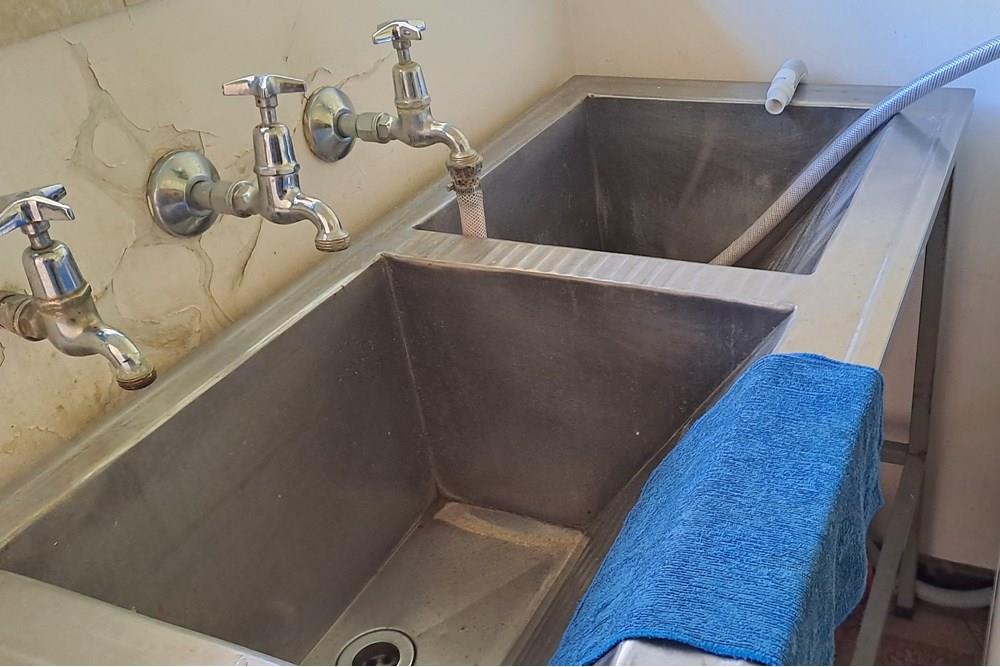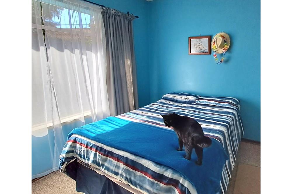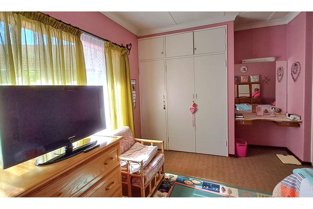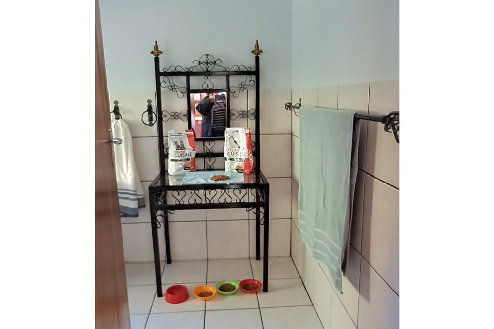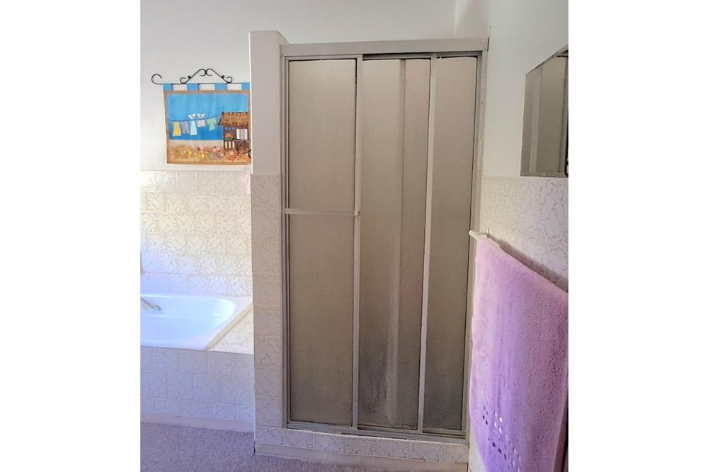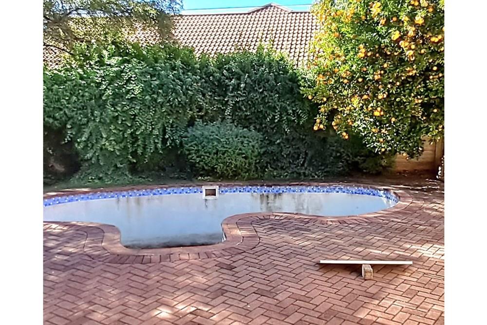 The large kitchen is fitted with melamine cupboards. The generous dining and lounge area boasts a fireplace. The expansive yard includes a Jo-Jo tank and a gas geyser.