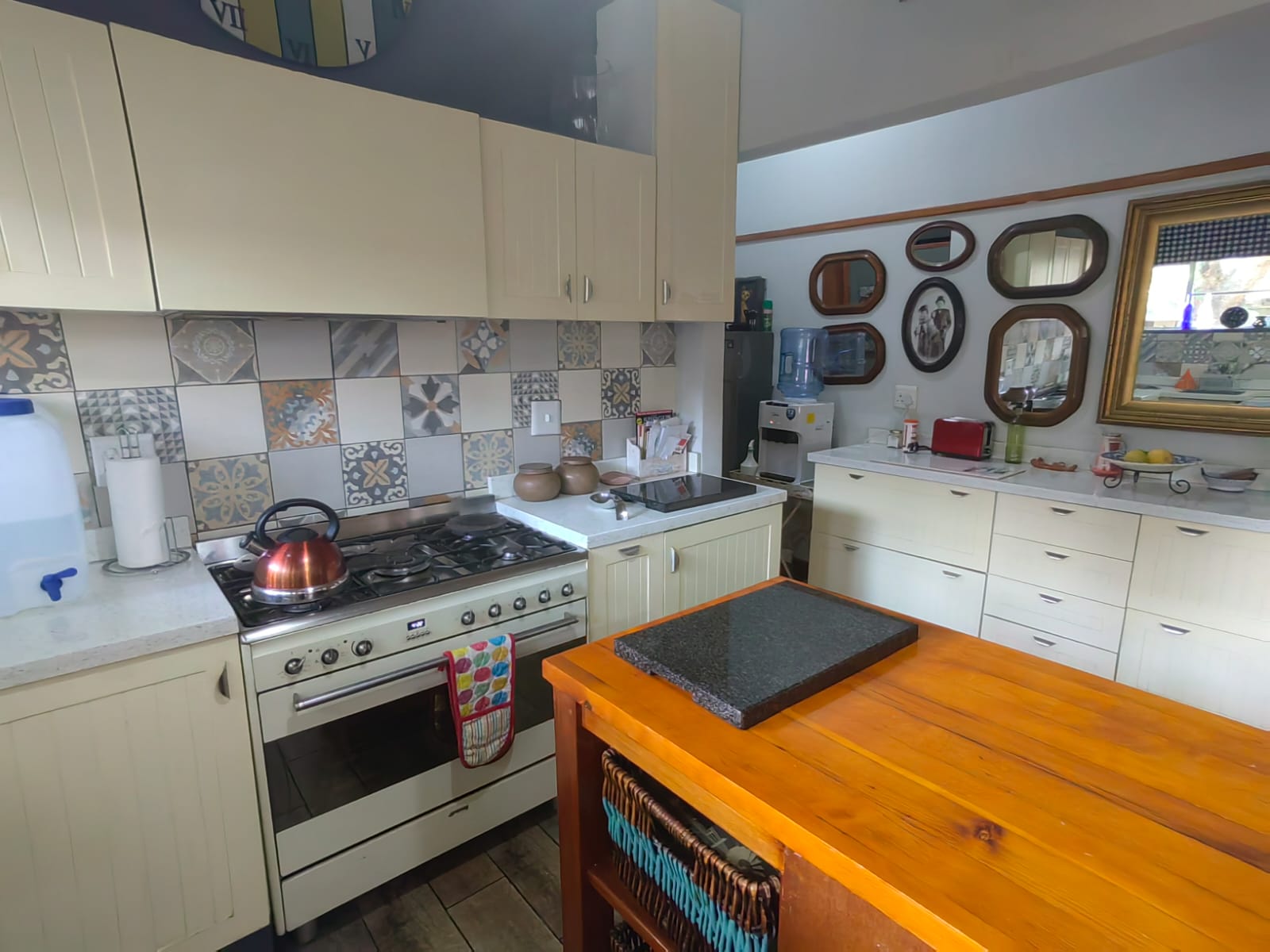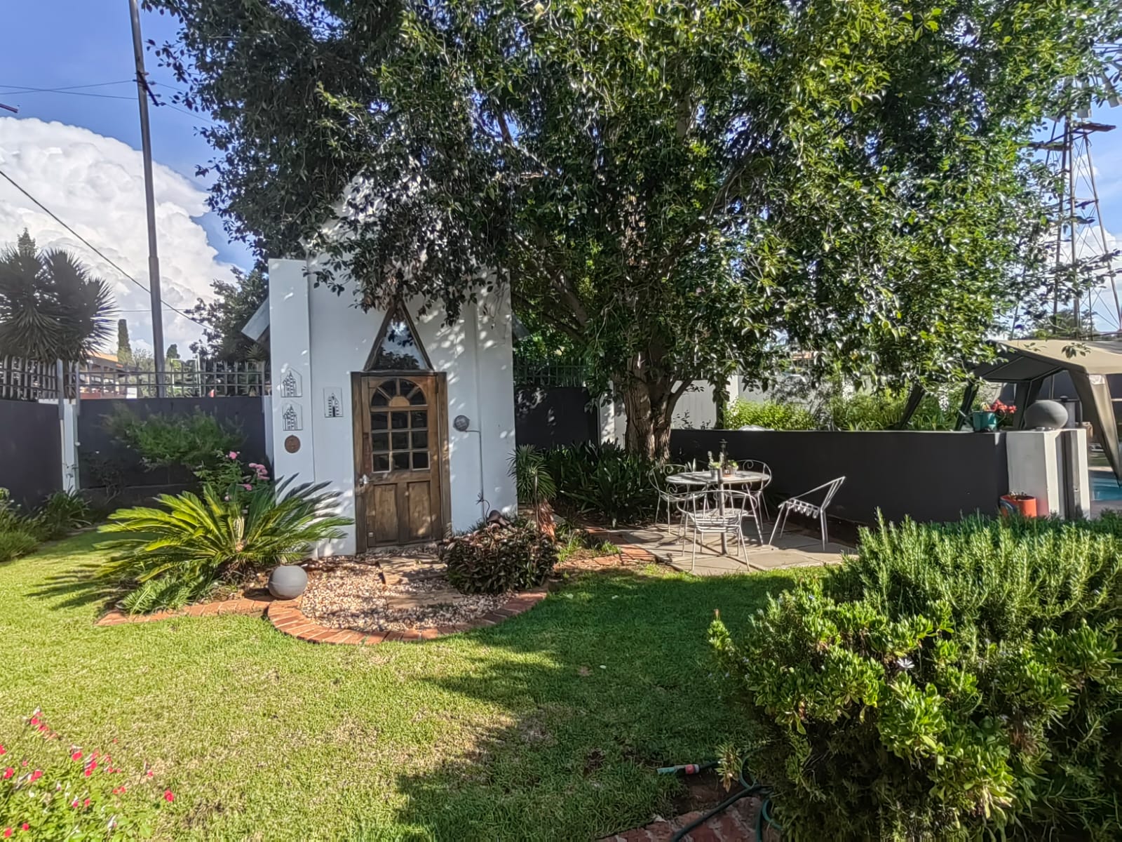 The guest suites are equipped with two 300L solar geysers, while the main house features two gas geysers. Additional amenities include a borehole and 10 solar panels connected to an 8 KVA inverter with two batteries. Lastly, there is a charming little chapel in the garden, which can be used for wedding blessings, adding an extra touch of appeal to this already impressive property.
