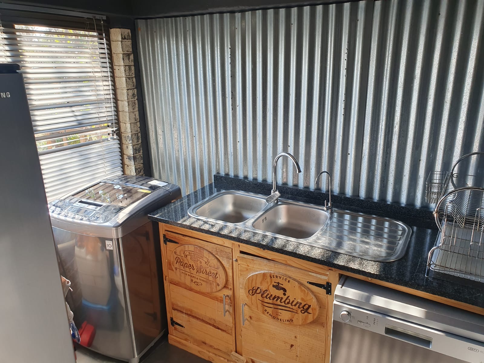 - An industrial-style kitchen that seamlessly connects to a separate scullery and laundry area