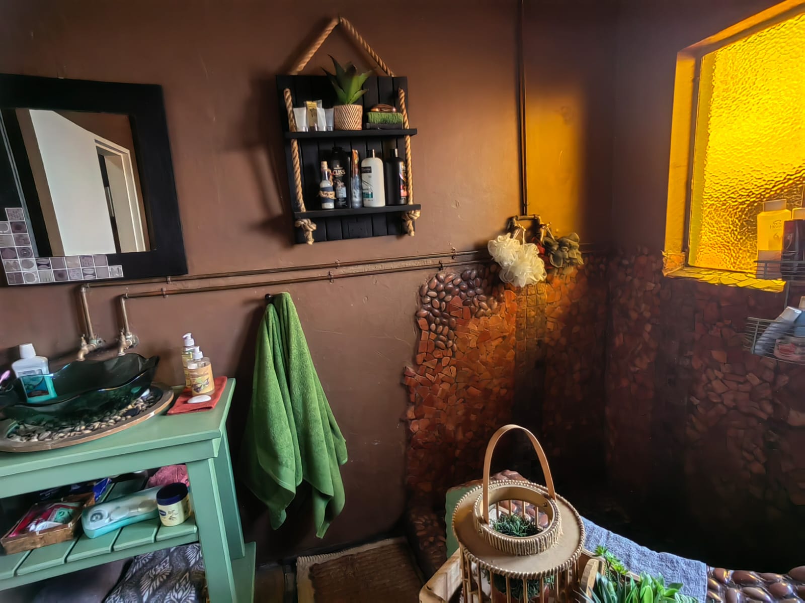 Additional amenities consist of a 5000-litre water tank with a pressure pump and prepaid electricity.