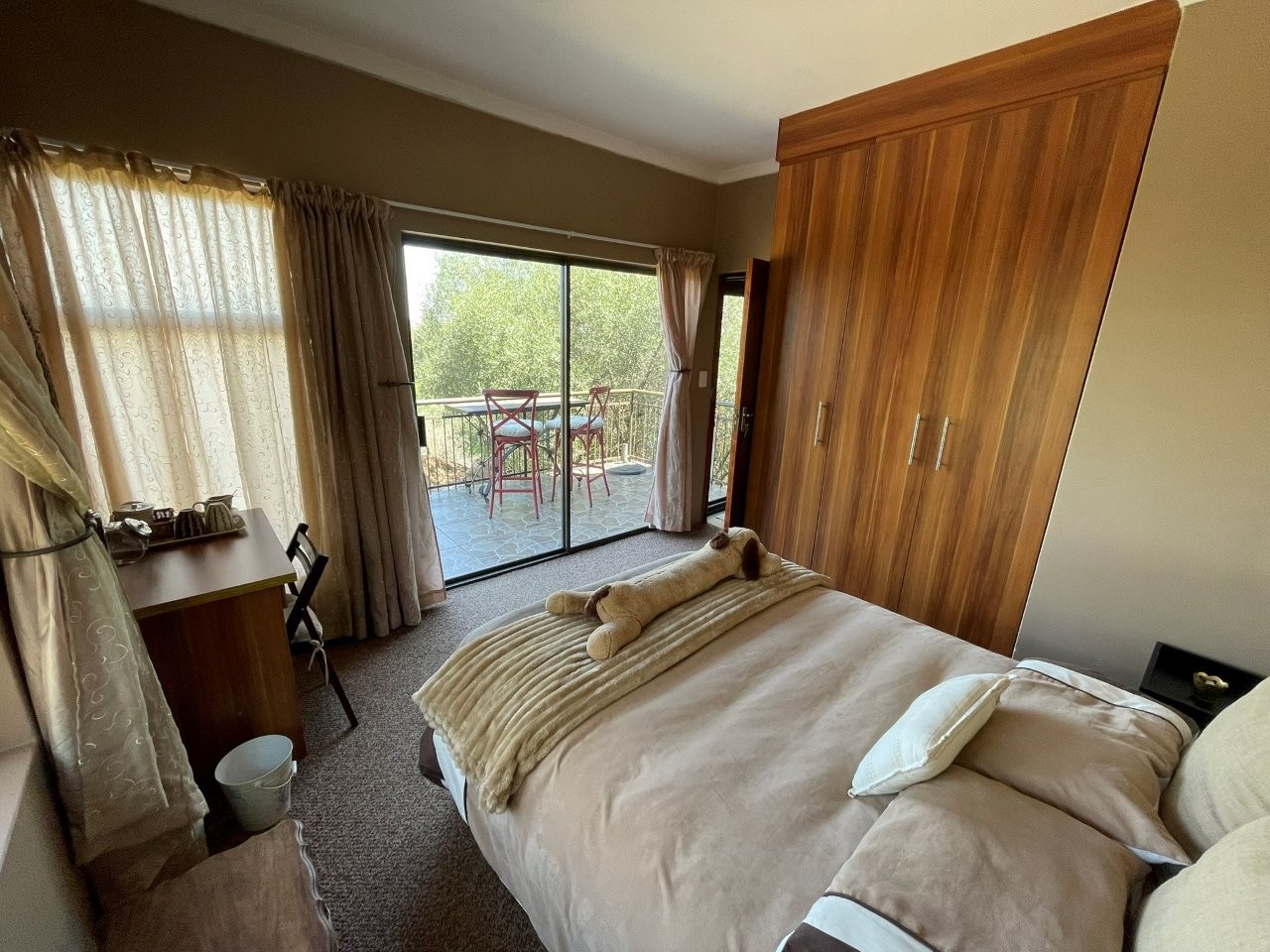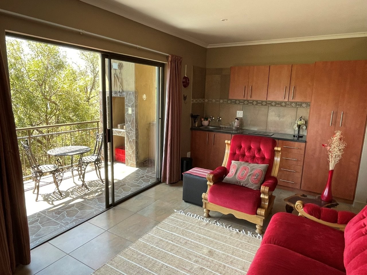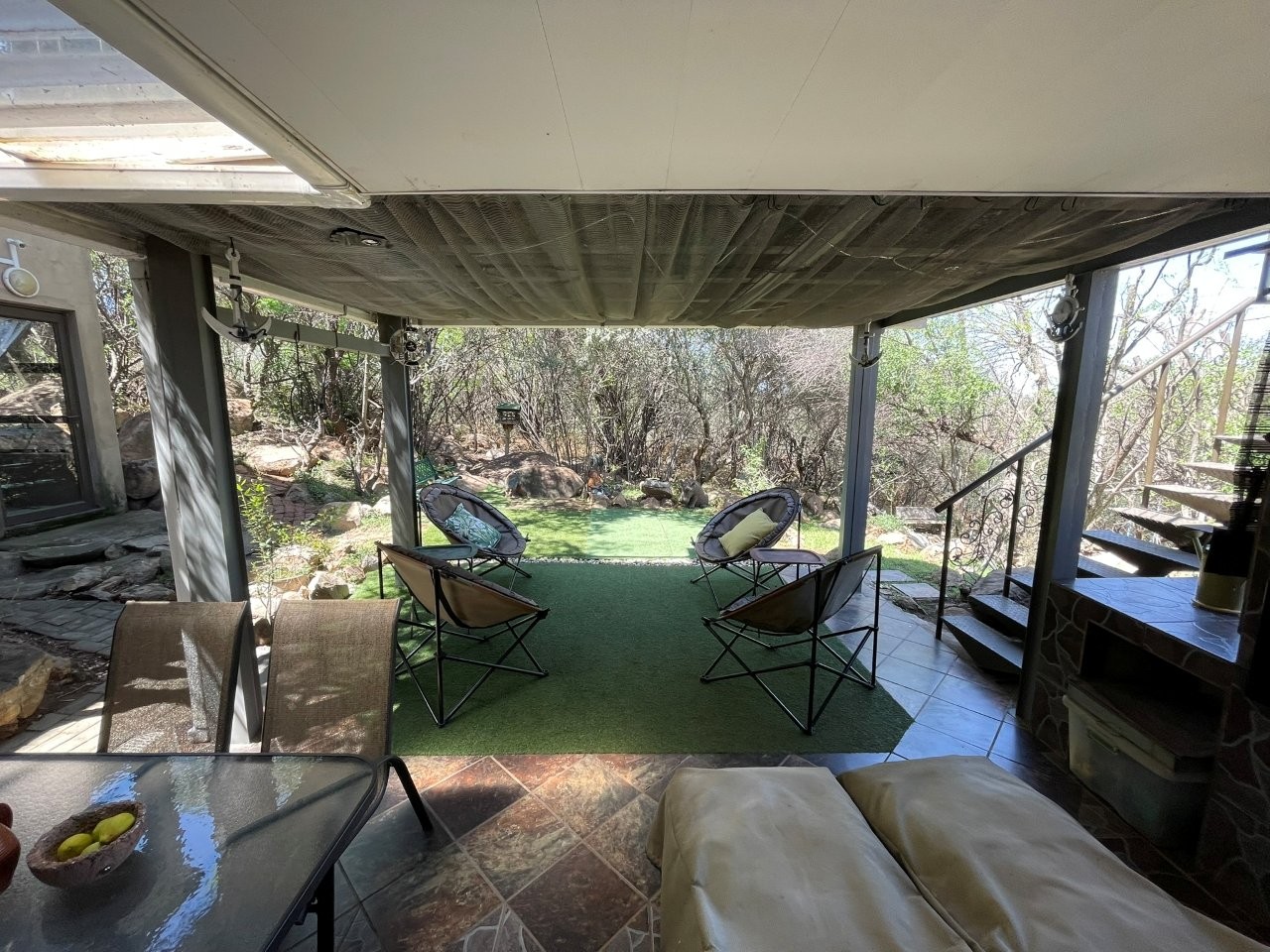 Linked to the main house is a self-contained one-bedroom apartment with a full bathroom, spacious lounge, and its own private patio with built-in braai — perfect for guests or extended family.