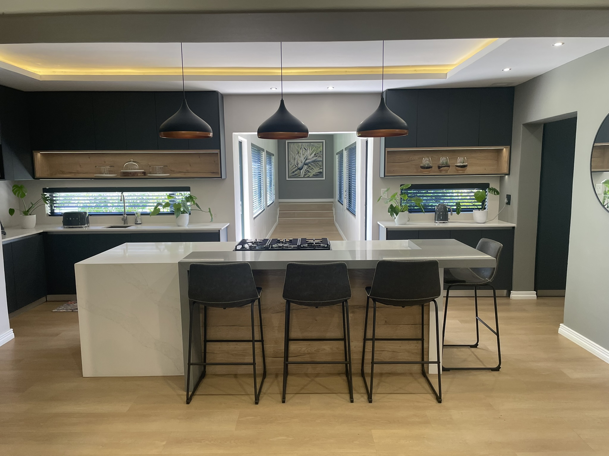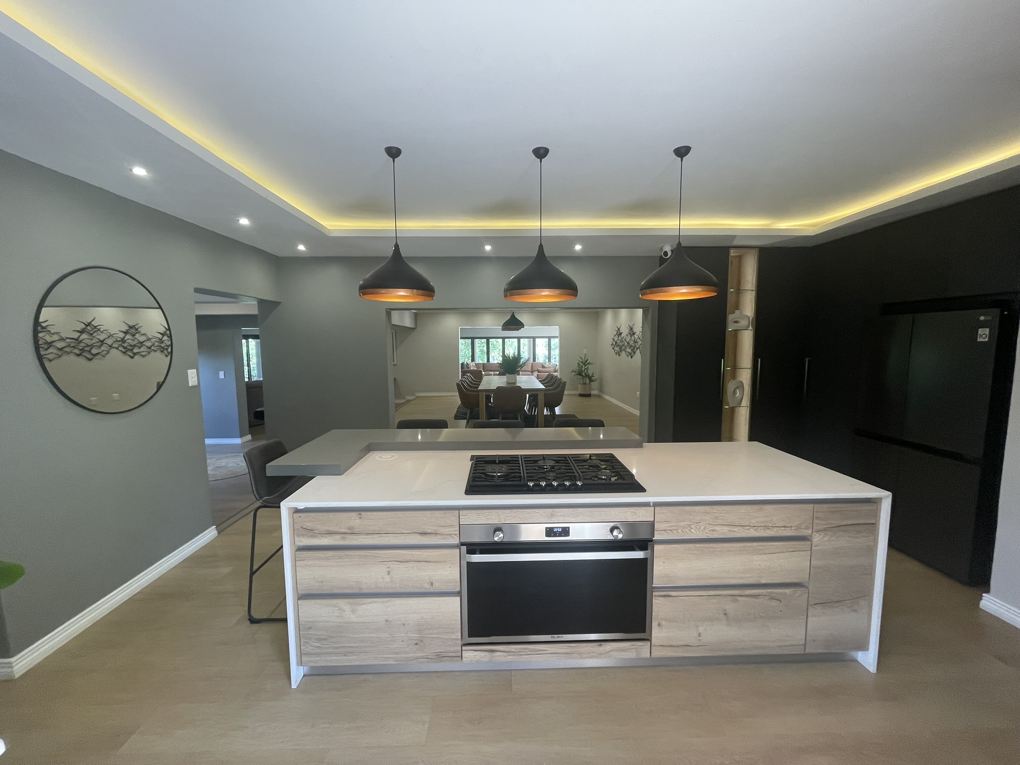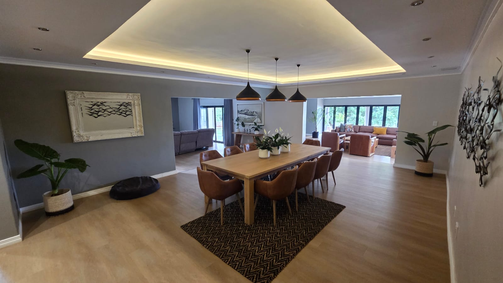 The 1,000 m2 main residence is thoughtfully designed for both family living and large-scale entertaining. It features 7 spacious bedrooms, 5 of which are en-suite, 2 fully equipped kitchens, 2 dining areas, and 3 generous living areas that flow seamlessly onto two patios overlooking the landscaped gardens and swimming pool.