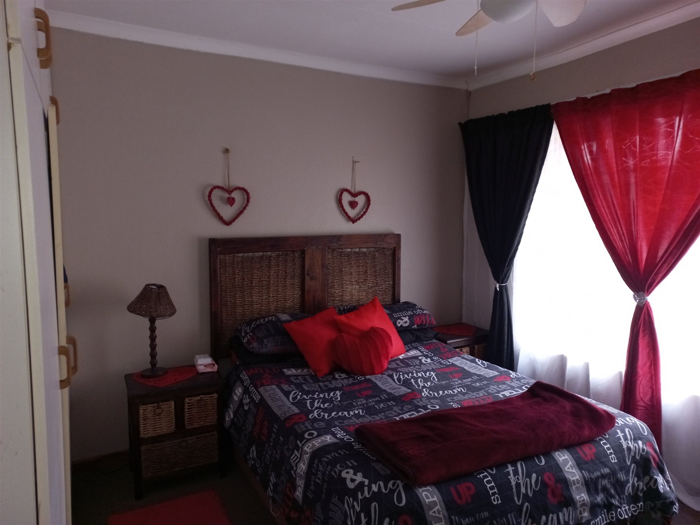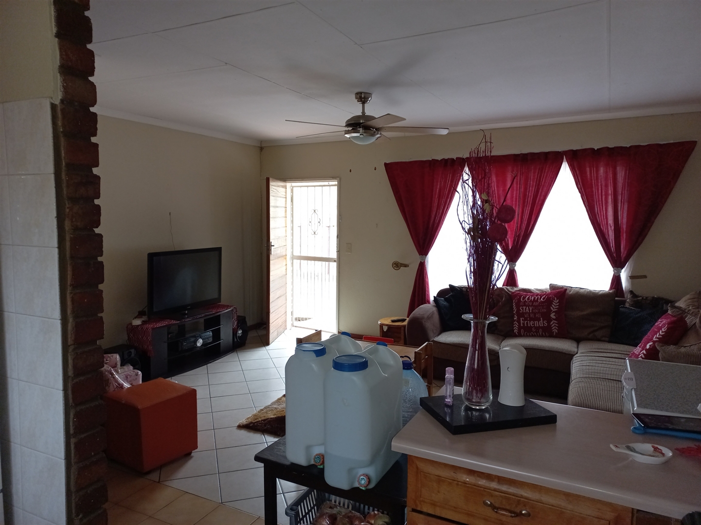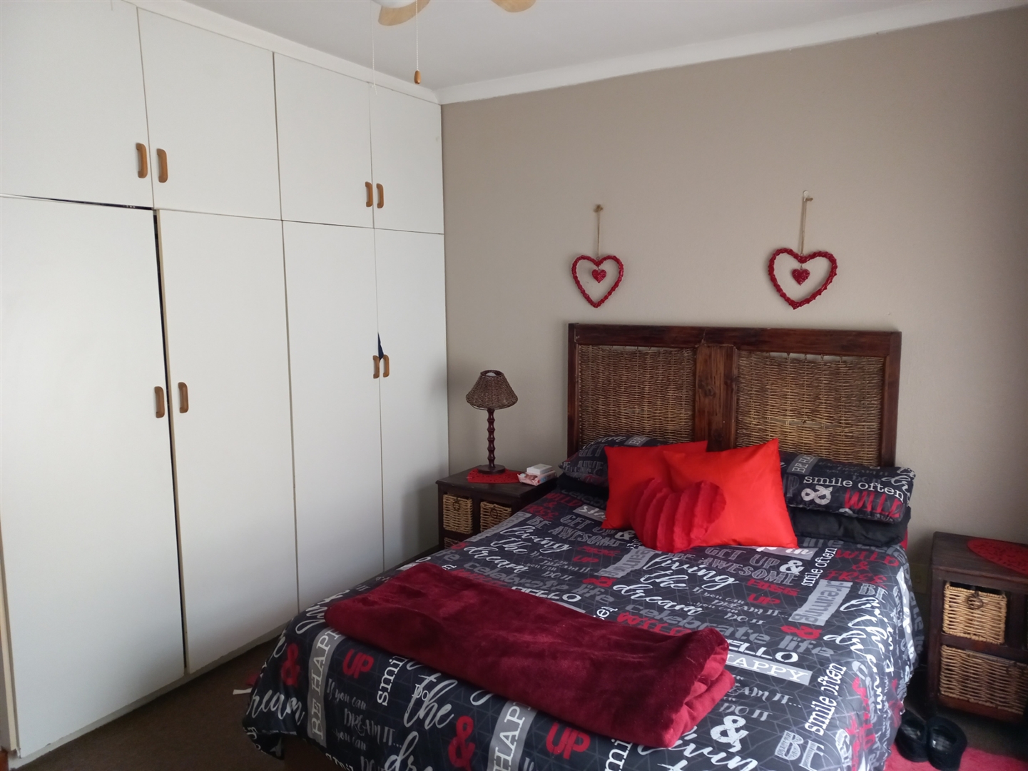Charming two-bedroom townhouse featuring a full bathroom and a separate toilet. The open-plan kitchen seamlessly connects to the dining area and lounge. Enjoy air conditioning and ceiling fans for comfort. Additional amenities include prepaid electricity, an alarm system, and a water tank in the garden. Each room offers ample cupboard space. Convenient access to the house is provided from both the garage and the carport.