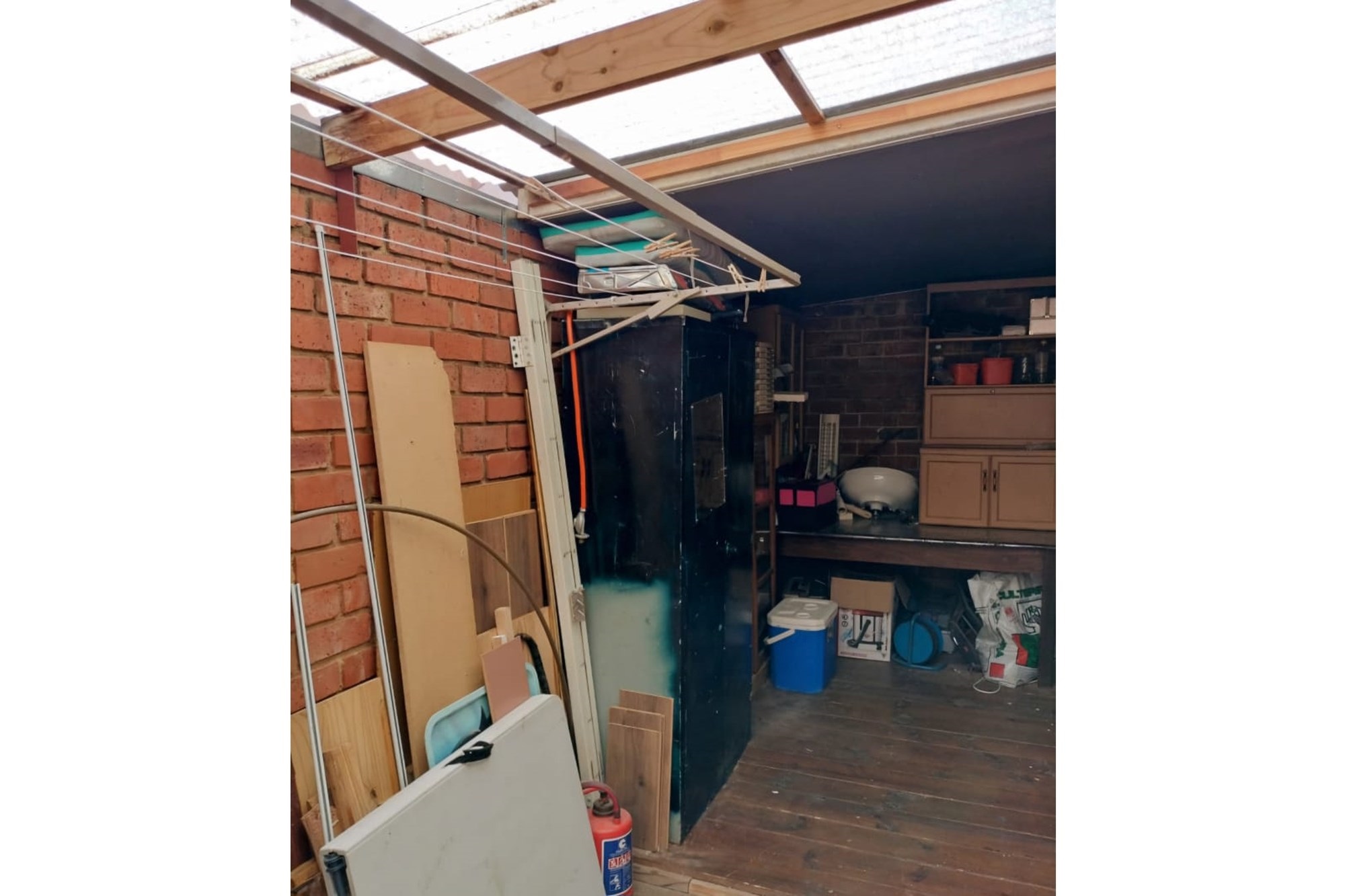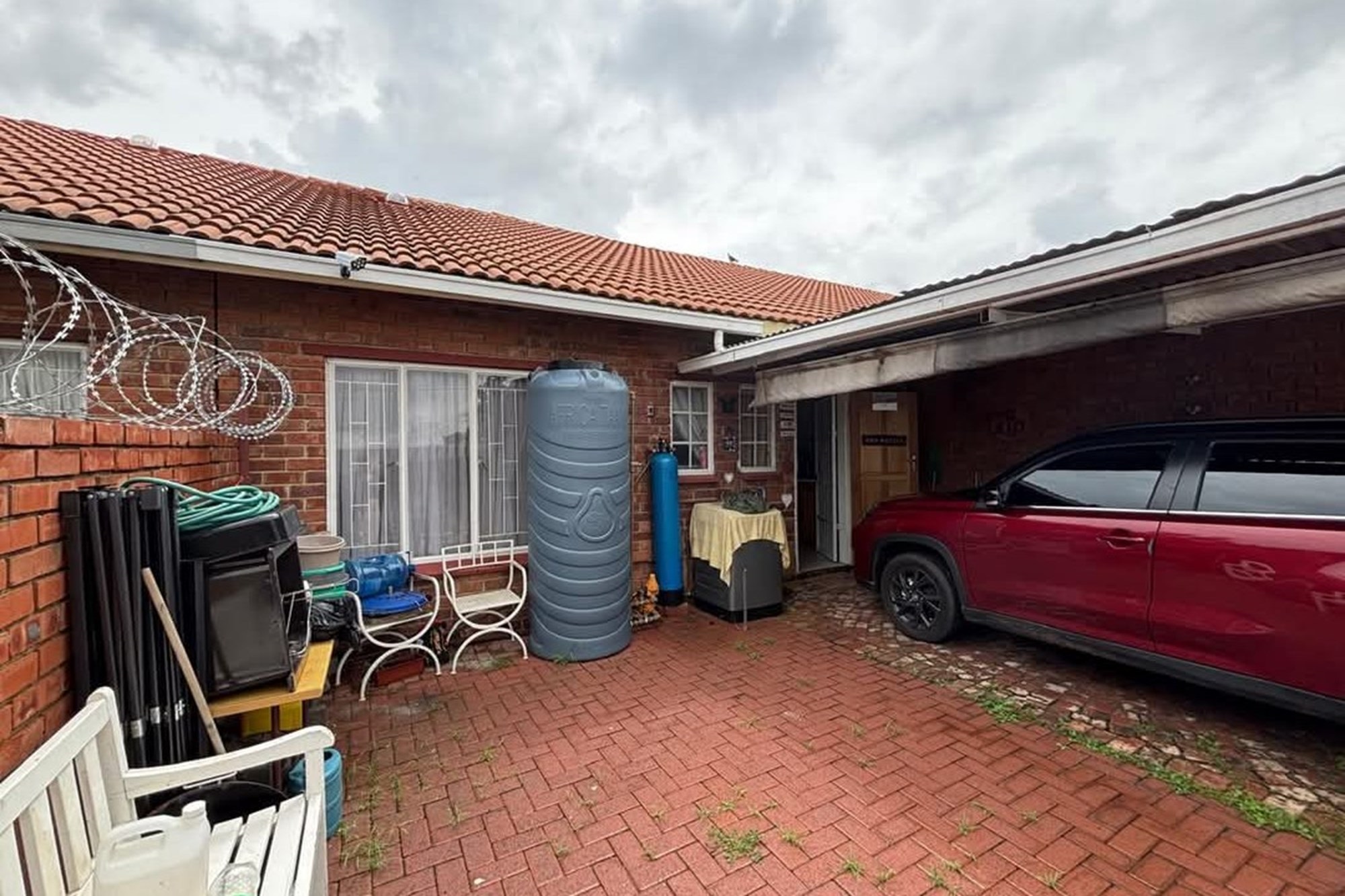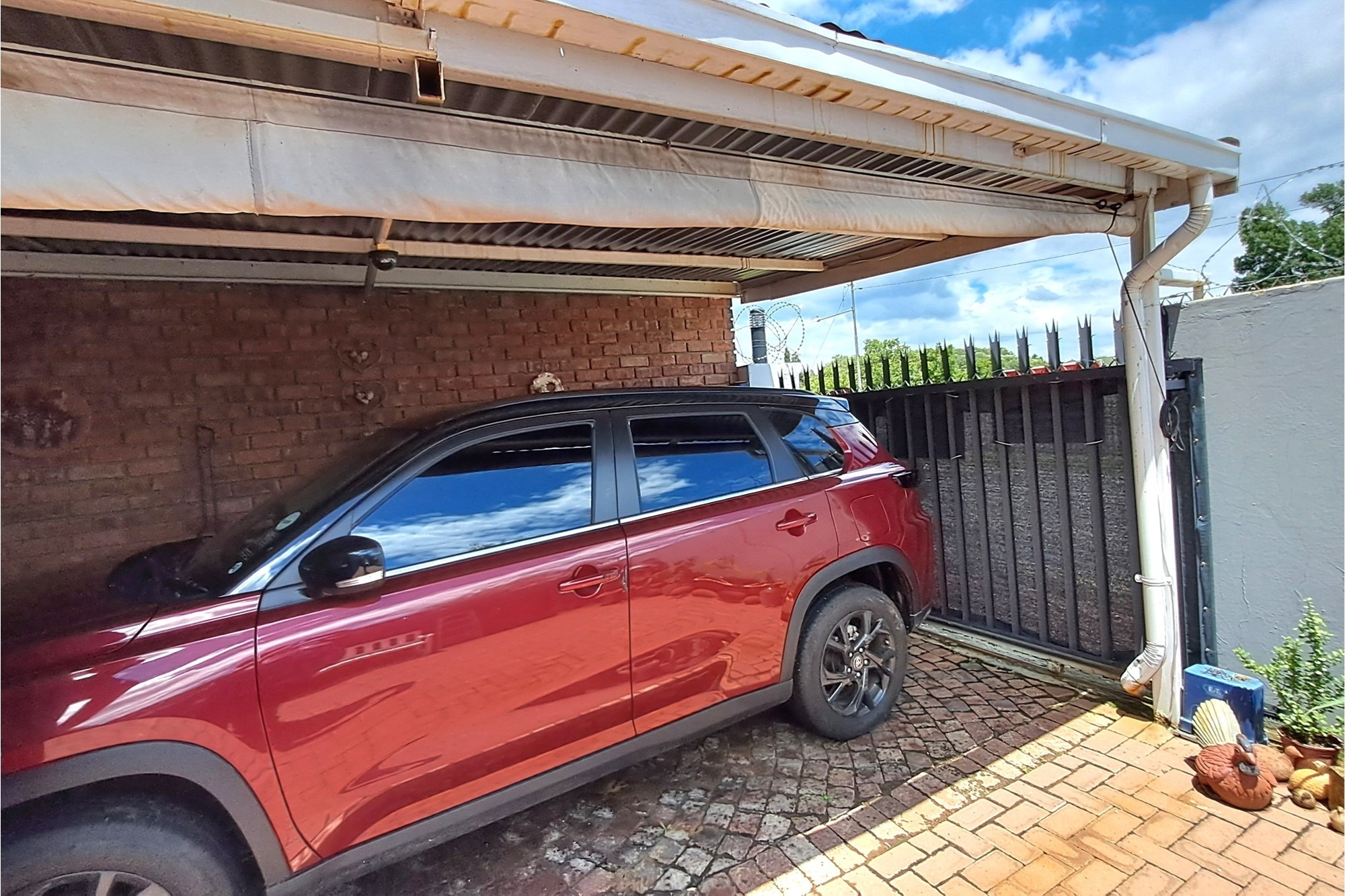 The home features a tiled roof, a mix of steel and wooden windows, and a paved carport that doubles as a cosy braai area.