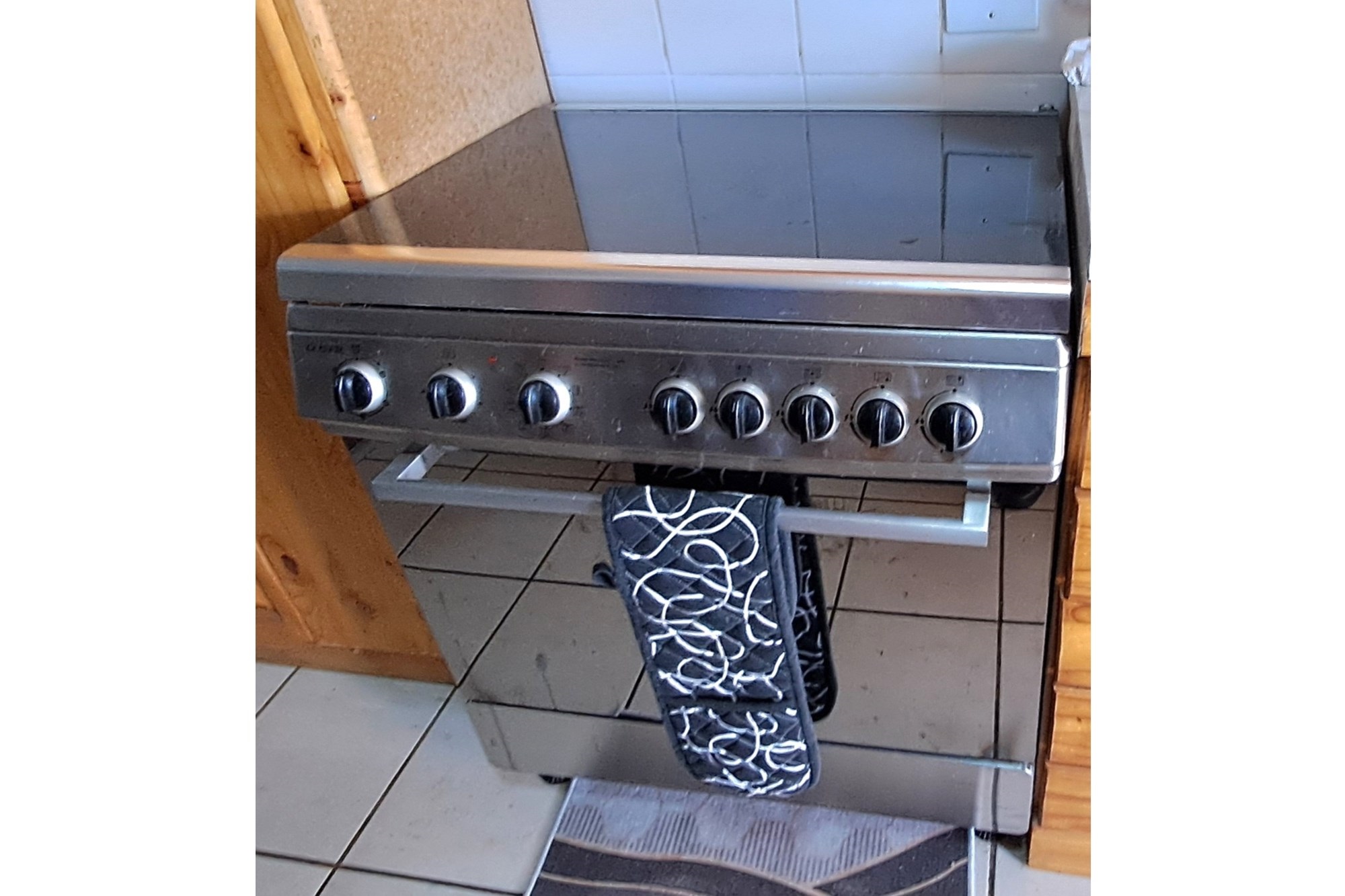 Enjoy anopen-plan dining room and loungewith laminated flooring, while thekitchenboasts tiled floors, a large gas stove, built-in cupboards, and laundry facilities.