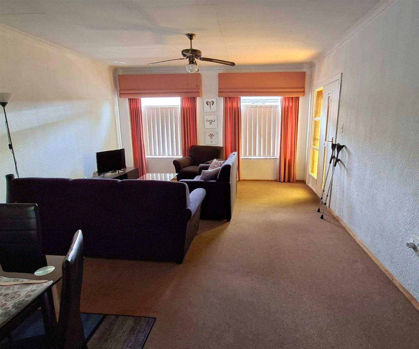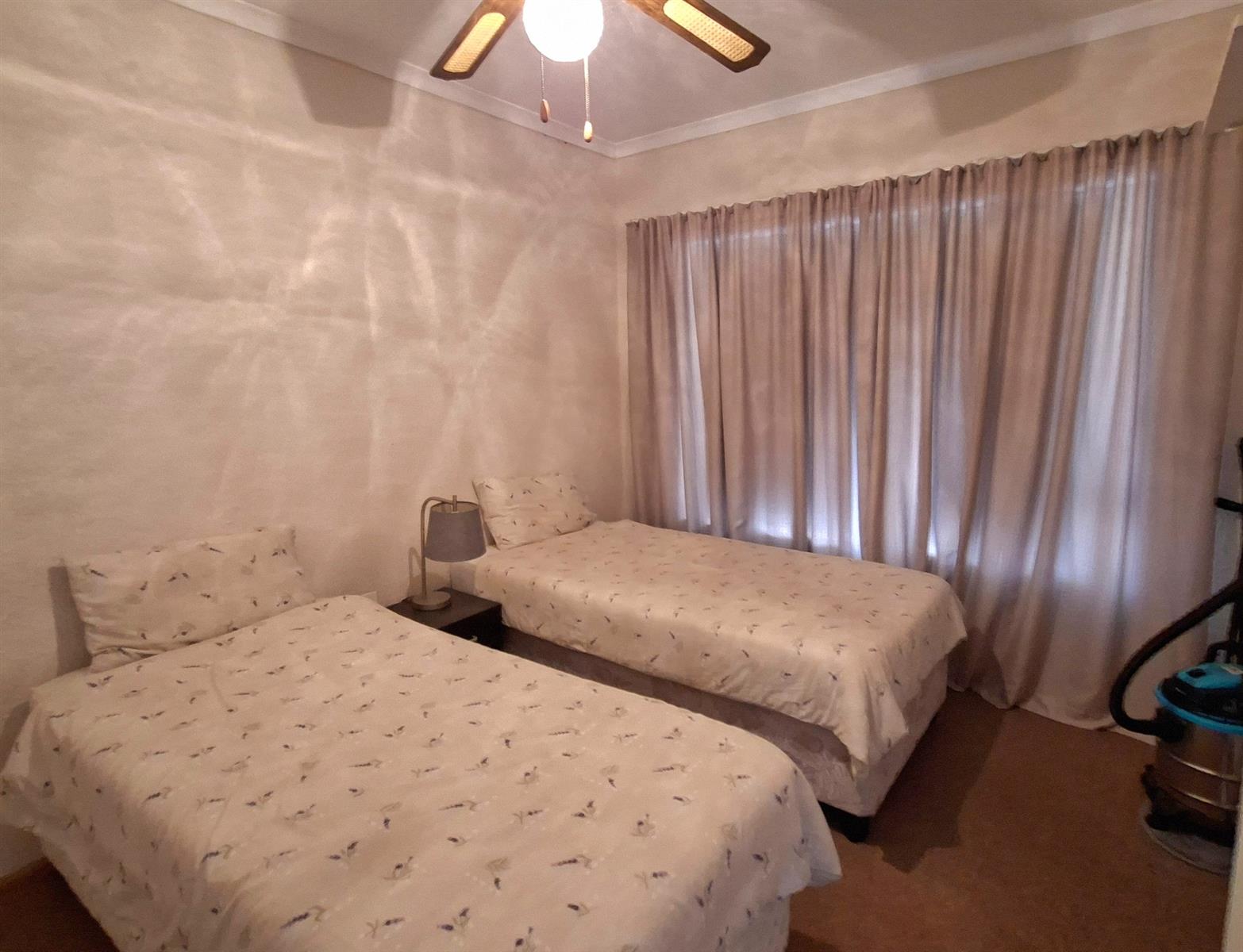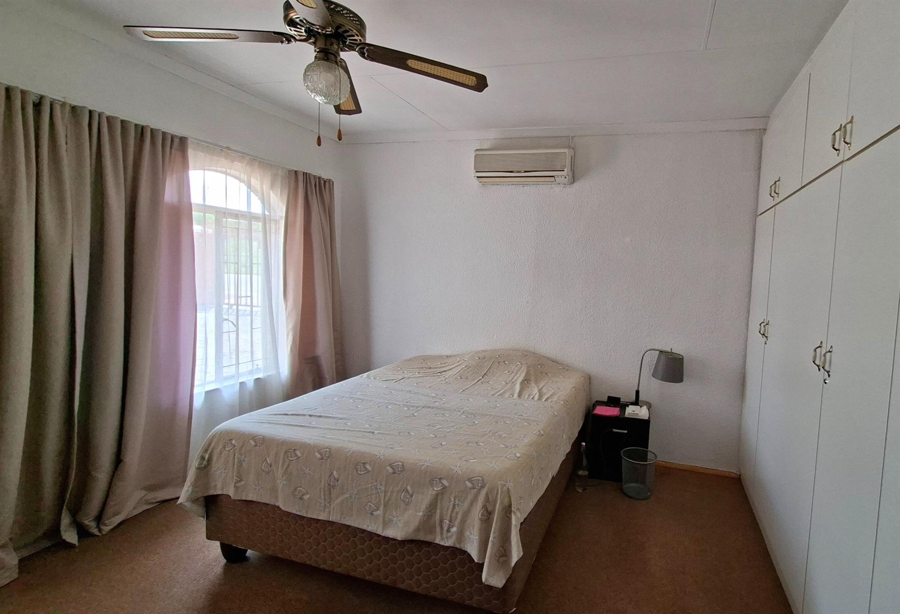 This beautifully presented home offers two spacious bedrooms with built-in cupboards and ceiling fans, while the main bedroom is fitted with air conditioning for year-round comfort.