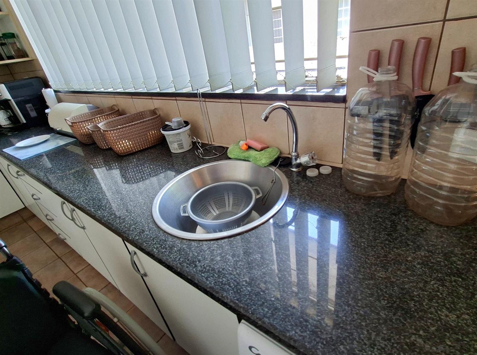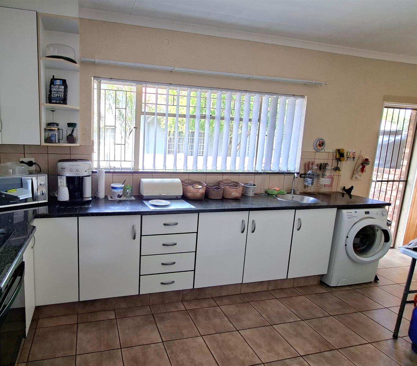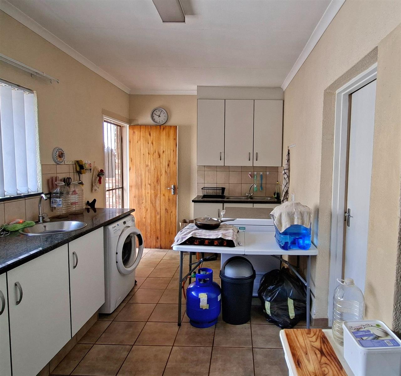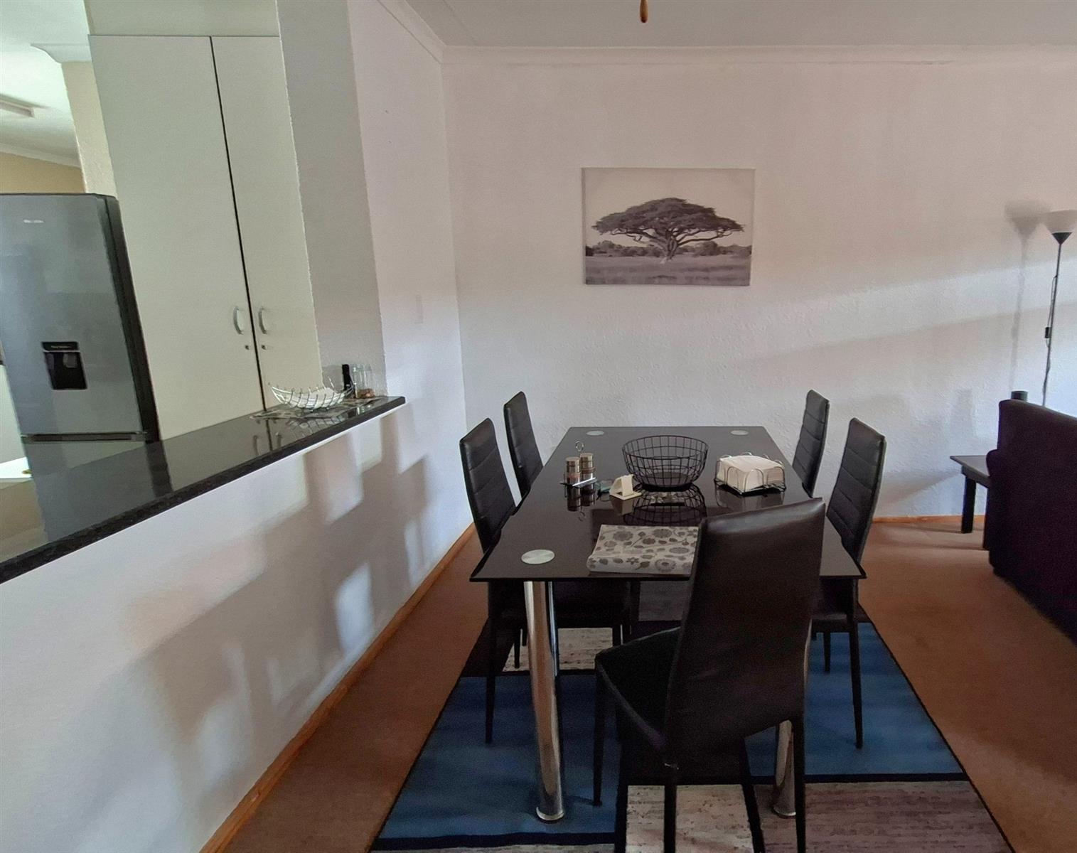 The generous kitchen is ideal for home cooks, offering ample melamine cupboards with attractive countertops and plenty of workspace. The open-plan dining area creates a welcoming space for everyday living and entertaining.