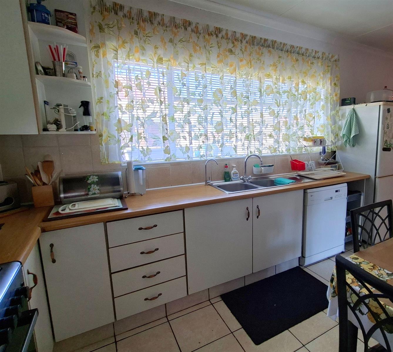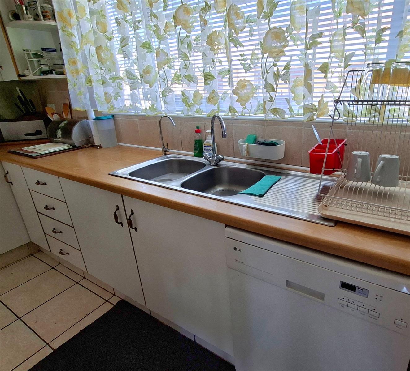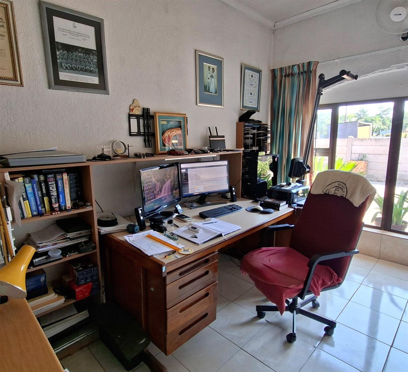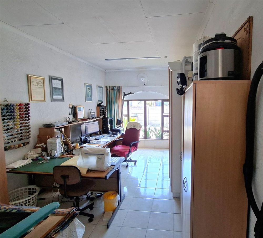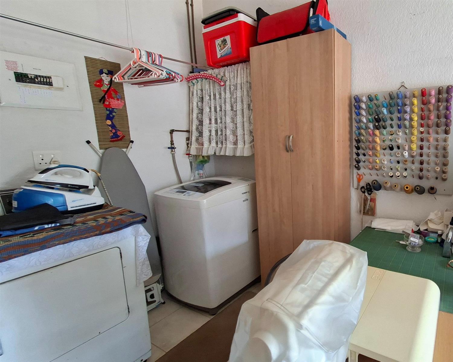 A spacious office or study makes working from home easy and comfortable. There is also a separate laundry and ironing area with built-in cupboards, as well as an outdoor washing line.