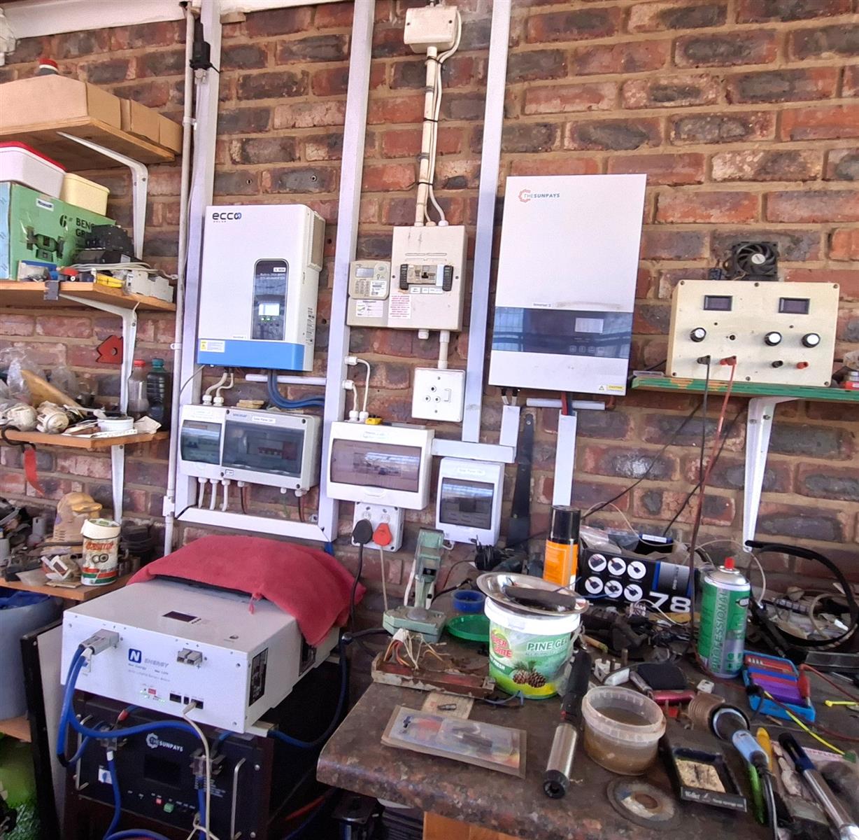 Solar system: 2 × 5kW inverters, 3 × 5kW batteries, and 12 solar panels