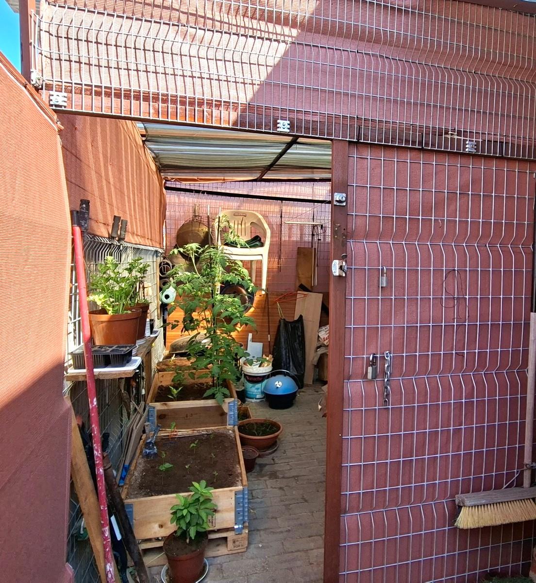 Small, neat garden with fencing and electric gate
