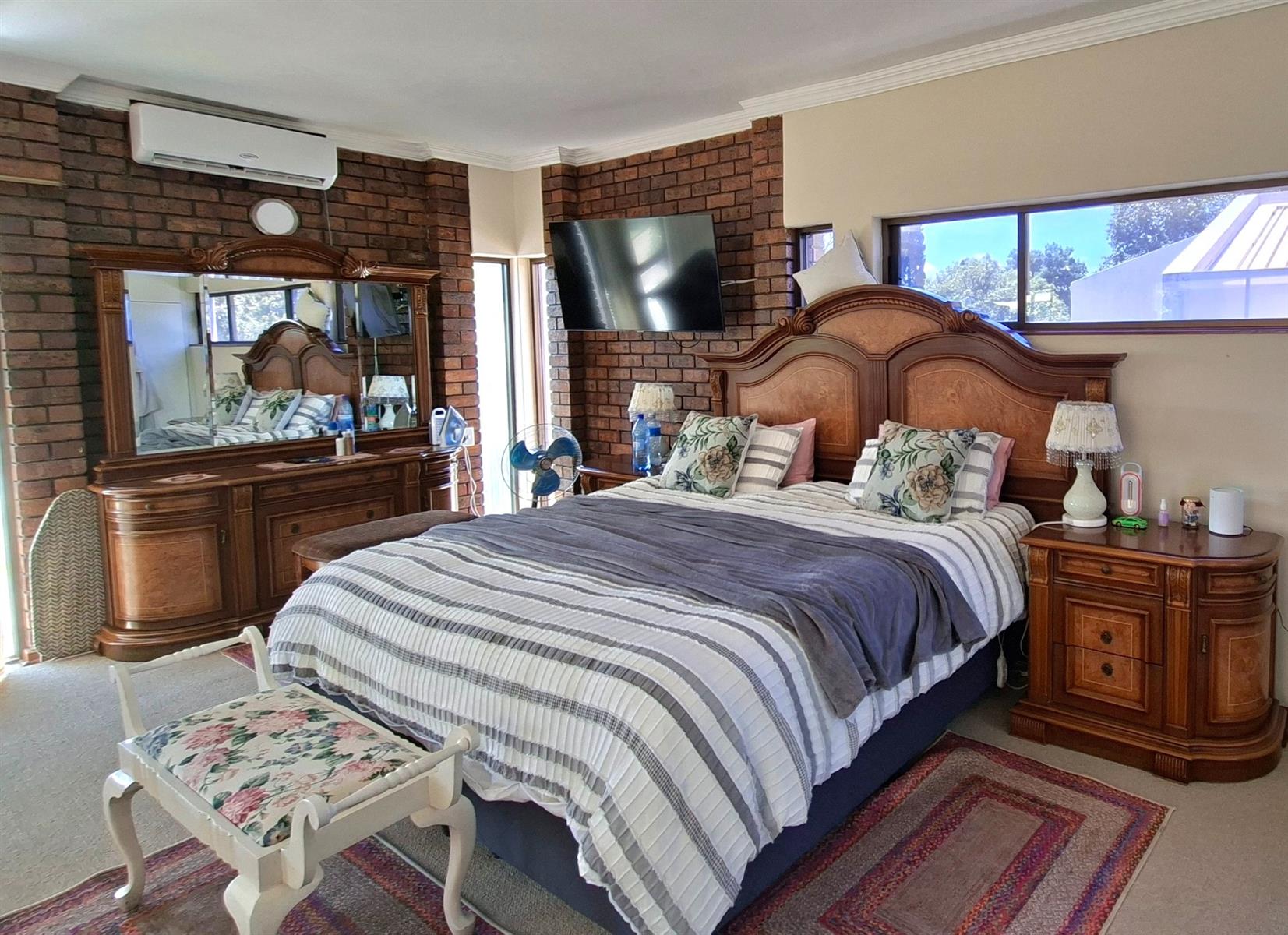 Air conditioning and television in the main bedroom