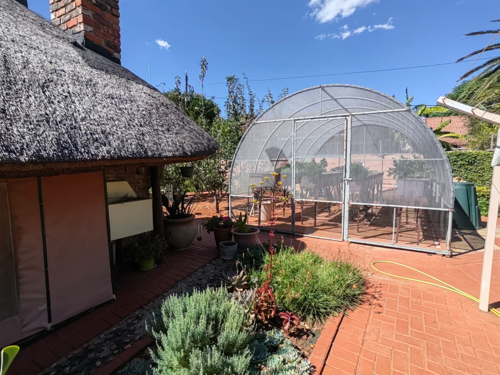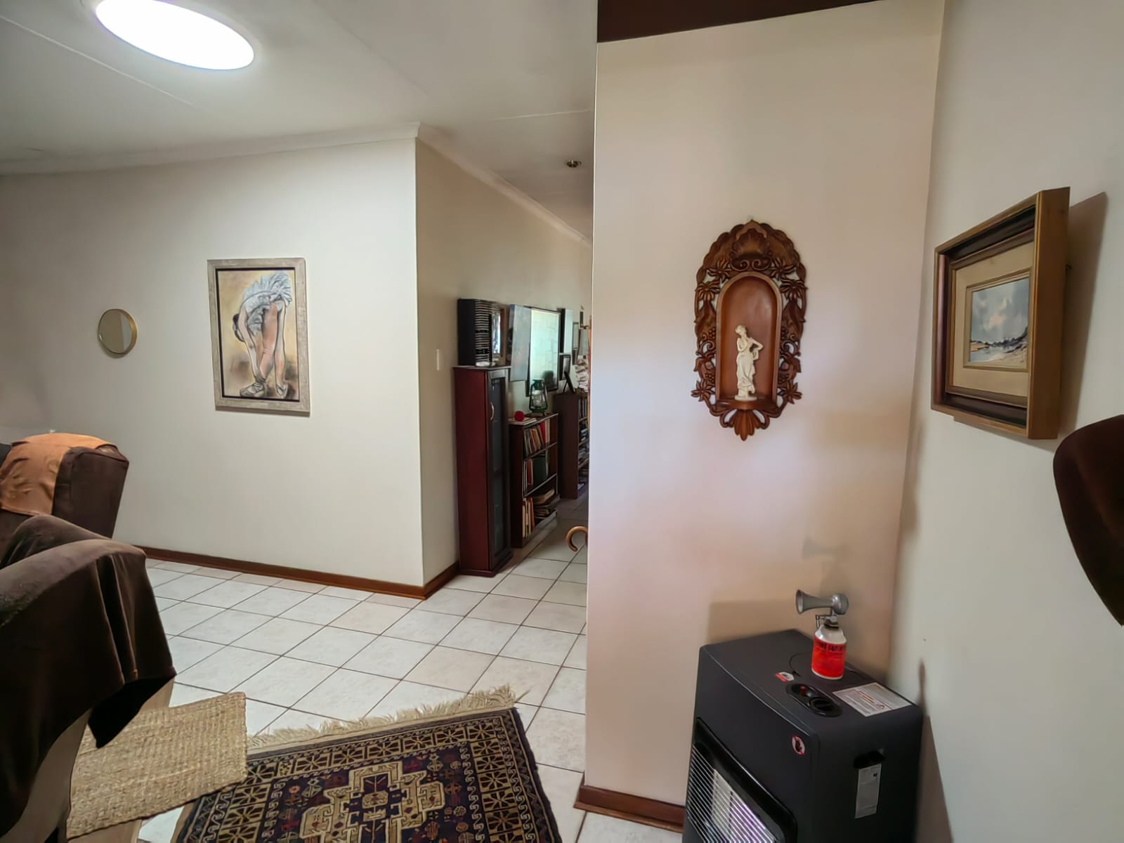 The front of the house has a small patio that overlooks the beautiful front garden, while the larger back garden has fruit trees and an enclosed greenhouse for growing vegetables. The unit has tiled floors, except for two of the bedrooms and the lounge area, which has carpets.