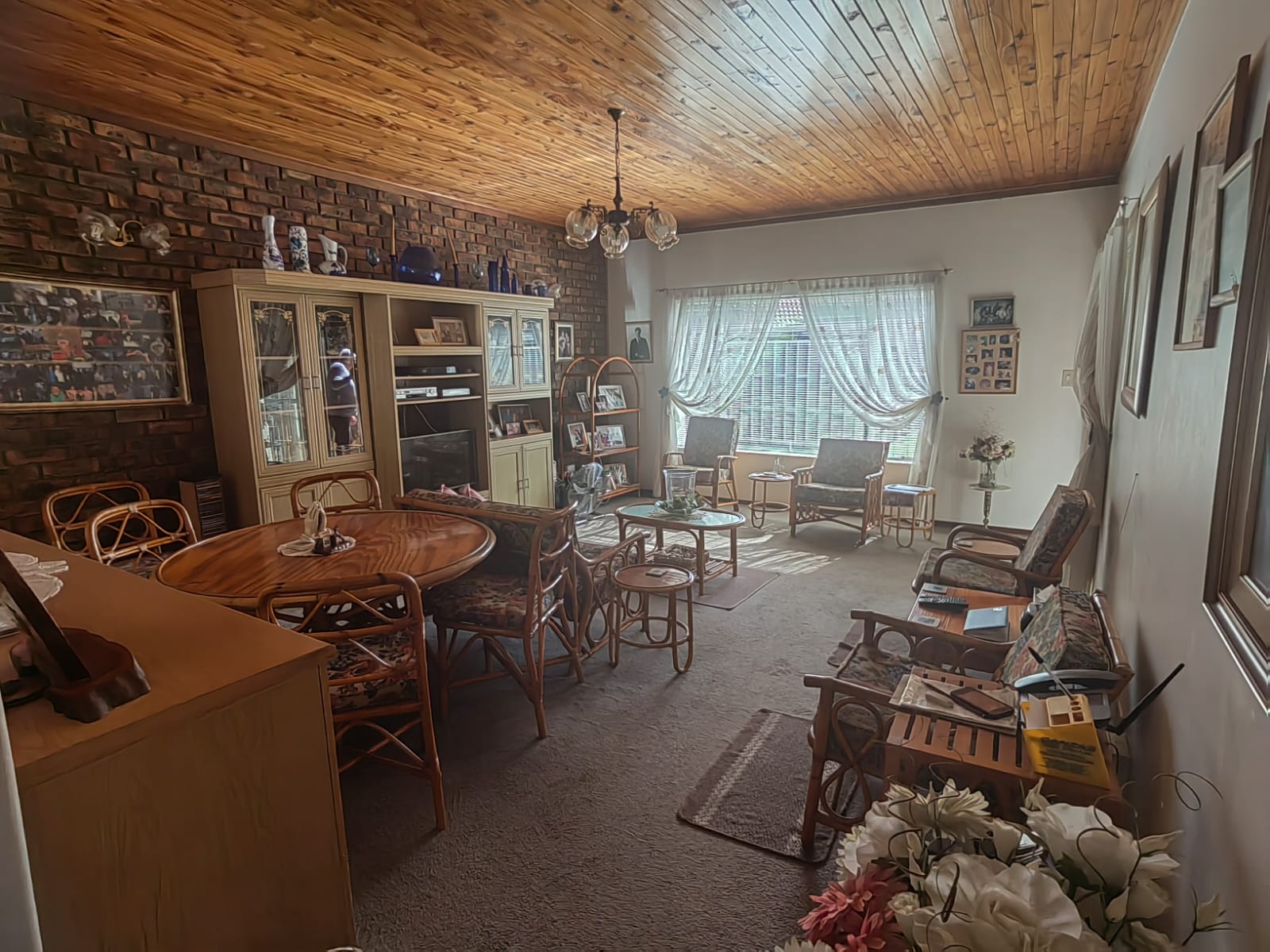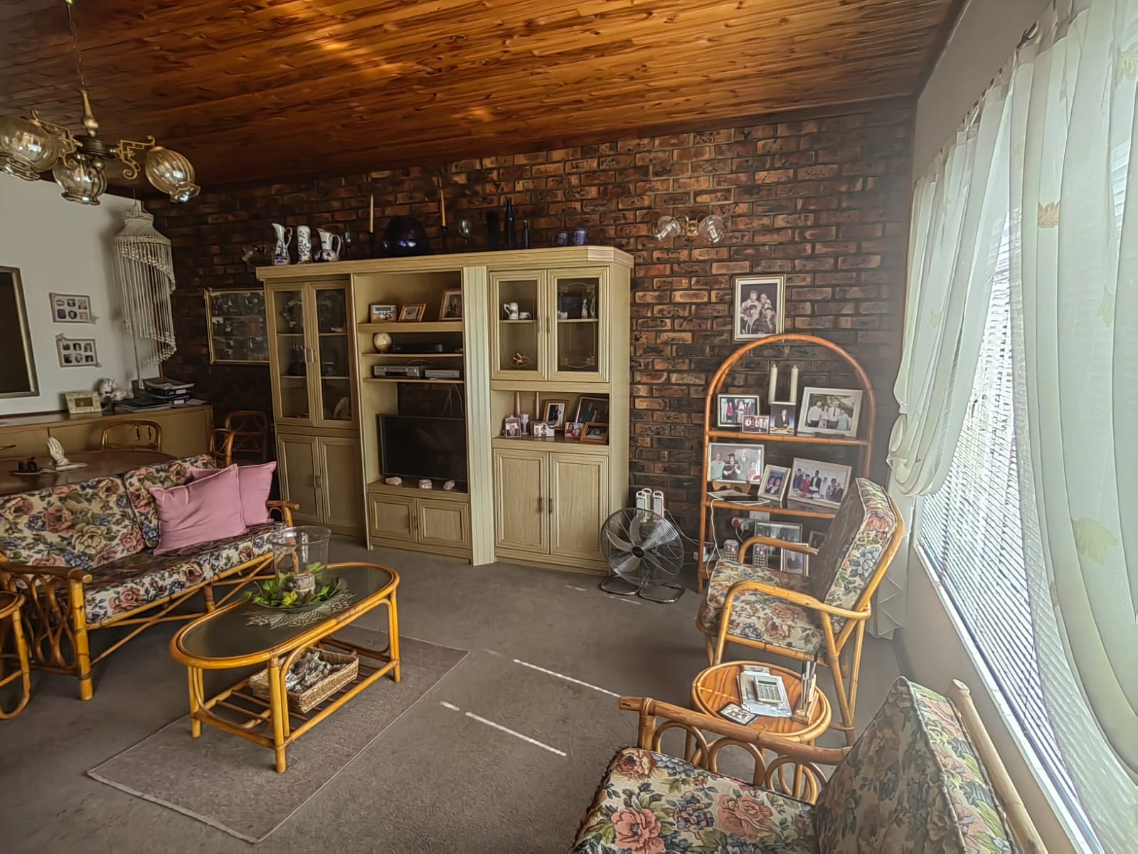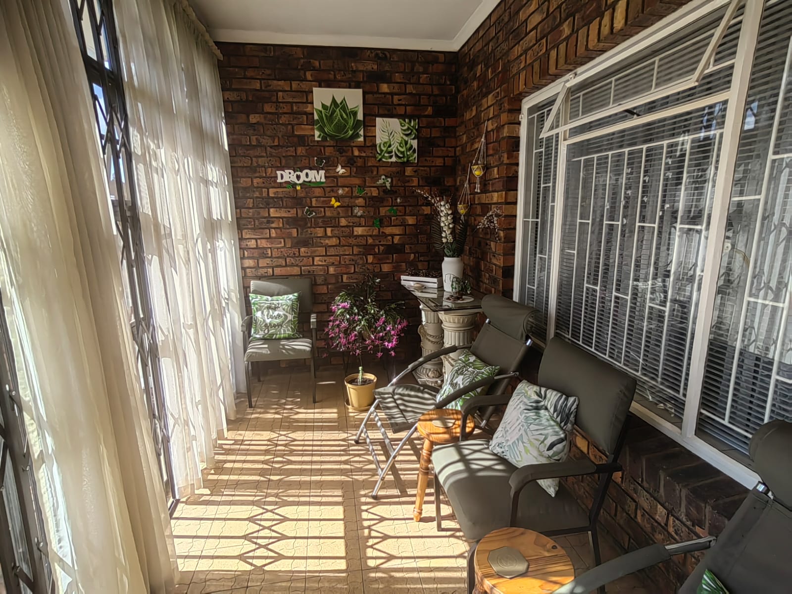 This charming townhouse is one of eight in a well-maintained complex. It features two bedrooms, both equipped with built-in cupboards. The full bathroom has been recently renovated and includes a relaxing corner bath. The open-plan lounge and dining area create a welcoming atmosphere, leading to a delightful sunroom with aluminum windows and a sliding door, secured with trellises for added peace of mind.