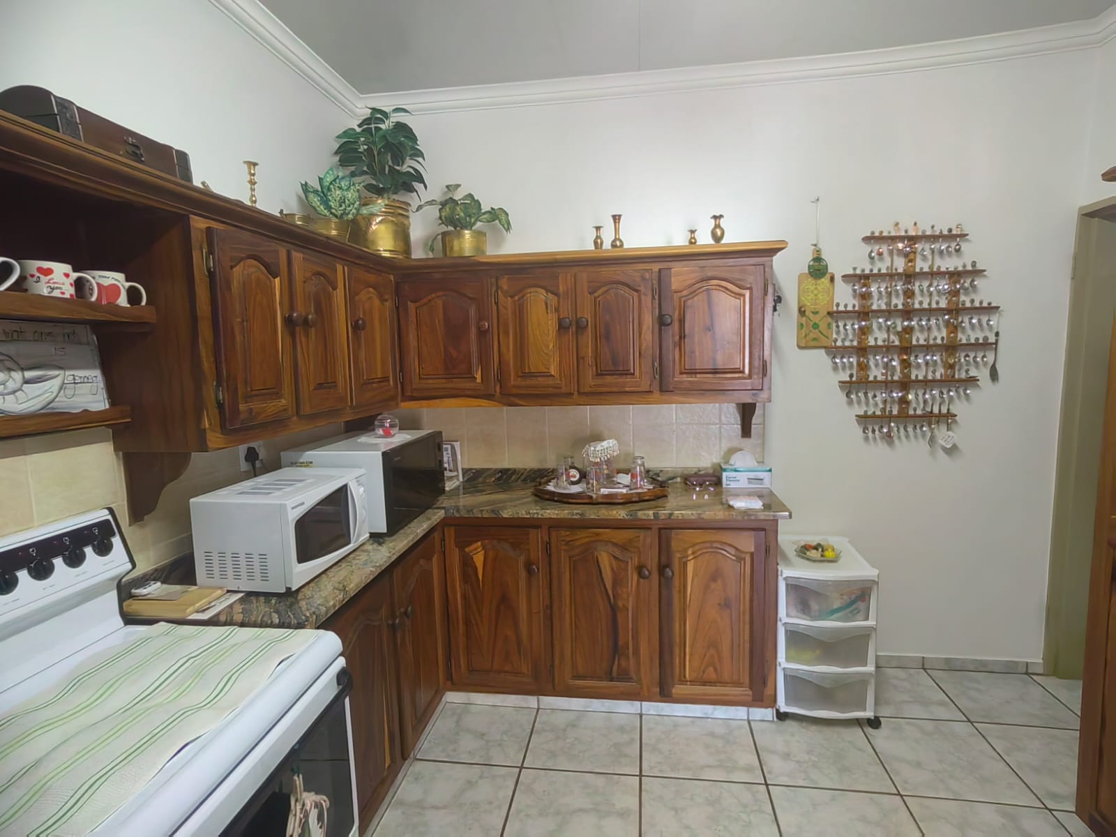 Step outside to enjoy a lovely stoep, perfect for watching the sunset or unwinding with a braai. The kitchen boasts wooden cabinets and elegant granite countertops. Additionally, there is a Wendy house currently used as a tool shed, along with a single garage that includes a washing machine connection. An outside toilet adds to the convenience.