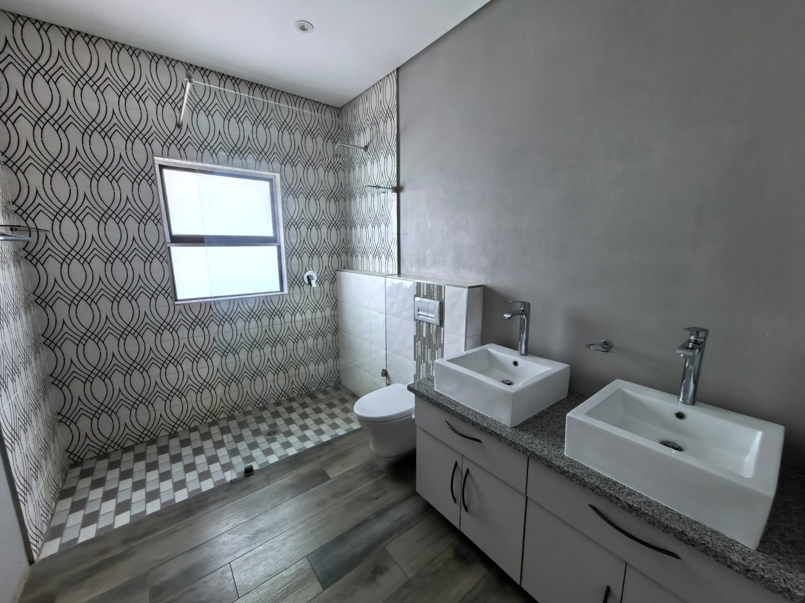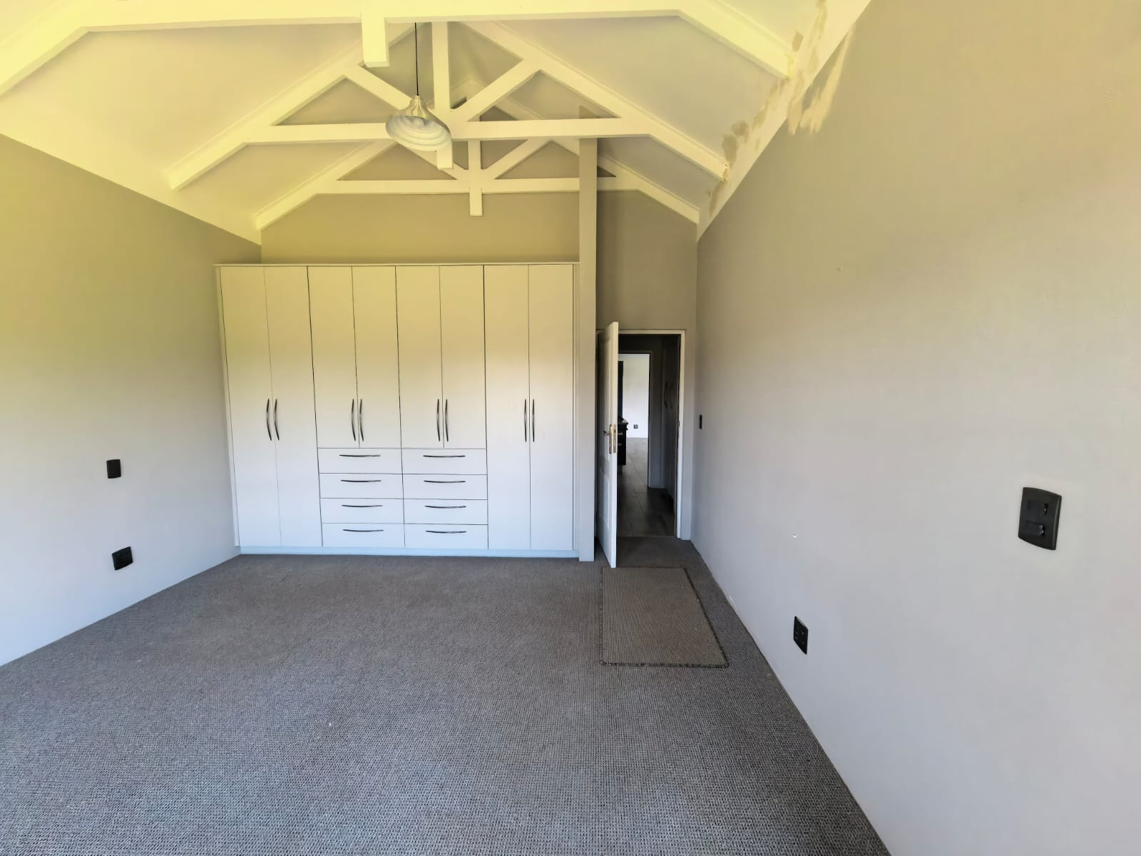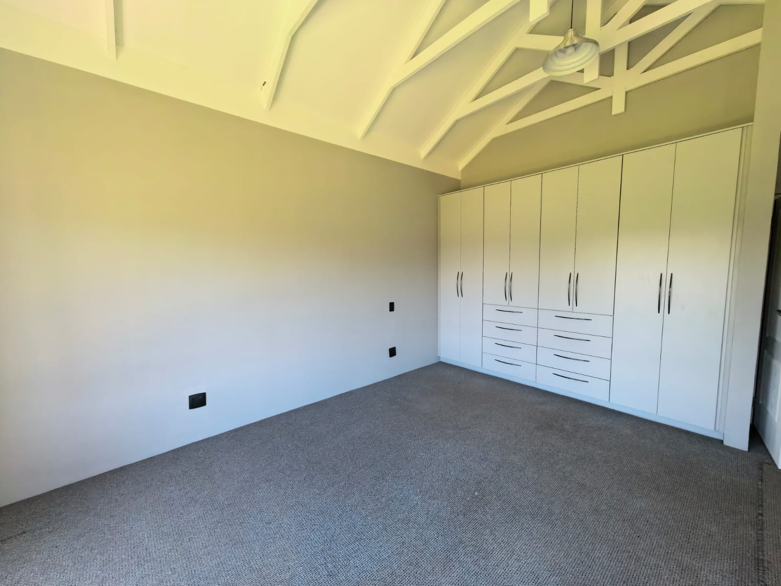 - An open-plan lounge, dining area, and kitchen, complete with a separate scullery. The kitchen features elegant petrol blue cabinetry and has a separate scullery.