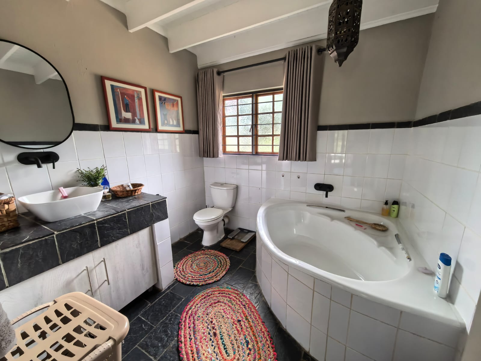 Additional features include a borehole and a solar system with eighteen panels, two invertors and three 5KW batteries. For added security there is armed response, outside beams, an electric fence and the property is well lit.